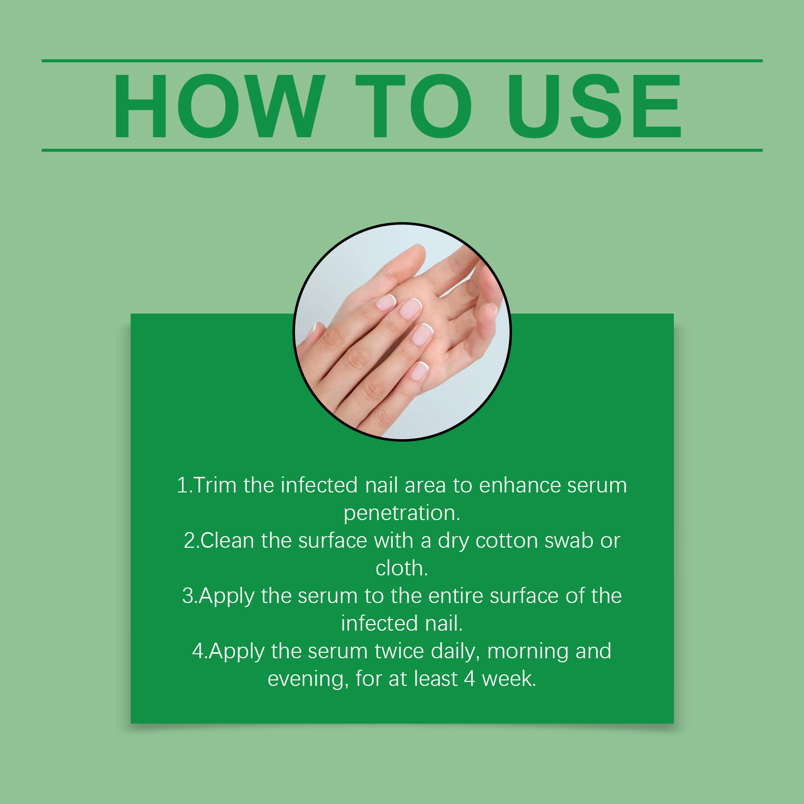 我们的护甲柔润护理液,由尿素、泛醇精心调配而成。专为有效杀菌、抑制真菌生长,并快速缓解甲癣,它使用温和成分不含有害化学物质,安全、温和且无刺激性设计。使用方法极为便捷:1.修剪受感染的指甲区域,以促进药液的渗透。2.用干燥的棉签或布擦拭表面。3.将该精华液涂抹于受感染指甲的整个表面。4.每天早晚各使用一次该精华液,持续至少 4 周。并且它可以深入指甲根部,促进健康指甲生长并修复受损组织。无刺激性气味,使用更舒适。