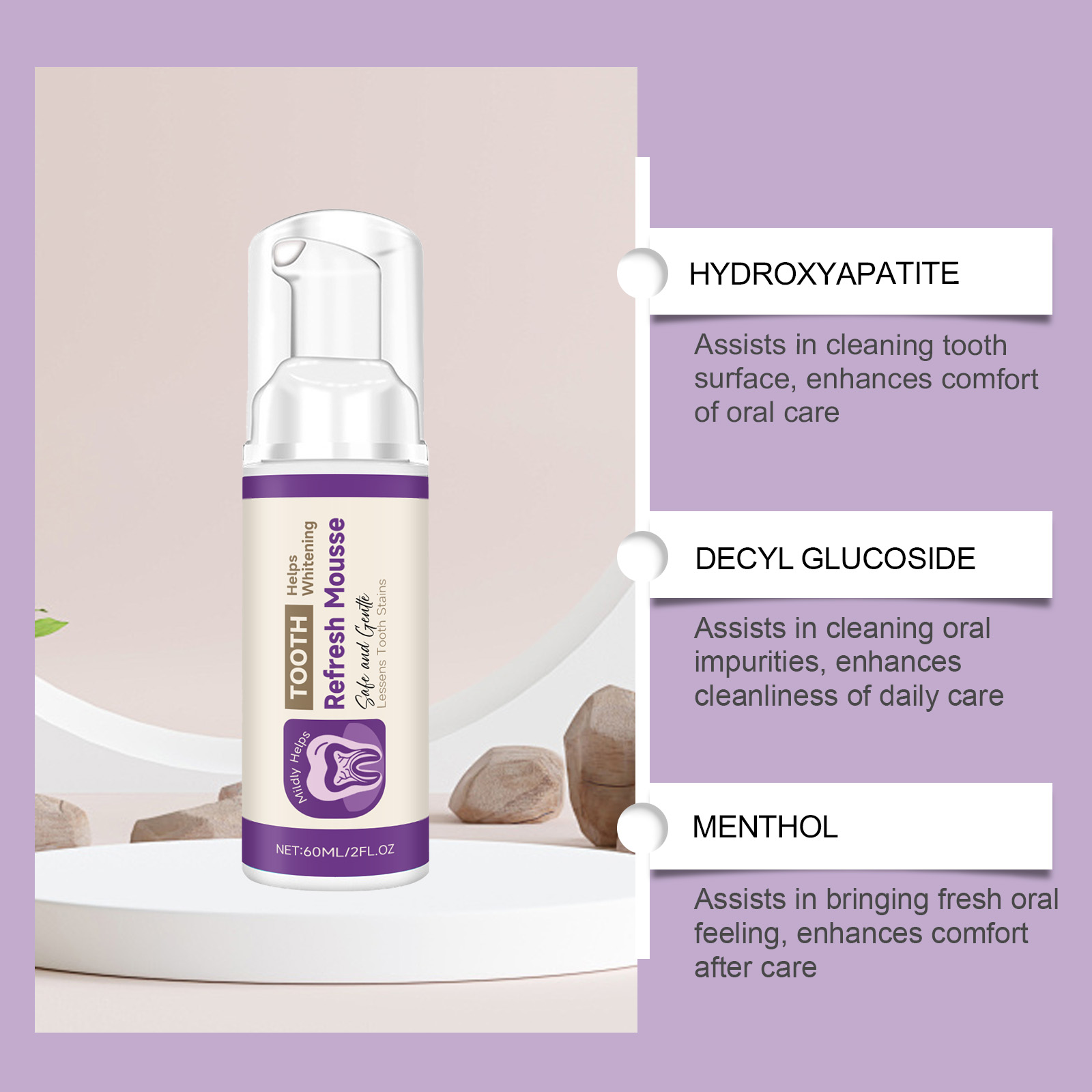 我们的牙齿清新慕斯,由薄荷醇、磷酸钙精心调配而成,专为清洁牙齿表面,提升口腔护理的舒适度设计。使用方法极为便捷:1.用清水漱口,以湿润牙齿。2.将适量本产品挤在牙刷上,轻轻刷洗牙齿和舌头2-3分钟。3.用清水漱口直至口腔干净。并且可以护理后带来清新口腔感受,维持日常舒适呼吸状态。