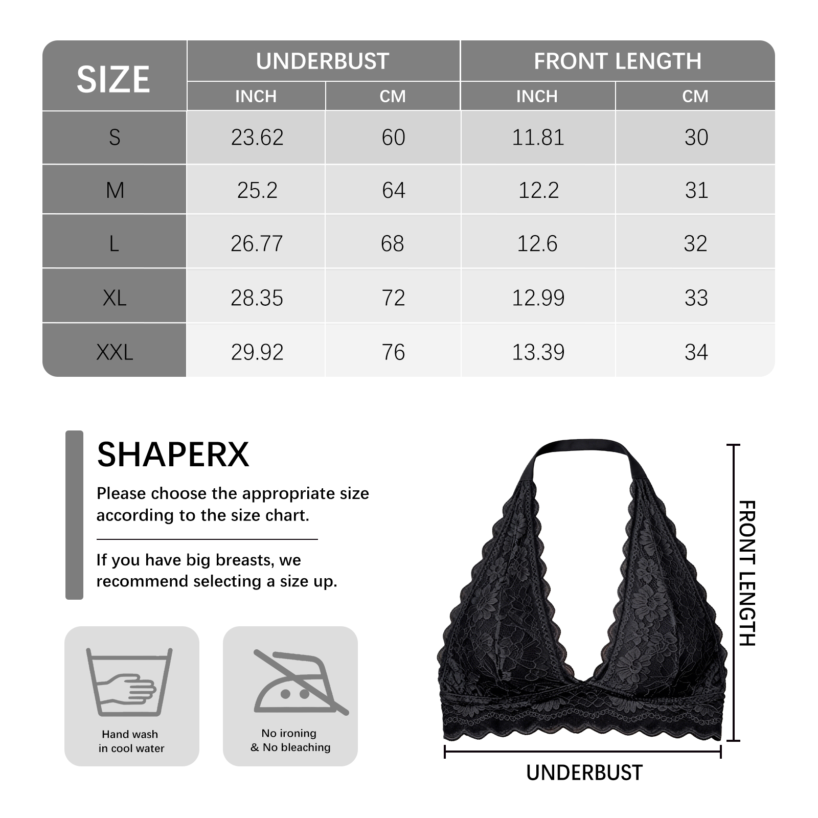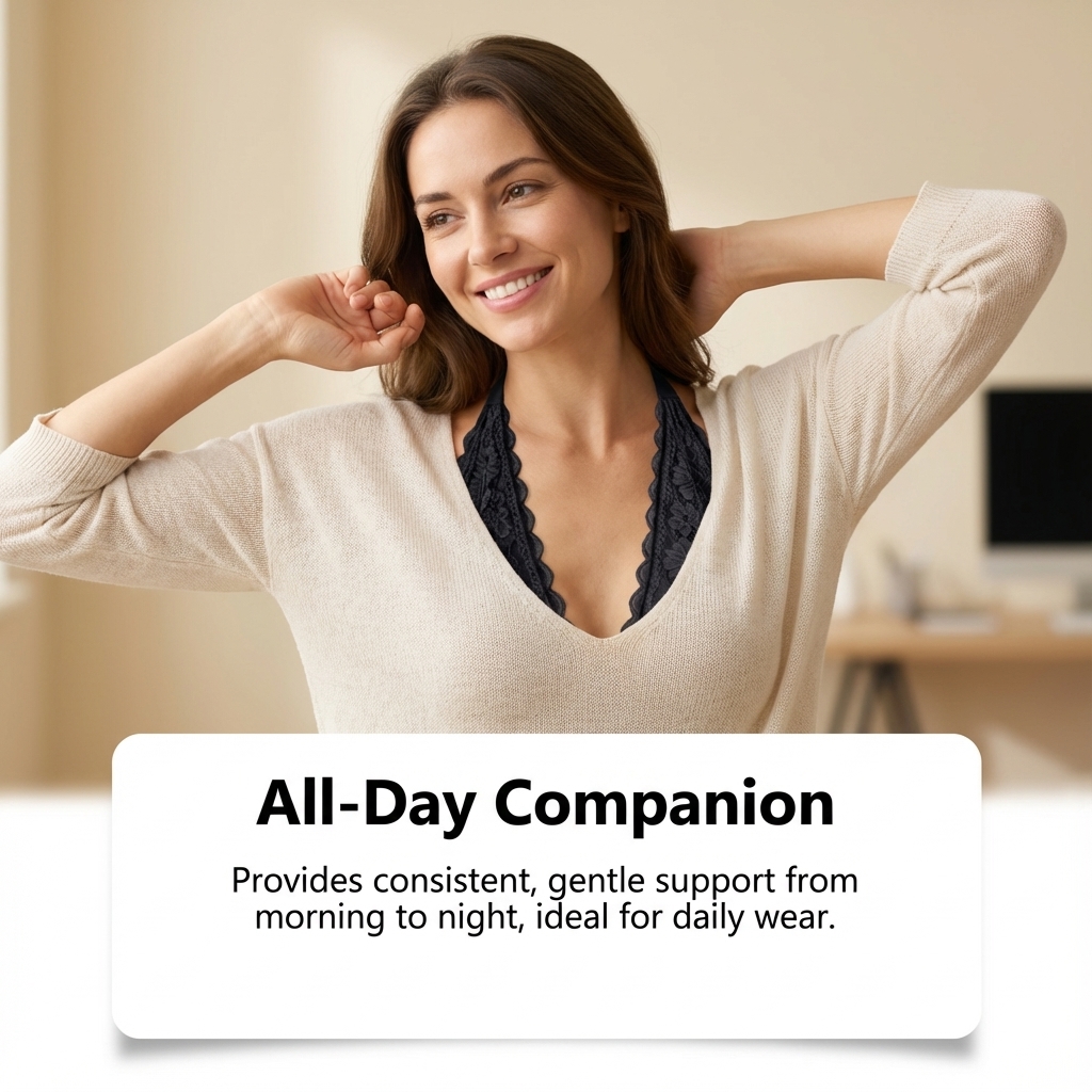 我们的挂脖蕾丝文胸,由90%聚酰胺、10%氨纶精心制作而成。专为告别传统钢圈的束缚与压迫,享受仿佛未穿般的轻松自在设计。使用方法极为便捷:日常贴身穿着,尤其推荐作为通勤、居家或休闲时的首选内衣。 建议手洗,并使用中性洗涤剂在冷水中轻柔洗涤,以更好保持面料弹性。 洗后请平铺晾干,避免直接曝晒或使用烘干机,以防材质老化。并且可以为内衣提供恰到好处的回弹与贴身包裹性。