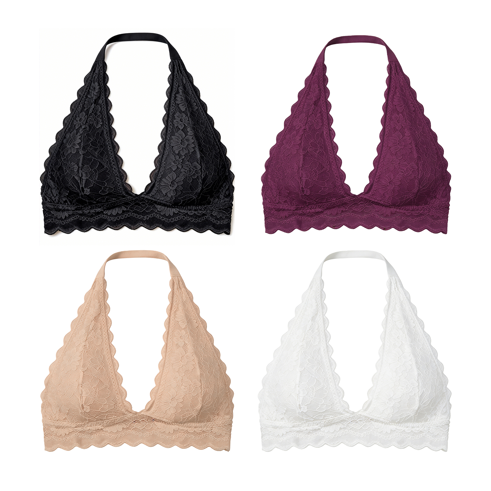Zeriluna The Lace Halter Bra Gathers Together To Make It Look Larger. It Is A Comfortable Lace Halter Vest-Style Bra Without A Steel Ring