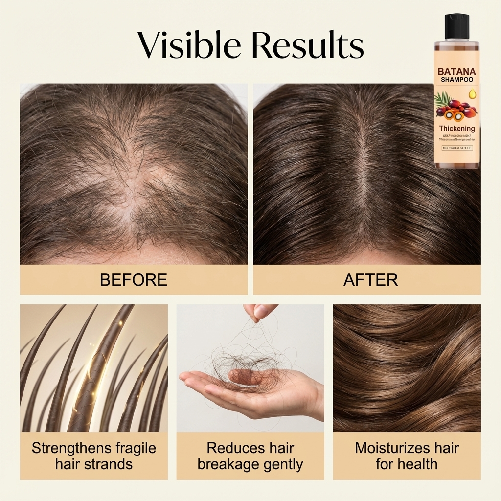 我们的巴塔纳油洗发水,由精氨酸、棕榈油精心调配而成。专为提升头发外观设计。使用方法极为便捷:用清水彻底湿润头皮和头发。取适量本品于学心,揉搓起泡后涂抹于头皮和头发上,并按摩3-5分钟。用清水冲洗。并且能滋润头发。