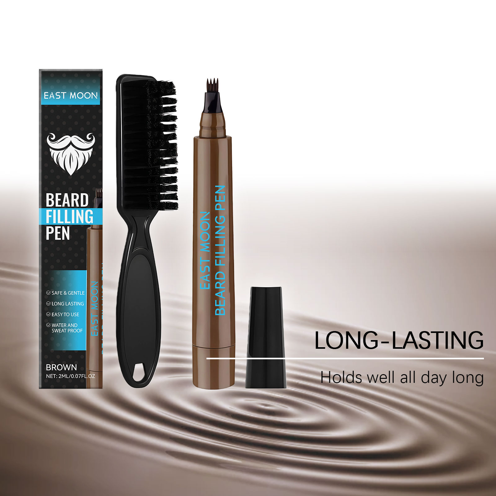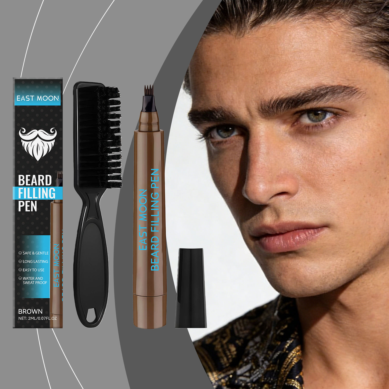 East Moon Beard And Eyebrow Pencil Set (Brown) For Daily Moisturizing And Smoothing Care Of Frizzy Beard And Eyebrows