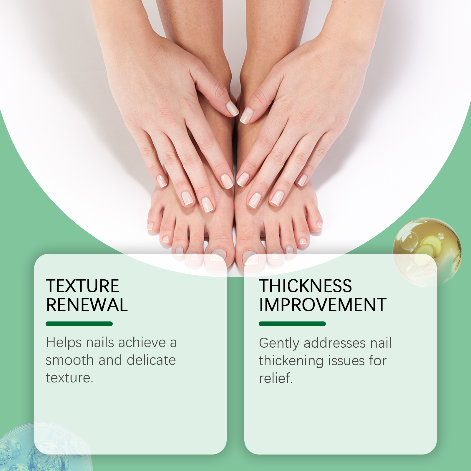 我们的指甲护理精华,由尿素、泛醇精心调配而成。专为帮助指甲达到光滑细腻的质感,温和解决指甲增厚问题,提供缓解设计。使用方法极为便捷:1.修剪患甲区域,以促进精华液吸收。2.用干棉签或布清洁甲面。3.将精华液涂抹于整个患甲表面。4.每日早晚各涂抹一次,至少持续4周。并且它可以有助于改善指甲色素沉着问题。