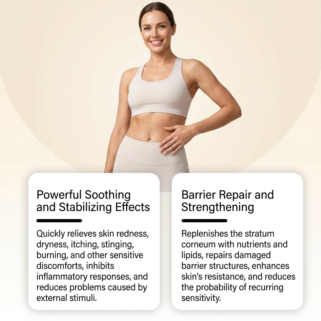 我们的身体护理贴片,由肉桂树皮提取物、芒果籽精心调配而成。专为缓解炎症性红肿与不适感设计。使用方法极为便捷:1.清洁并擦干腹部皮肤。2.将贴片贴于腹部并轻轻按压至少3秒。3.至少8小时后取下贴片。(如果您整晚使用了贴片,请在第二天早上取下。)并且可以缓解干燥发红、刺痛及灼烧感,并促进屏障修复。