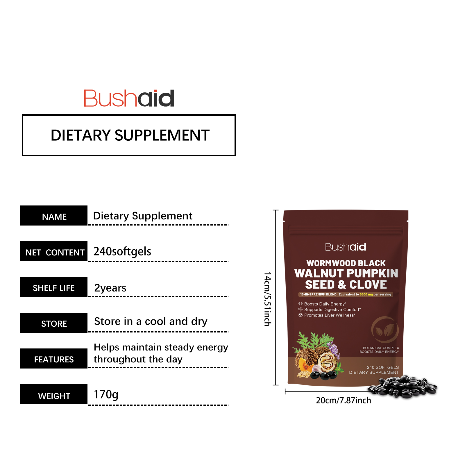 BushAid Absinthe Black Walnut Clove Softgels Helps Digestion