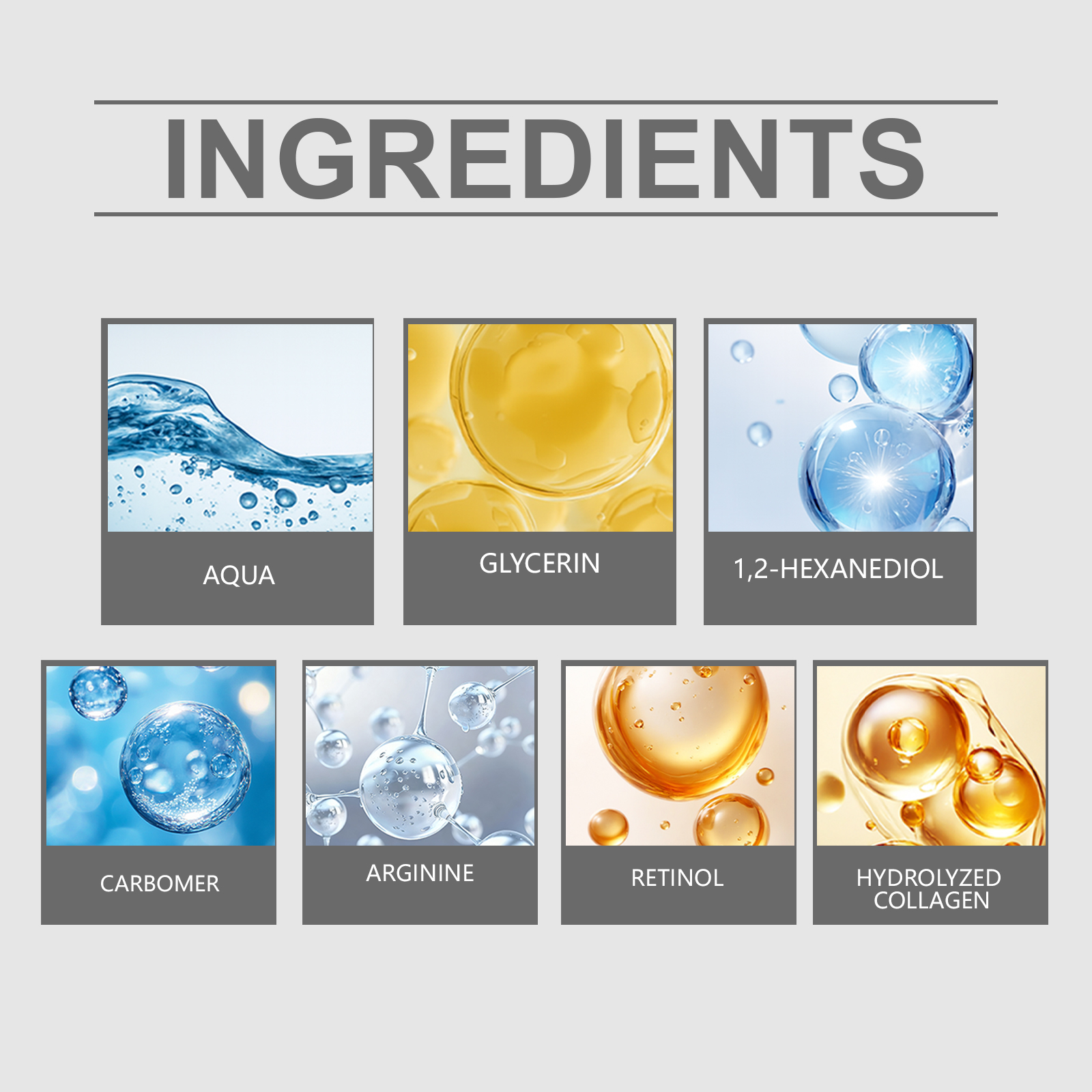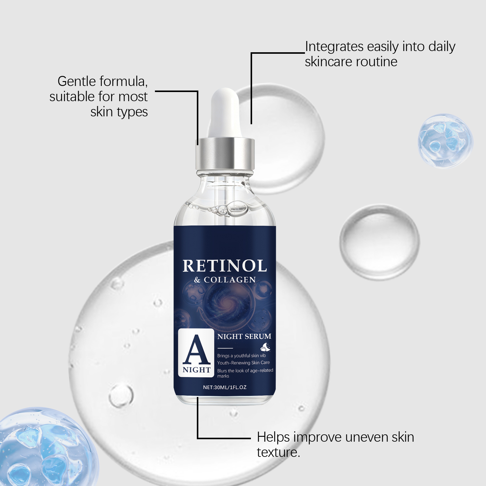 我们的视黄醇精华液,由视黄醇、水解胶原精心调配而成。专为减少皱纹外观设计。使用方法极为便捷:1.彻底清洁并擦干面部。2.涂抹适量并均匀涂抹于面部。3.轻柔按摩,以达到最佳吸收效果。并且全天候保湿肌肤,使肌肤感觉柔软和光滑。