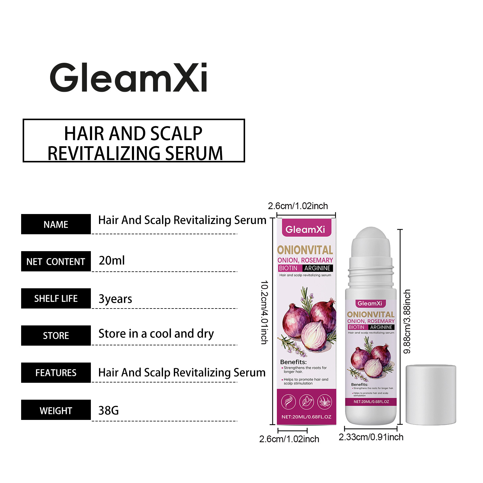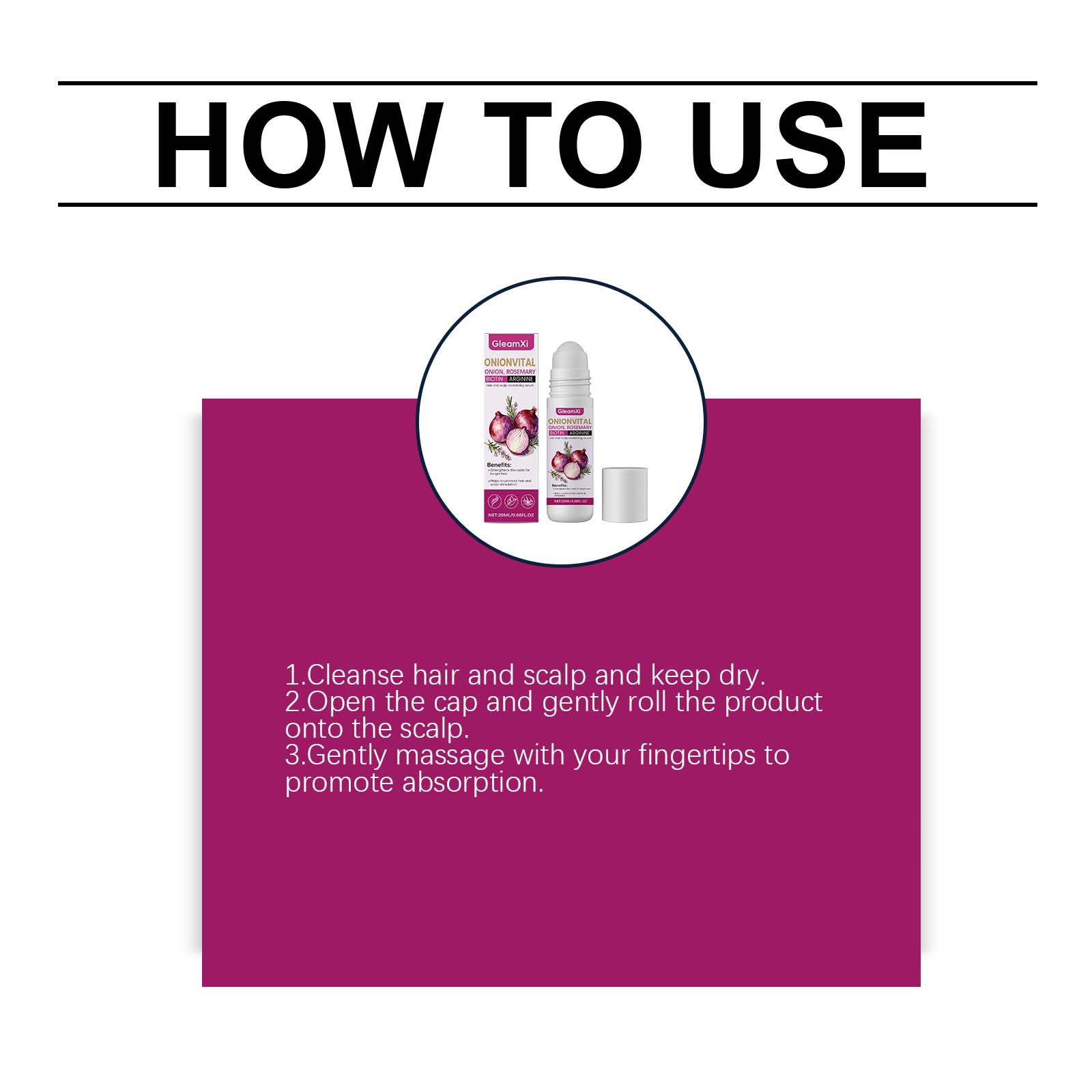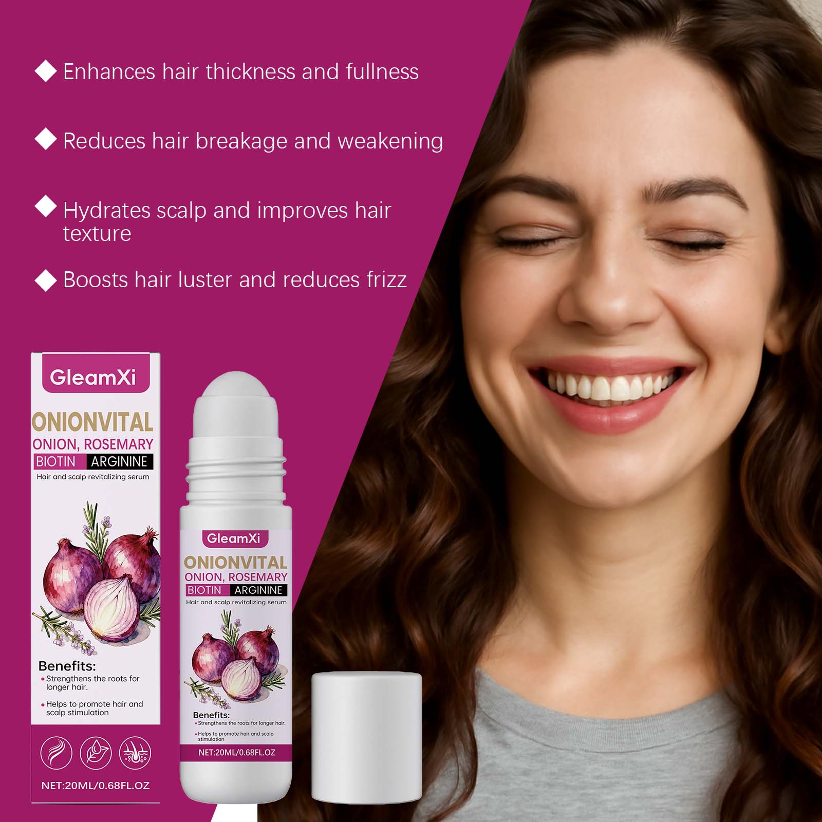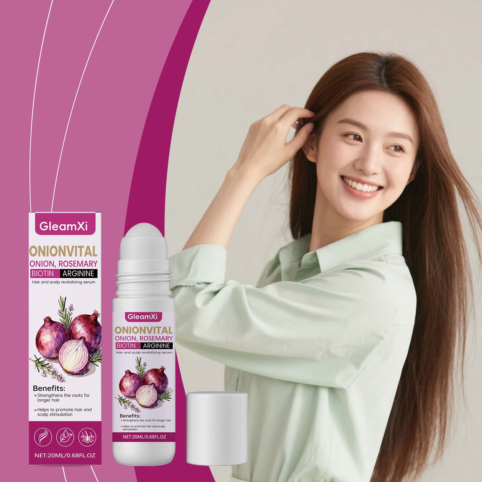 GleamXi Onion Hair Care Roll-On Essence Is Gentle, Smooth, Lustrous, Moisturizing, Refreshing And Silky Hair Care Essential Oil