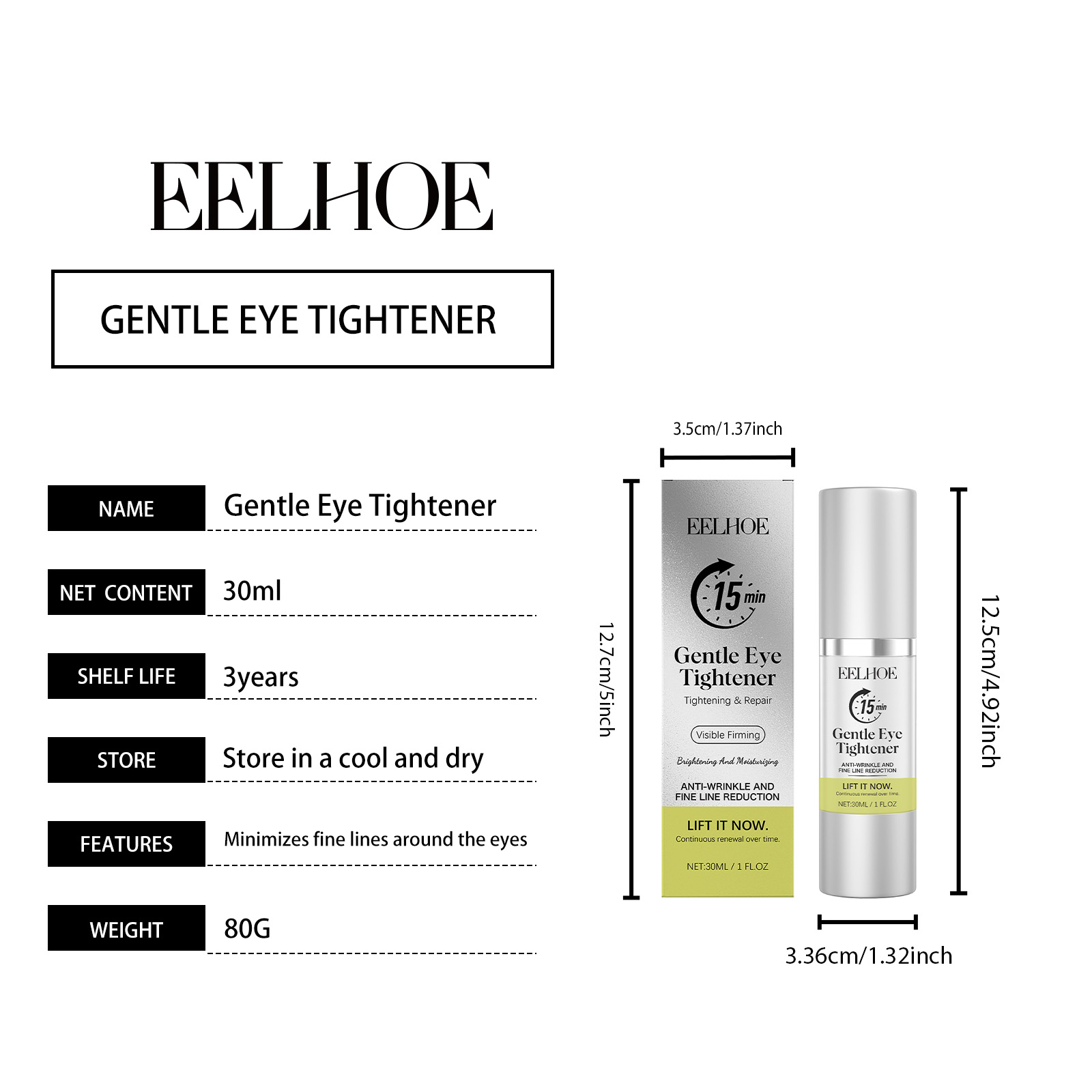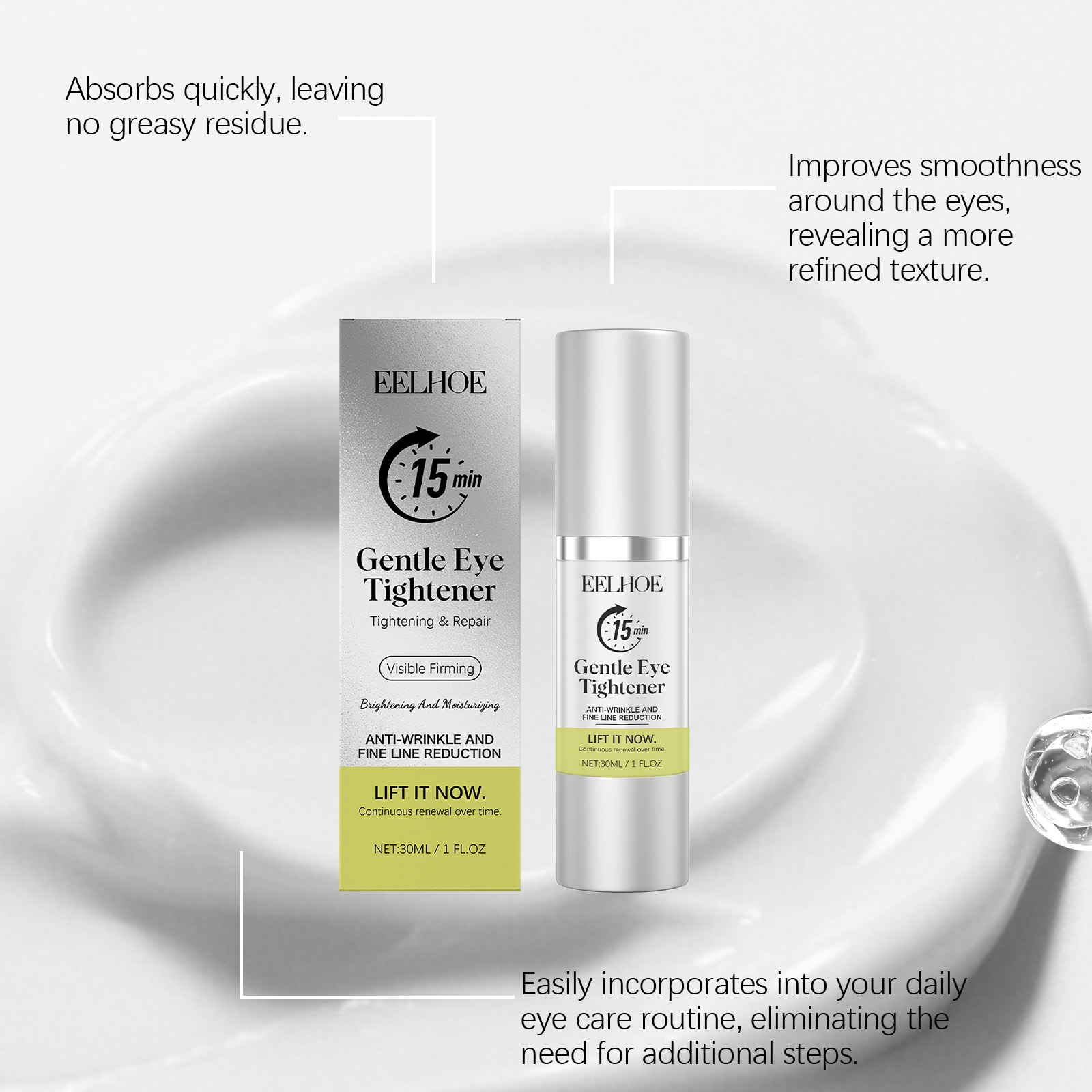 EELHOE Eye Serum Refreshes Dry Skin Around The Eyes, Provides A Light And Comfortable Moisturizing Effect, And Offers Care Day And Night