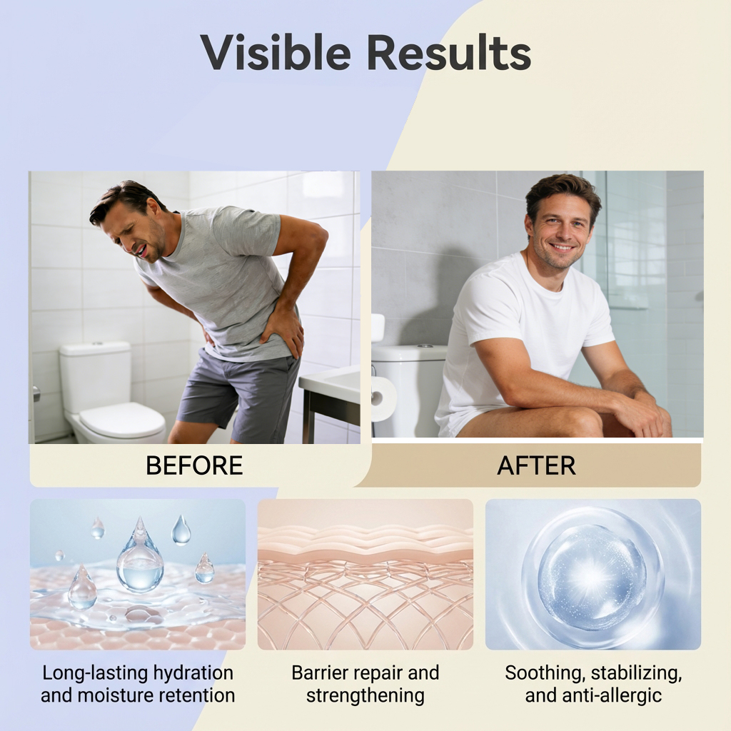我们的肛周护理凝胶 ,由透明质酸、积雪草提取物精心调配而成。专为修复受损的角质层,强化皮肤的脂质屏障设计。使用方法极为便捷:1.使用前,清洁肛门周围的皮肤。2.将适量产品均匀涂抹于肛门周围皮肤,并轻轻按摩,以促进更好吸收。并且可以缓解干燥、紧绷以及轻微的泛红现象。