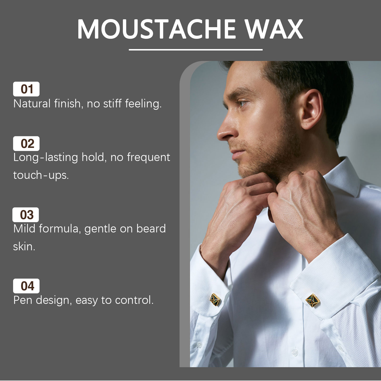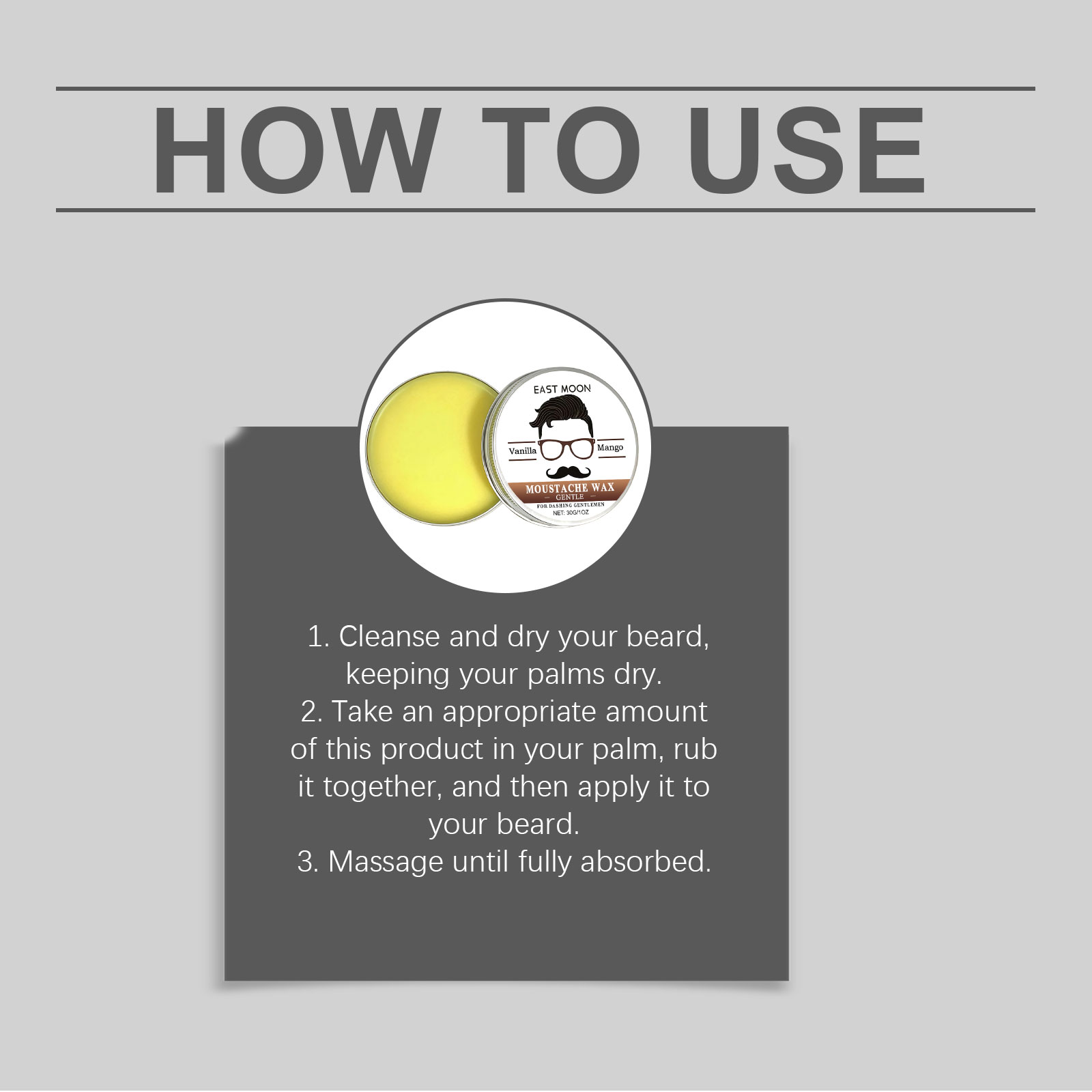 我们的男士胡须膏,由扁叶香果兰果提取物、芒果果提取物精心调配而成。专为塑造自然的胡须轮廓设计。使用方法极为便捷:1.清洁并擦干你的胡须,保持手掌干燥。2.取适量本产品于掌心,揉搓均匀后涂抹于胡须上。3.按摩至完全吸收。并且可维持胡须造型数小时。