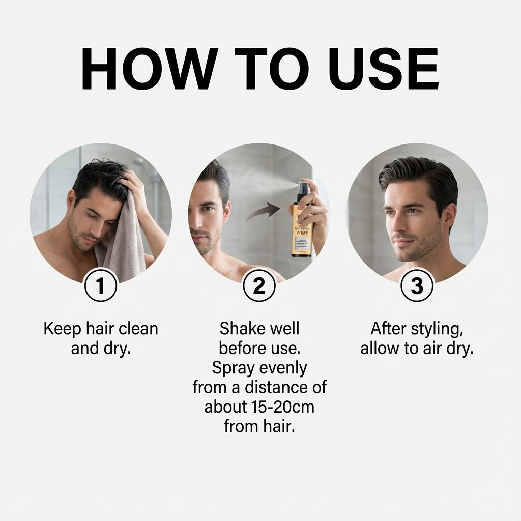 我们的头发造型喷雾,由乙醇、薄荷醇精心调配而成。专为保持发型设计。使用方法极为便捷:保持头发清洁干燥。使用前,请充分摇匀。从距离头发约15-20厘米处均匀喷洒。造型后,请自然风干。并且可以保持造型+护发。