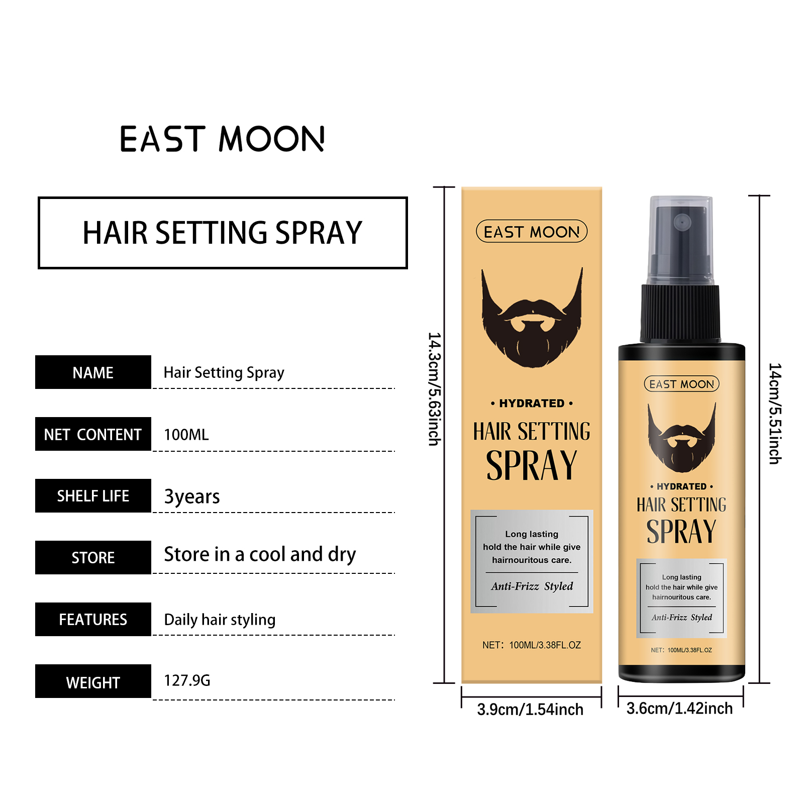 East Moon Hair Styling Spray Light Spray For Daily Refreshing, Fluffy And Natural Men's Hair Styling