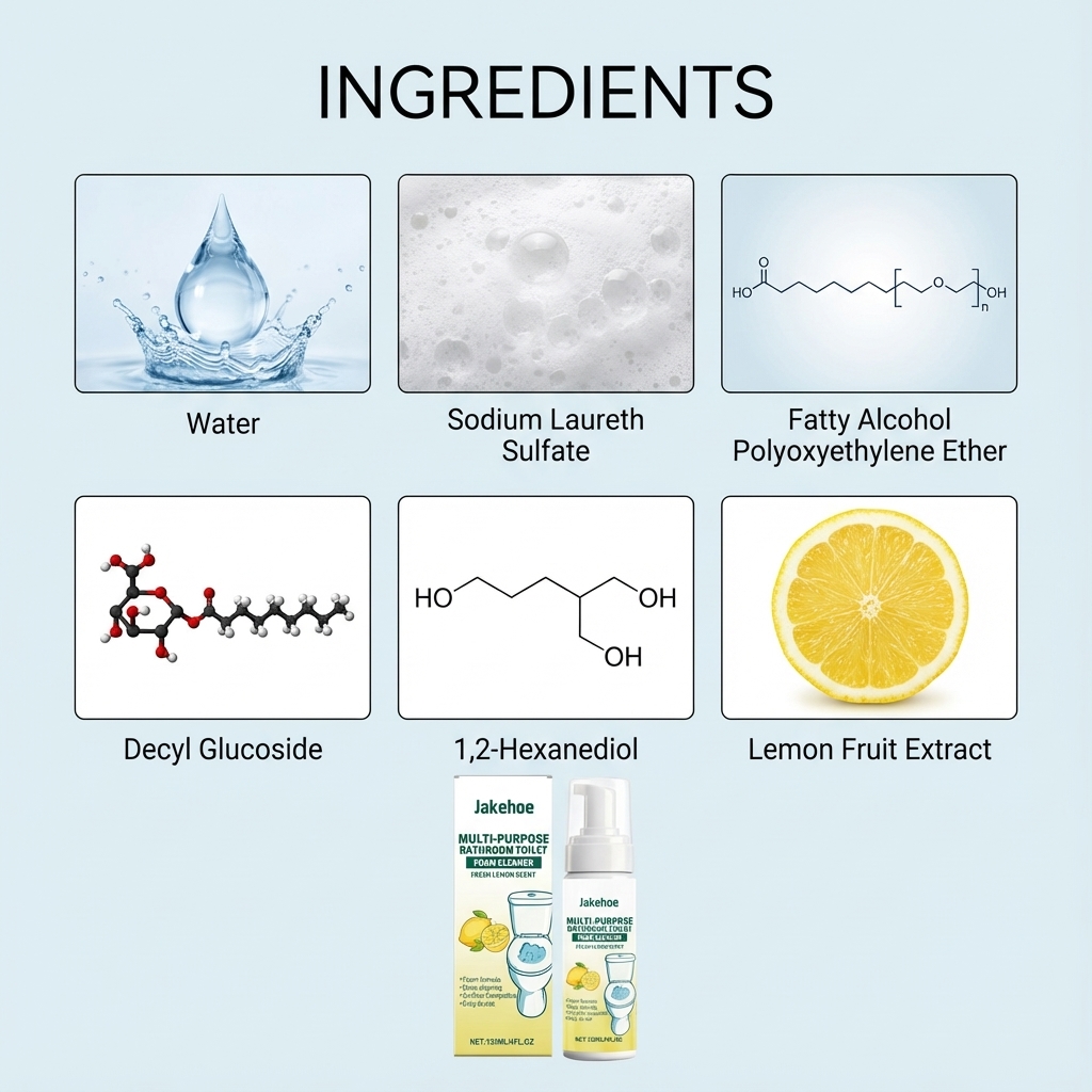 Jakehoe Multi-Purpose Bathroom Toilet Foam Cleaner With Lemon Fragrance And Active Foam For Deep Decontamination