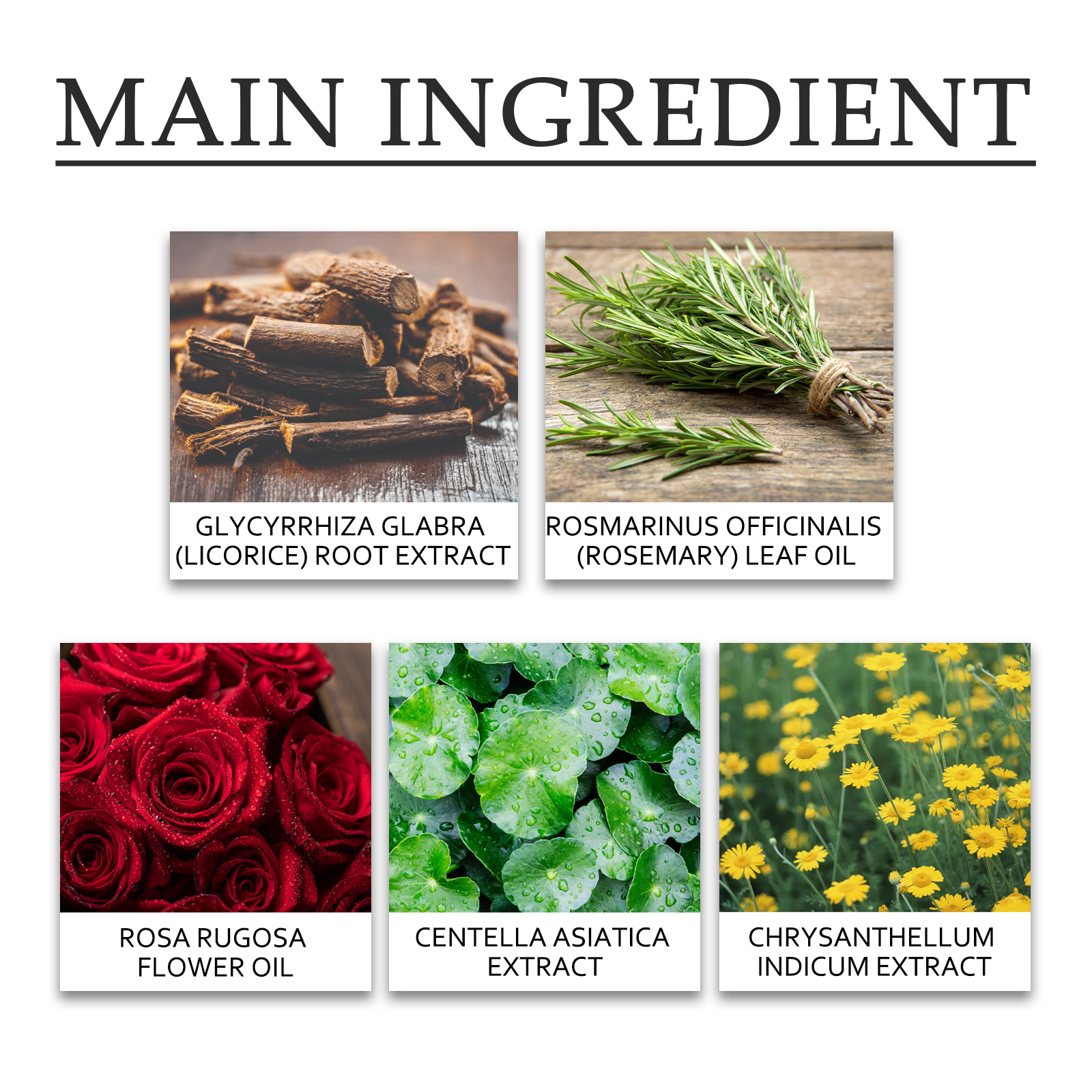 | 成分 | 迷迭香提取物、积雪草提取物、玫瑰提取物 |