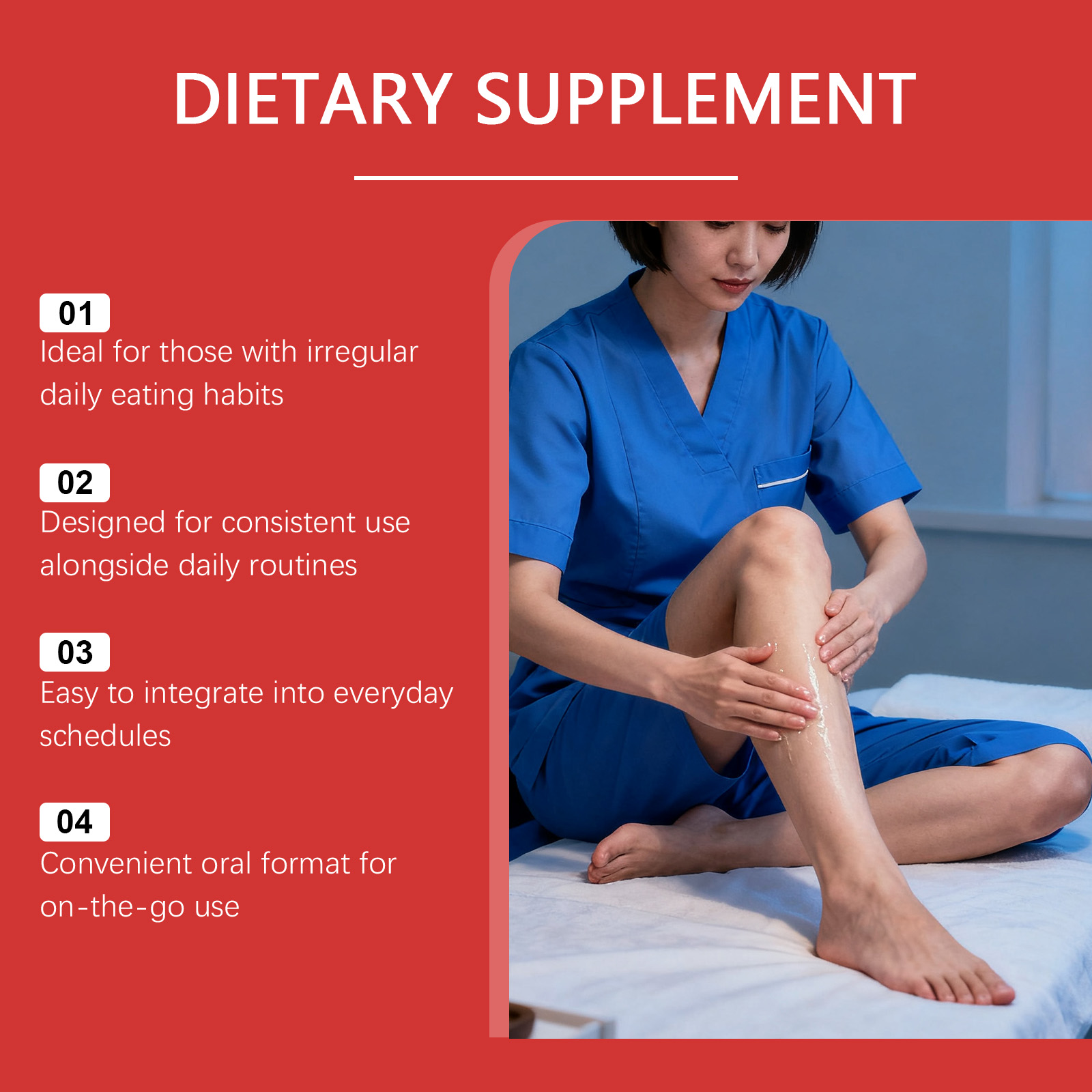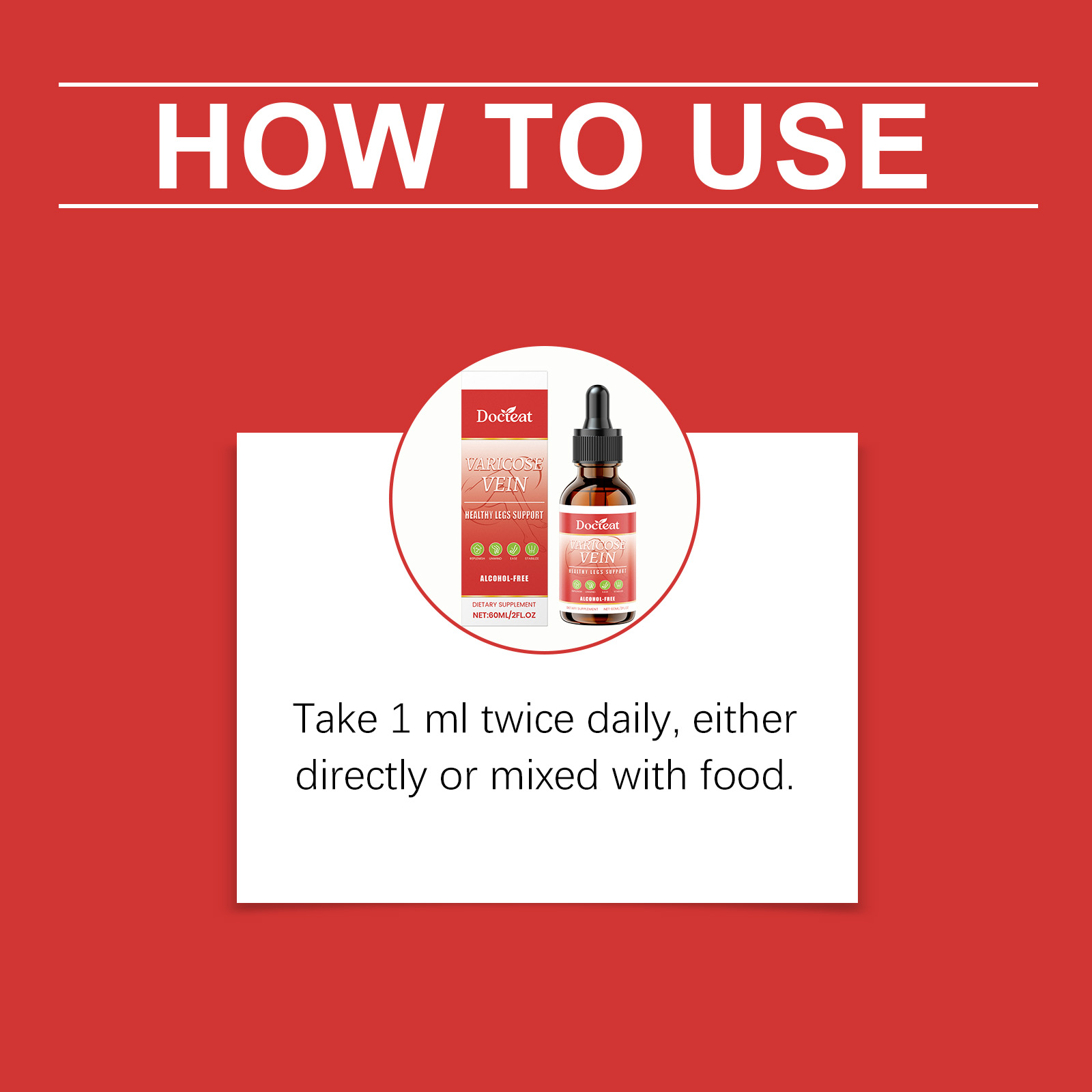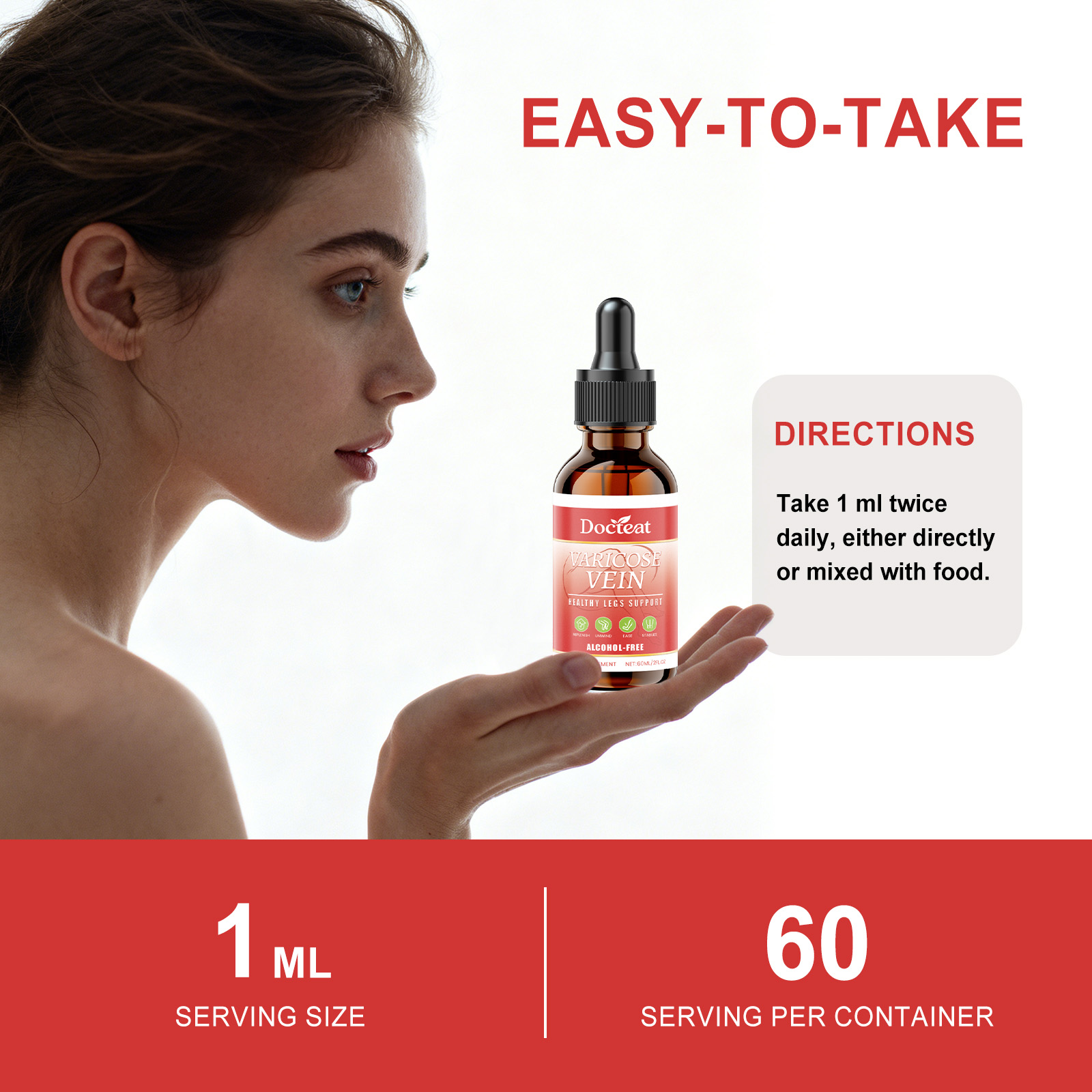 我们的活力腿部支持滴剂,由维生素C、维生素D3精心调配而成。专为支持腿部健康血液循环,促进静脉结构力量稳固设计。使用方法极为便捷:一天2次,一次1ml,直接服用或与其他食物混合服用。并且它可以支持整体腿部舒适感受,富含抗氧化成分支持血管状态。