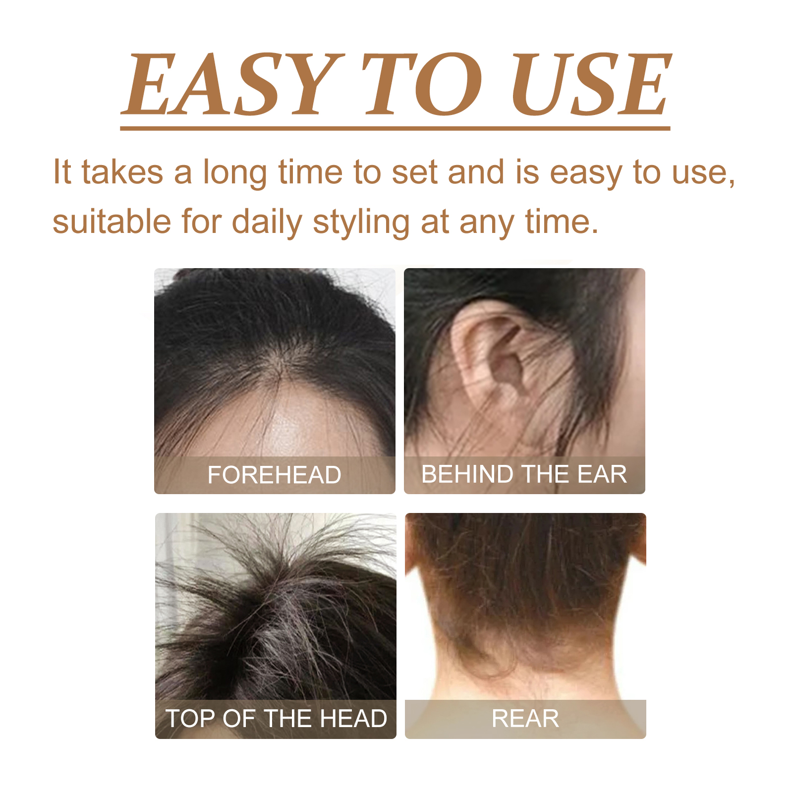 我们的发蜡棒含有卡波姆、1,2-己二醇、蜂蜡。它可以深层保湿发根,能形成一层细腻的保护膜,增加光泽和灵活性,使发型更持久。它的使用方法很简单:首先把梳子浸在水里,打开盖子,旋转蜡棒,在需要的地方,沿着发质方向,根据需要重新涂抹3-4次即可。定型时间长,使用方便,适合任何时候的日常造型。