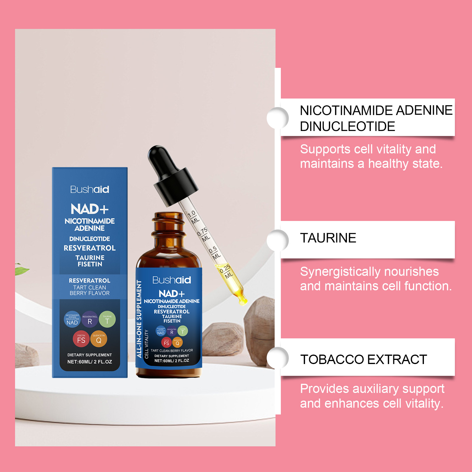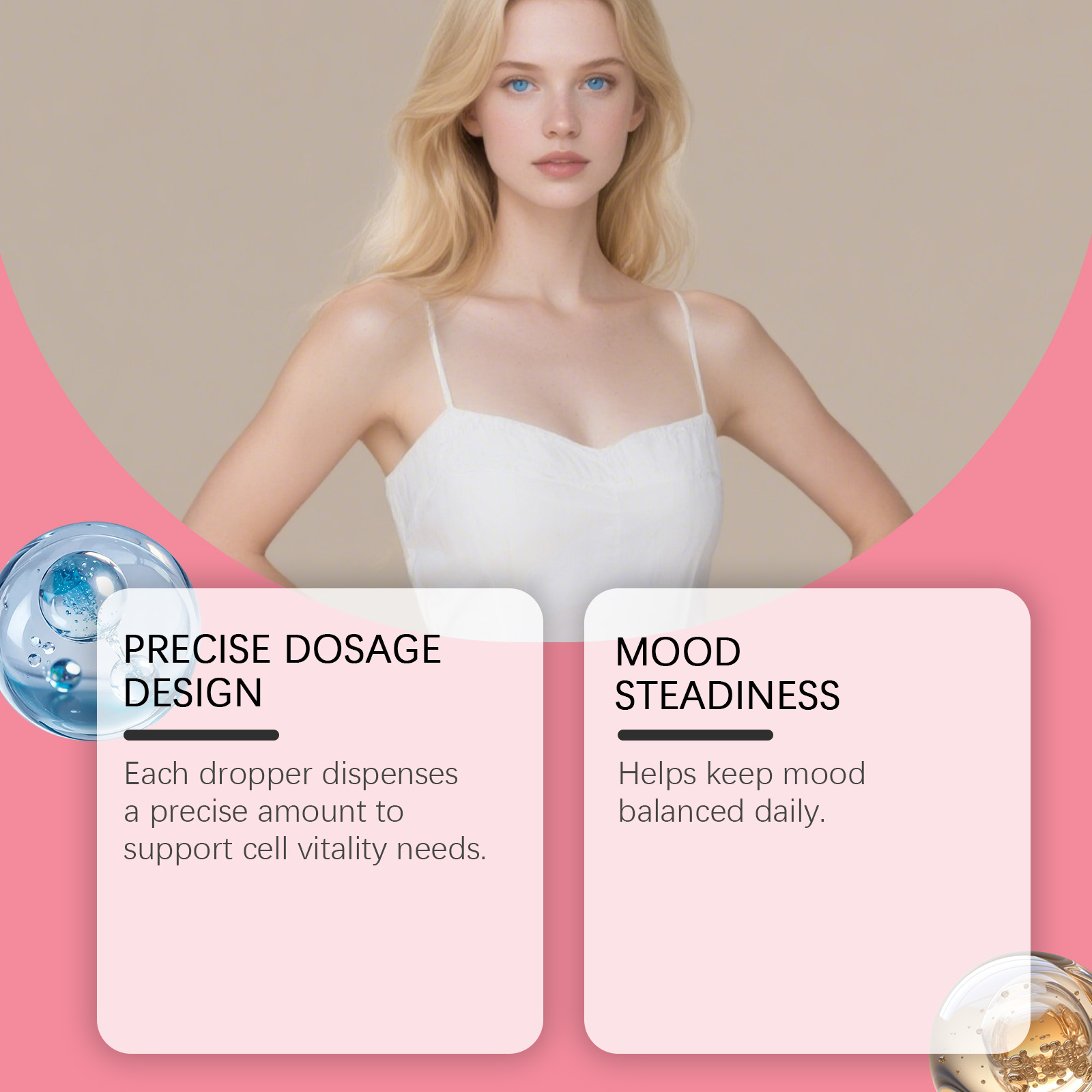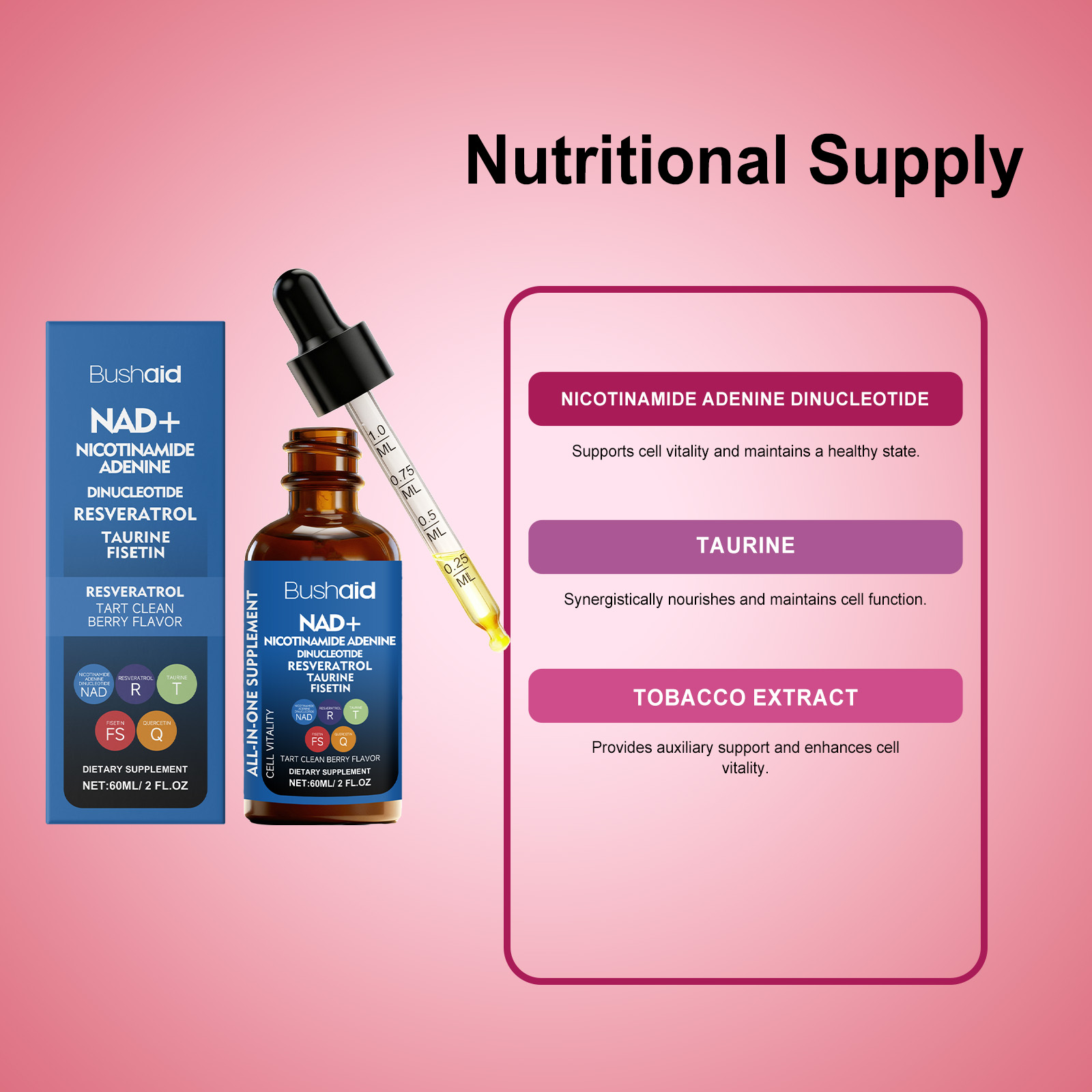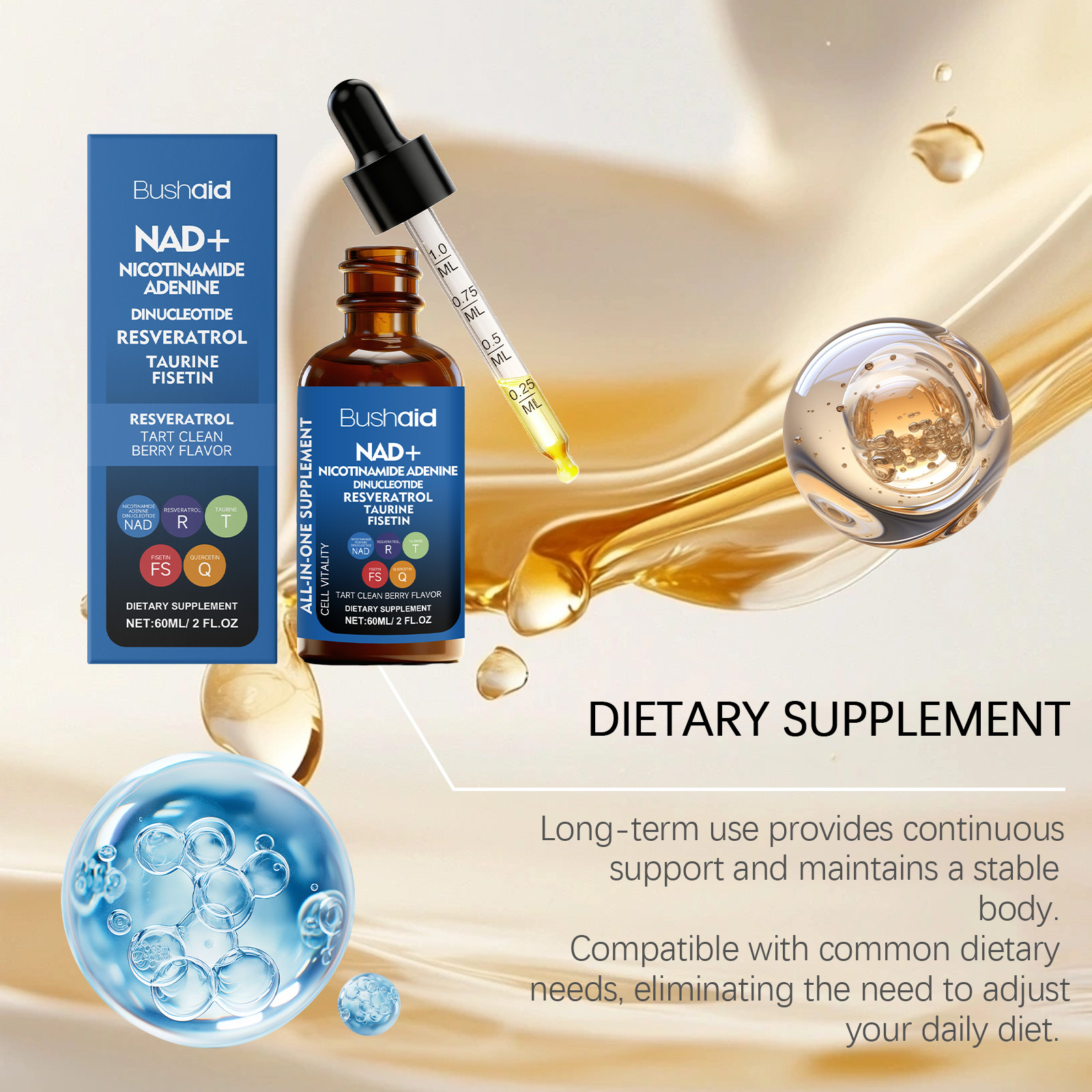 我们的活力支持滴剂,由维生素C、维生素E精心调配而成。专为有助于每日保持情绪平衡设计。使用方法极为便捷:每天服用2毫升,可以直接服用或与其他食物混合。并且它可以支持细胞活力并维持健康状态。