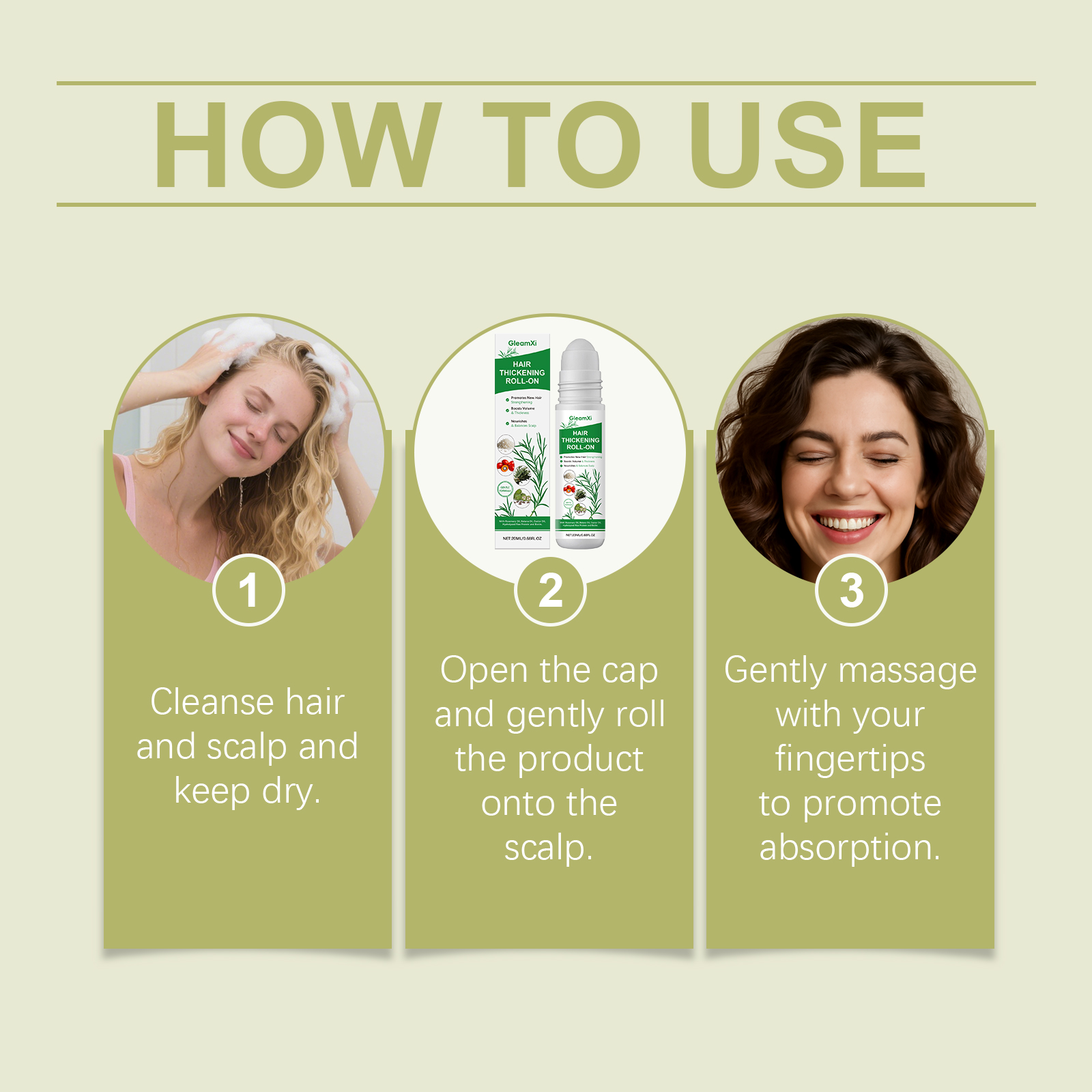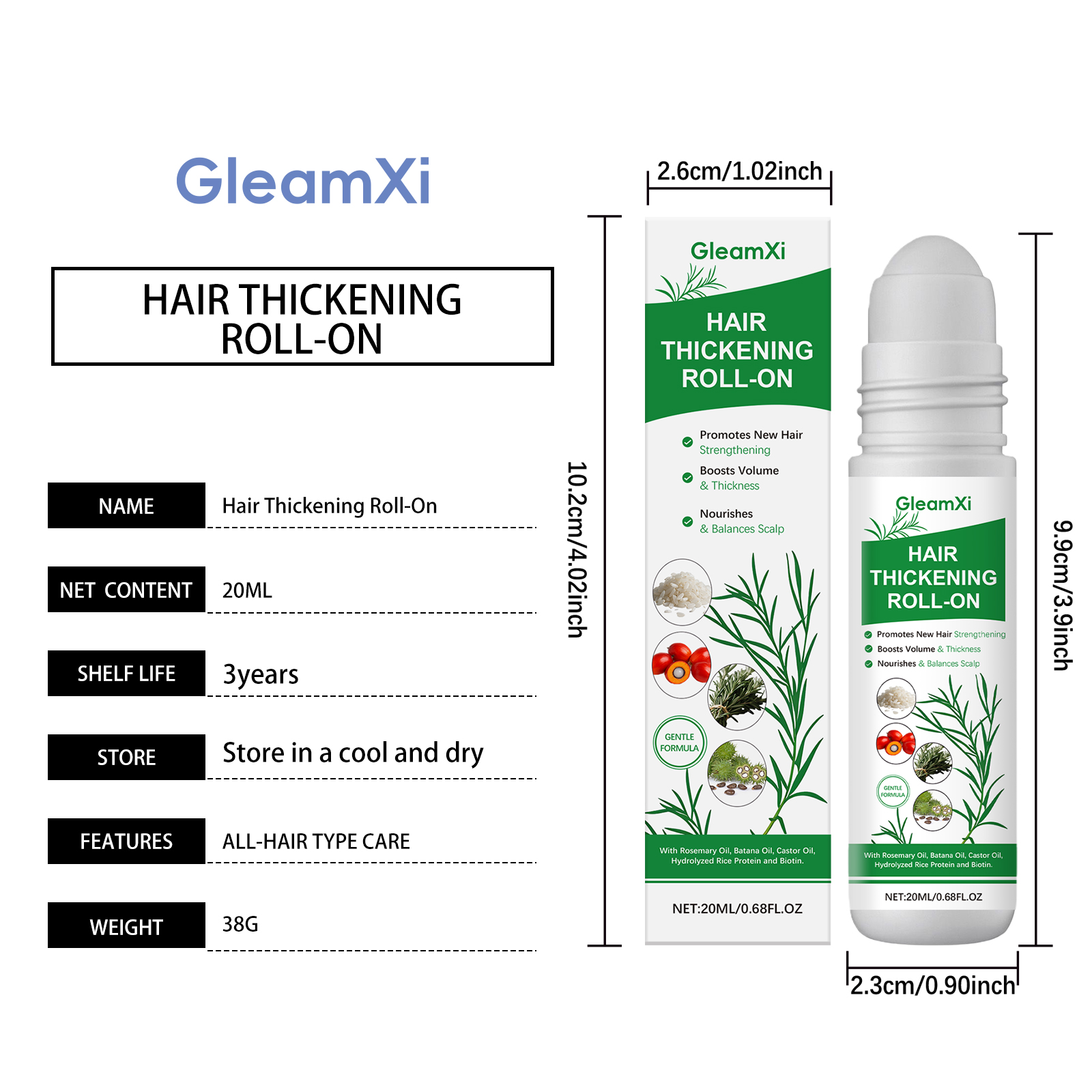 GleamXi Plant Extract Hair Care Roll-On Essence: Gentle, Smooth, Hydrating, Light And Refreshing Hair Care Essence