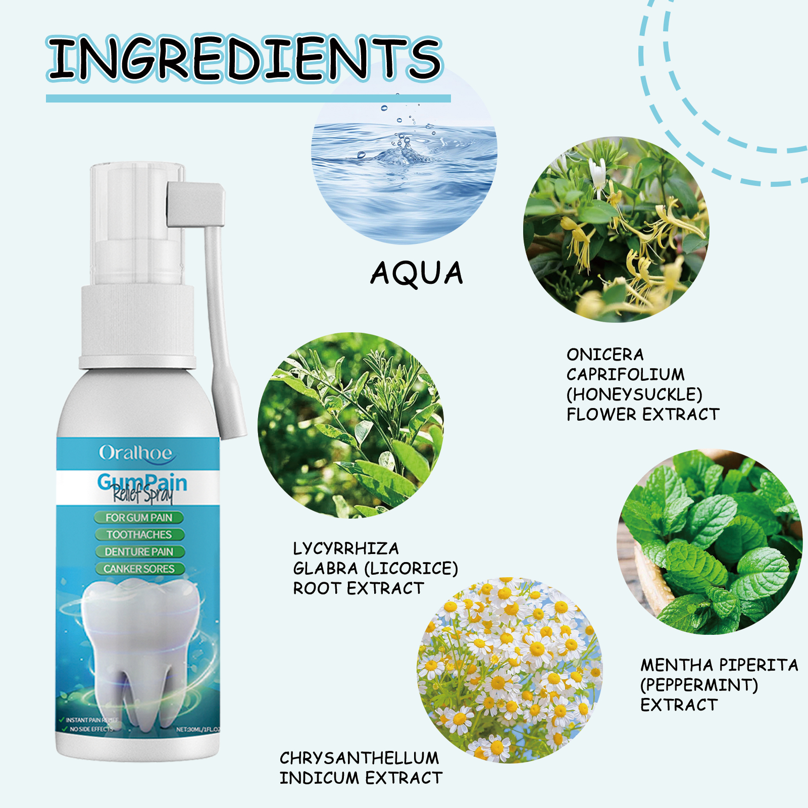 Oralhoe Gum Pain Relief Spray, Deep Clean Tooth Dirt Fresh Breath Care Gum Care