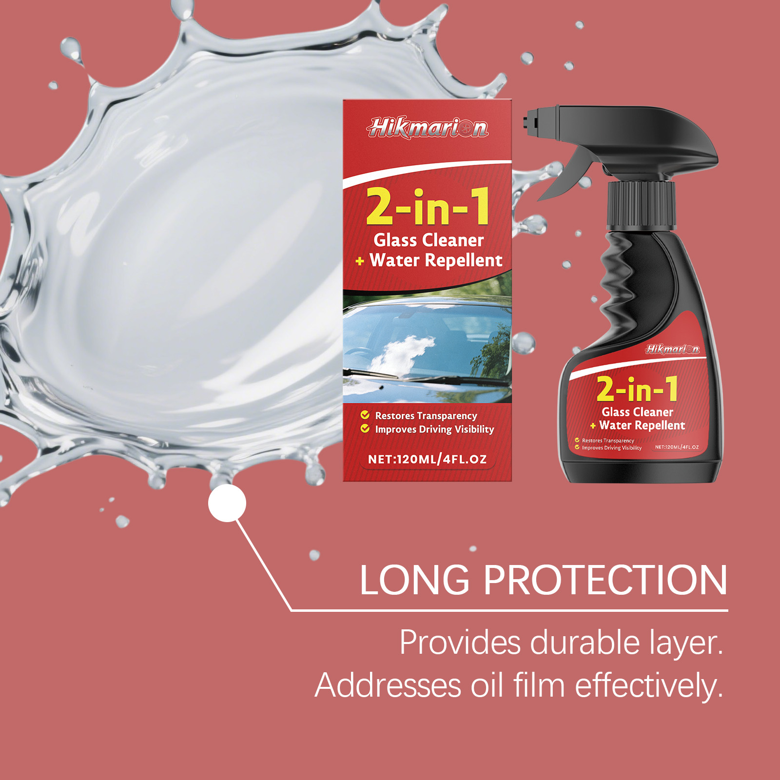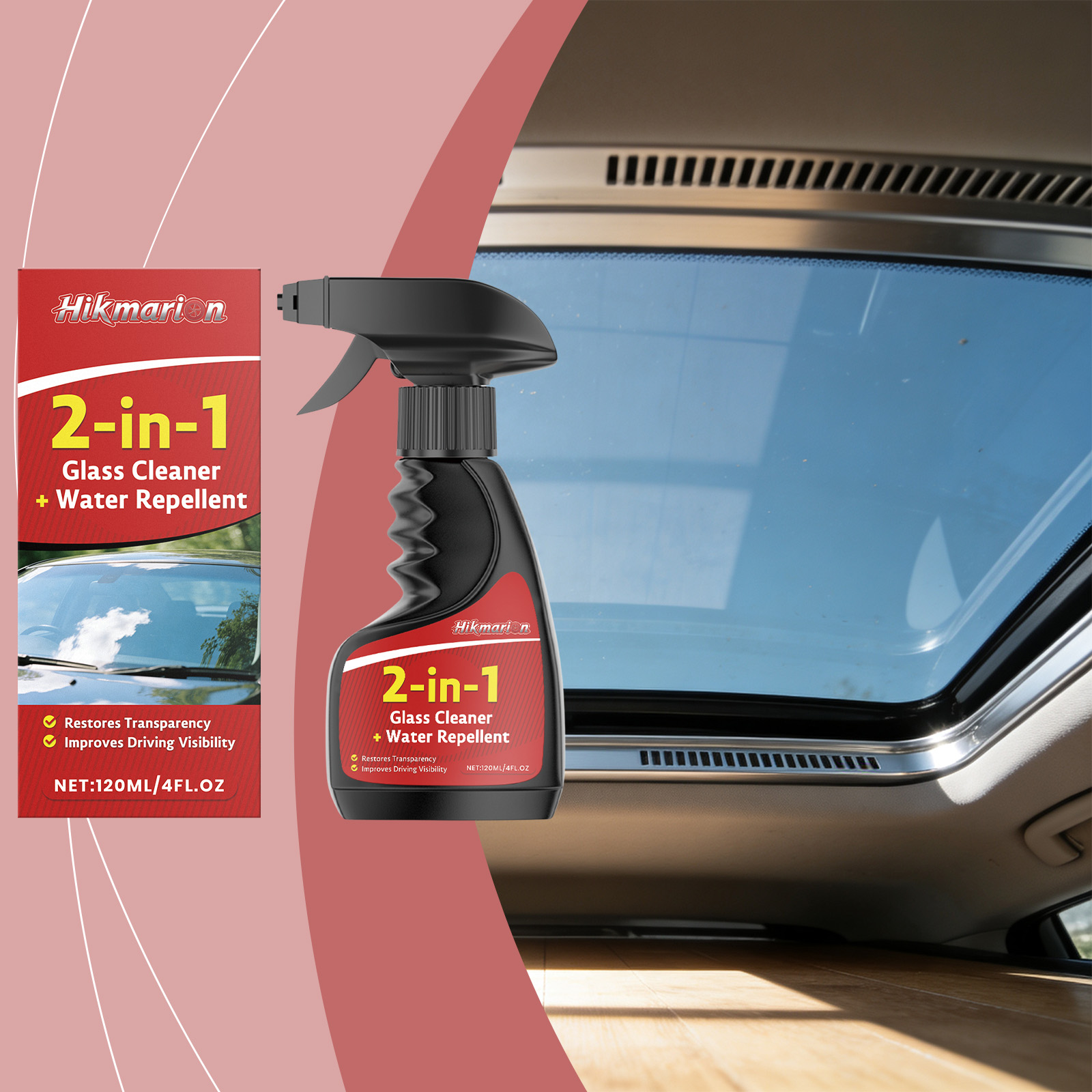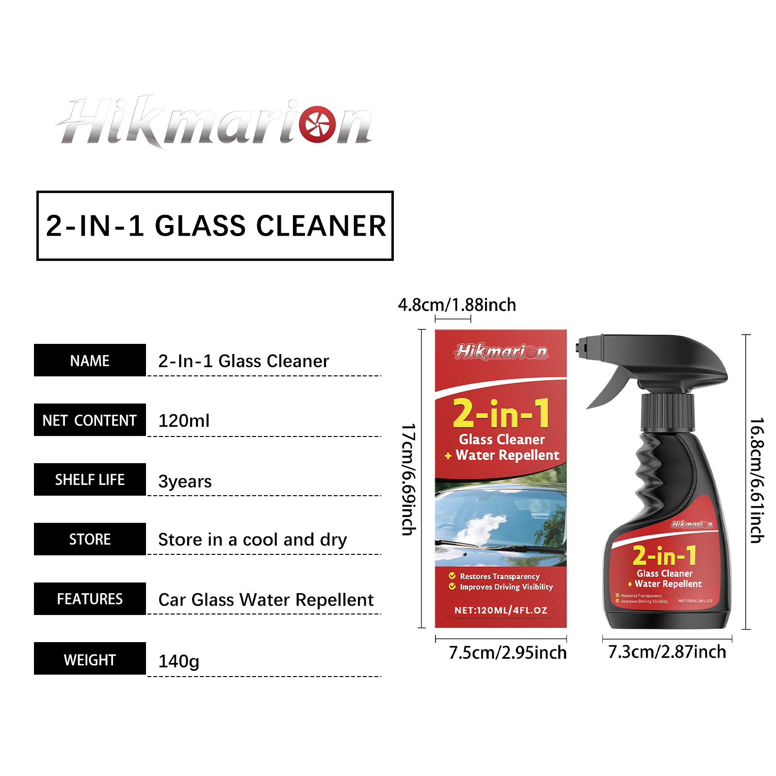 Hikmarion Two-In-One Glass Cleaner For Car And Household Rearview Mirror Glass Water Stains And Luster