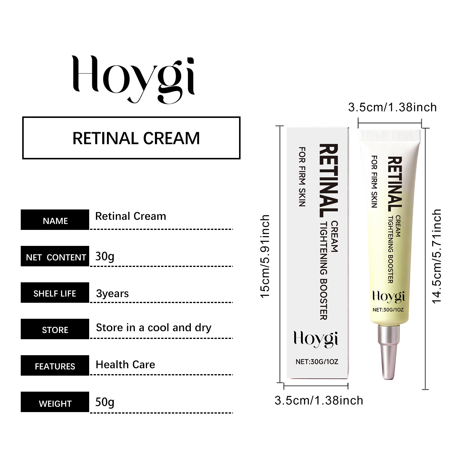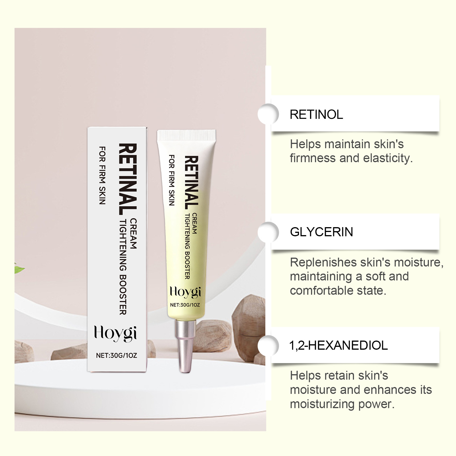 Hoygi Retinol Cream Is A Moisturizing, Nourishing, Gentle, Hydrating, Refreshing, Lubricating And Brightening Cream For The Facial Skin
