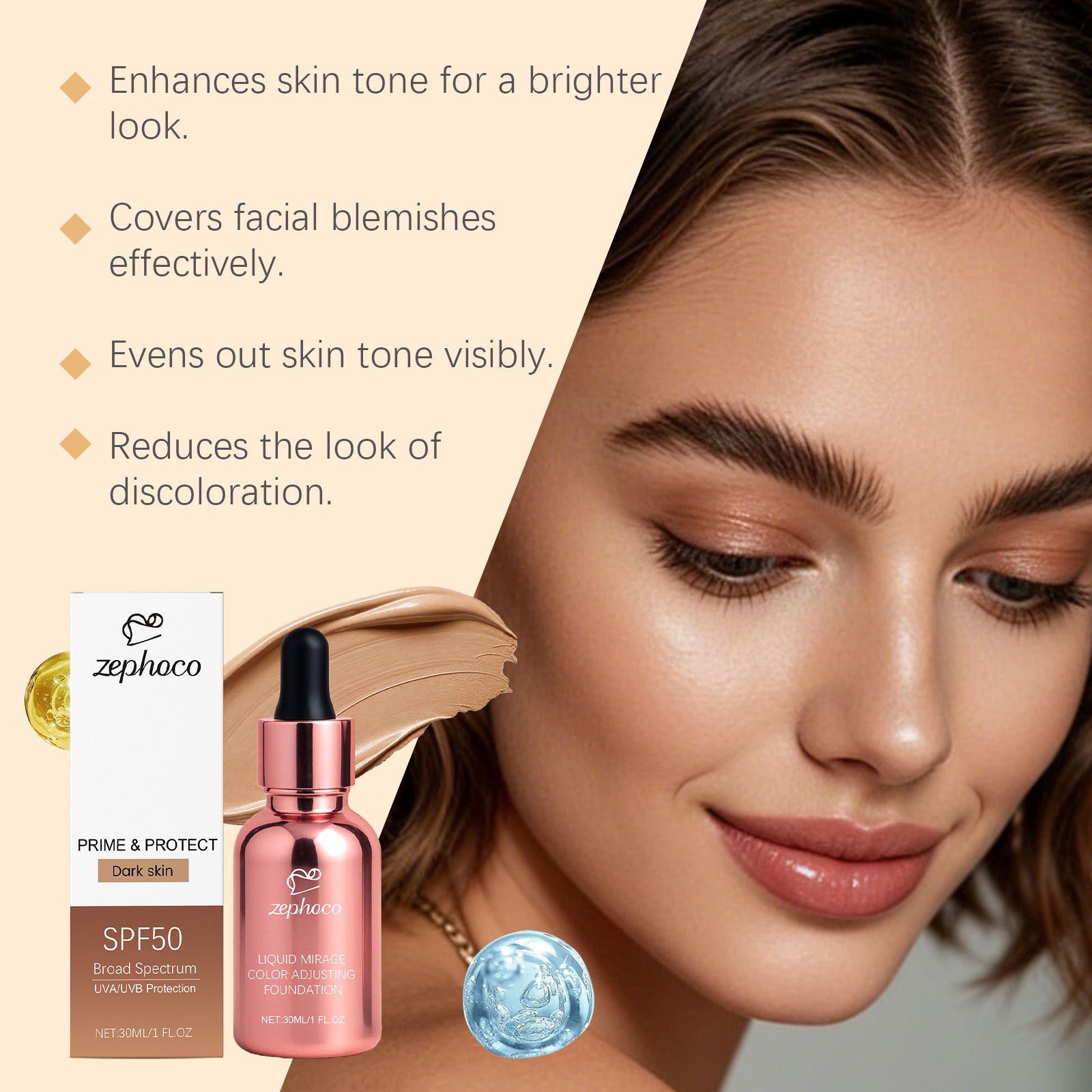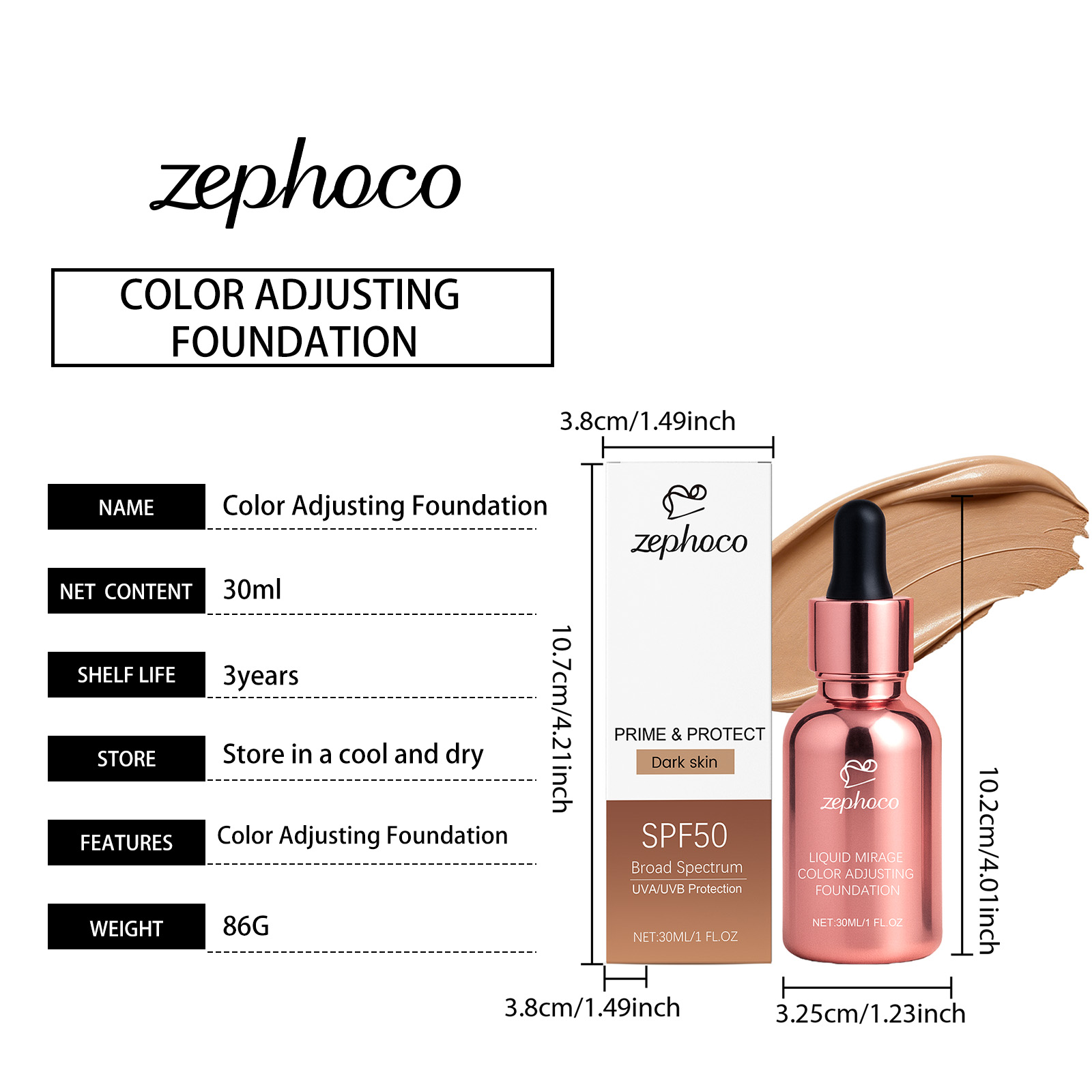 zephoco Dark Skin Protective Color-Changing Foundation Is A Light, Moisturizing, Natural, Smooth, Clear And Concealing Foundation