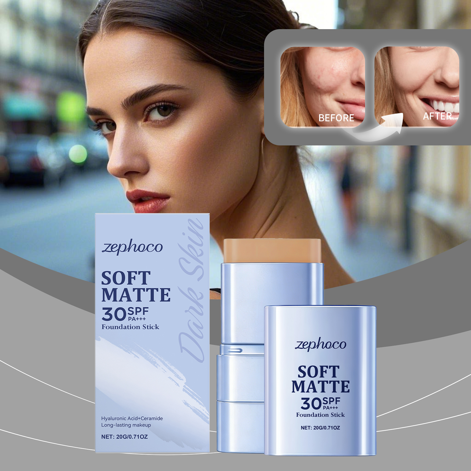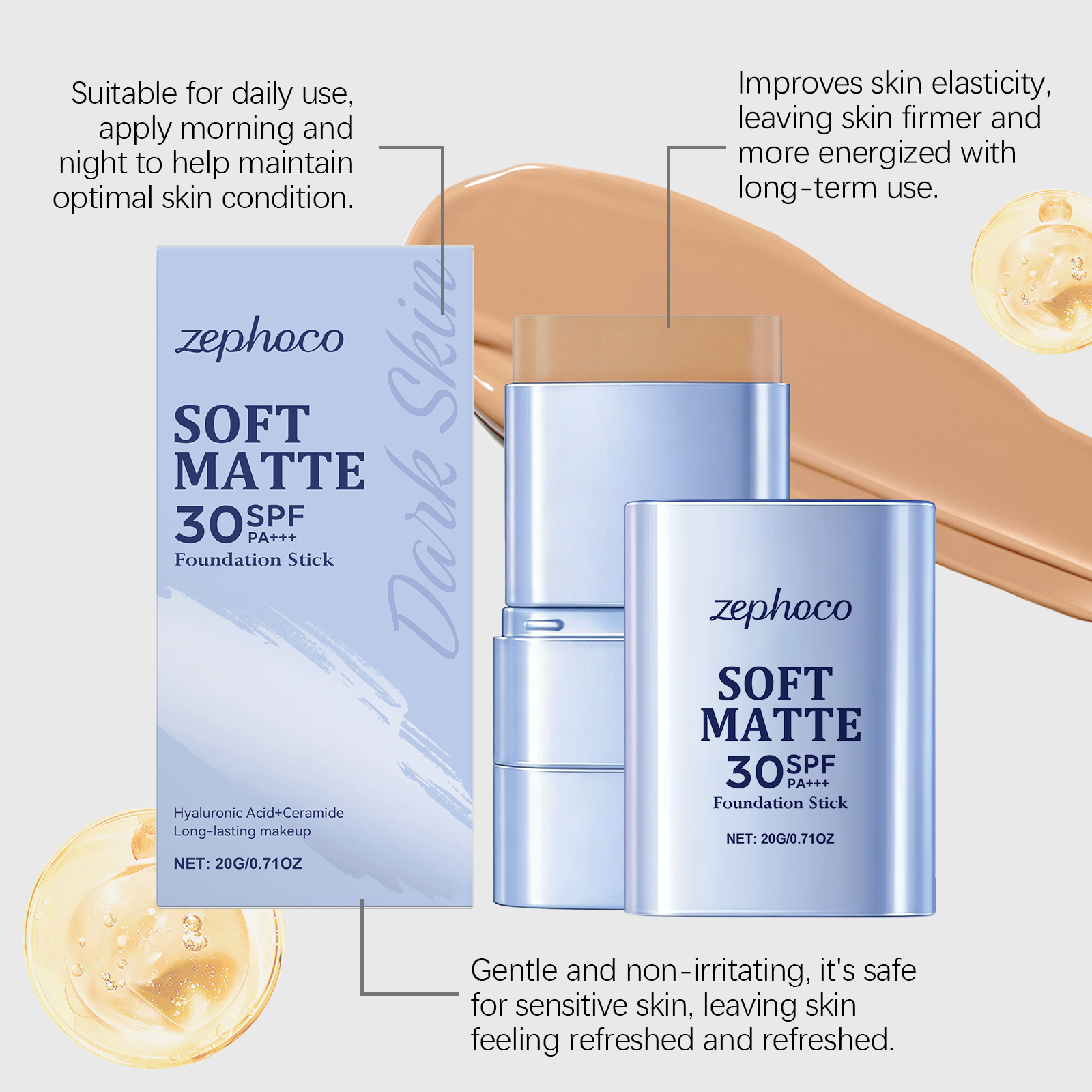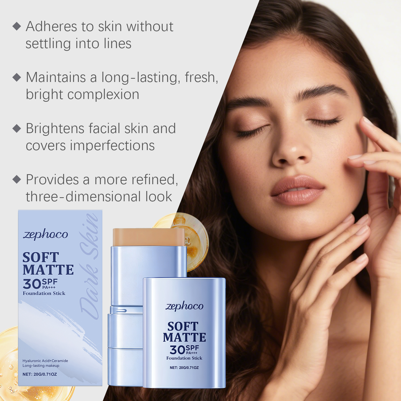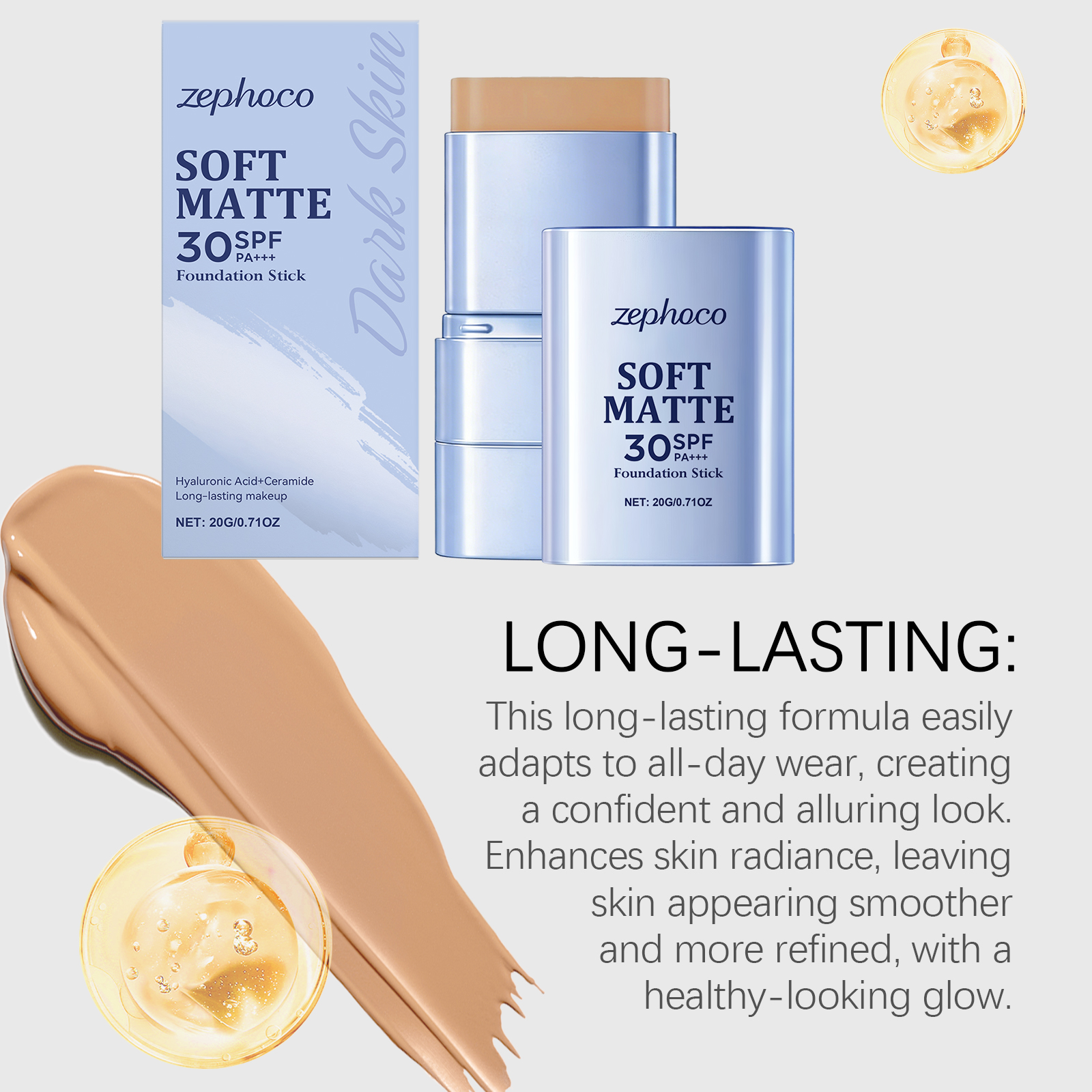 zephoco Two-In-One Soft Mist Foundation Stick (For Darker Skin Tones) Provides A Light, Concealer, Long-Lasting, Radiant, Lustrous And Clear Makeup Effect