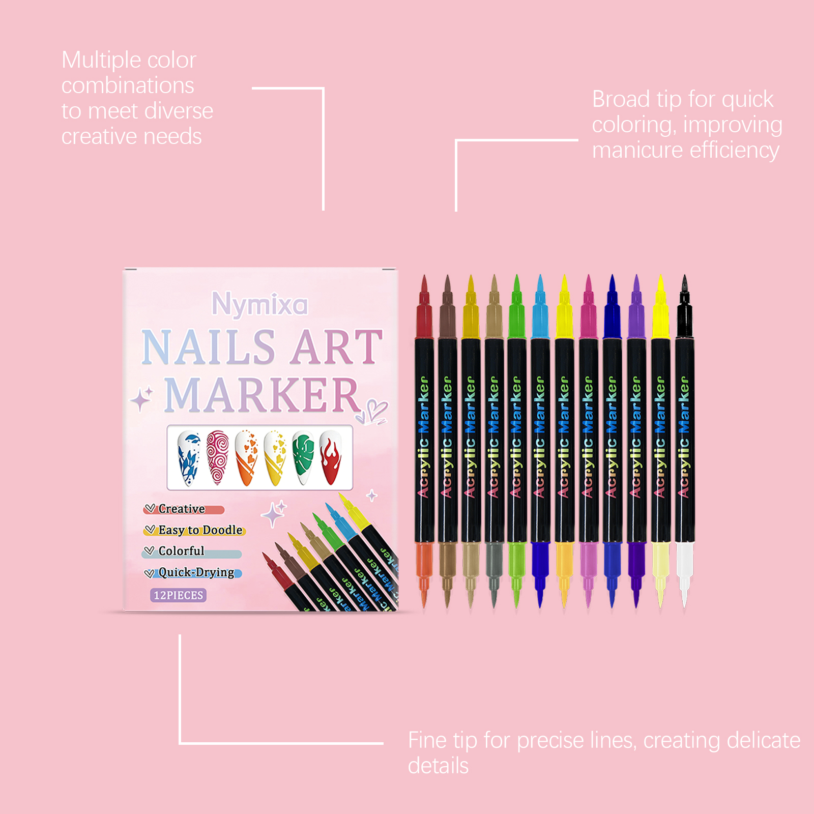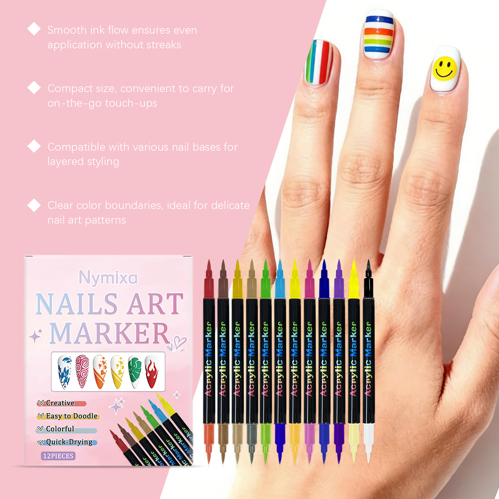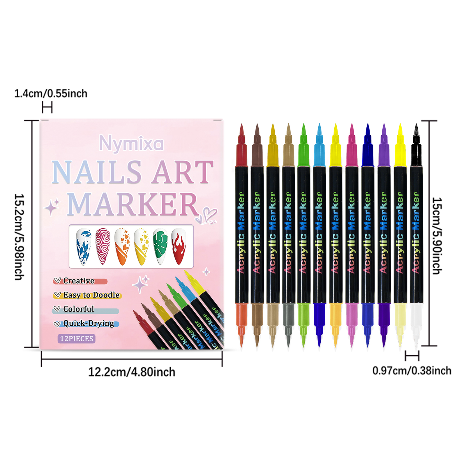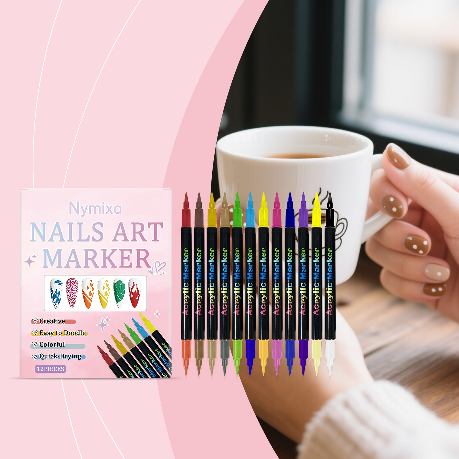 Nymixa Double-Headed Diy Nail Pen Set: Creative Hand-Painted Nail Nail Covers With Colorful Patterns