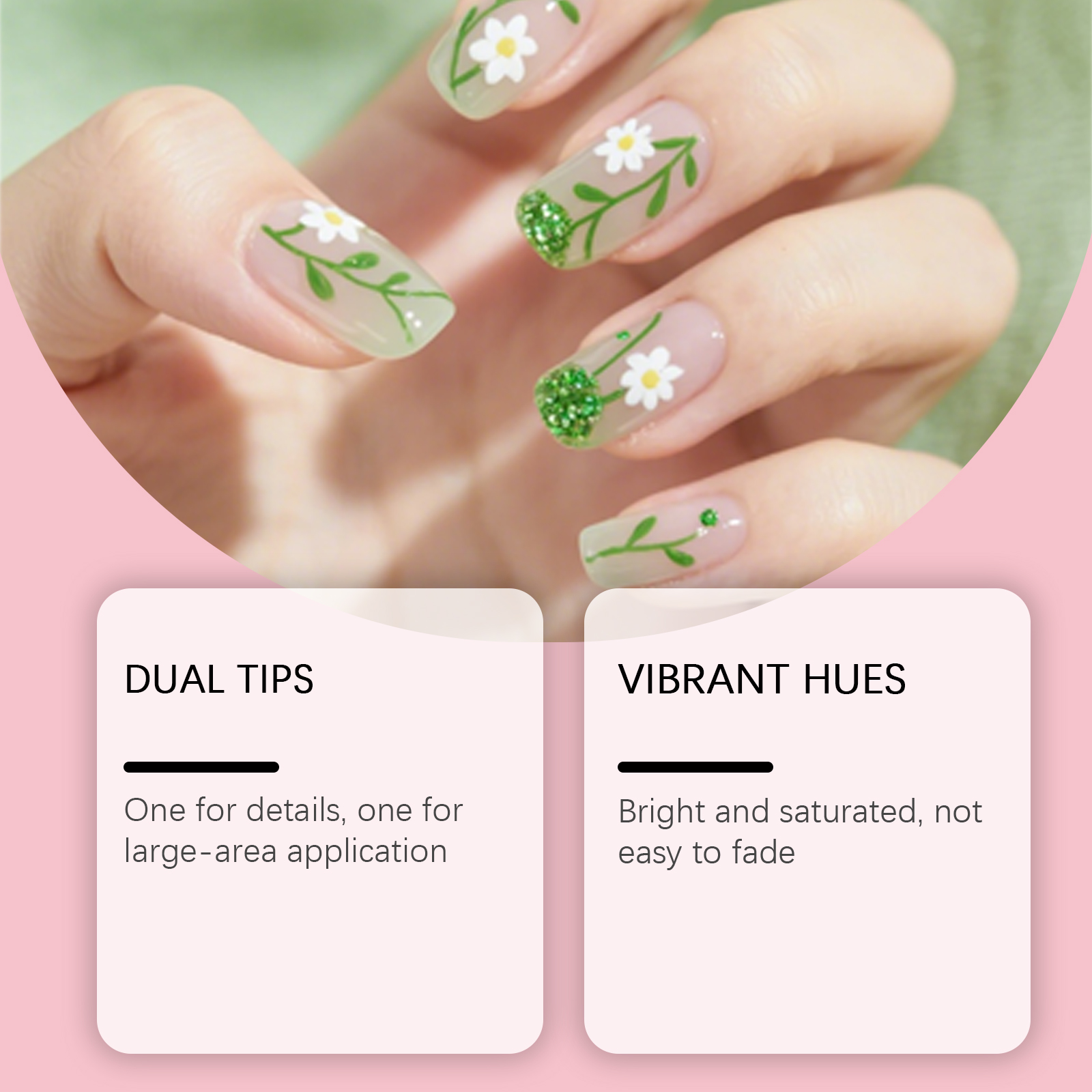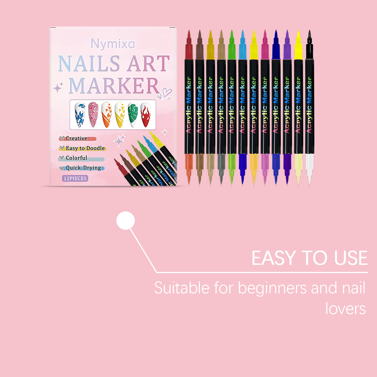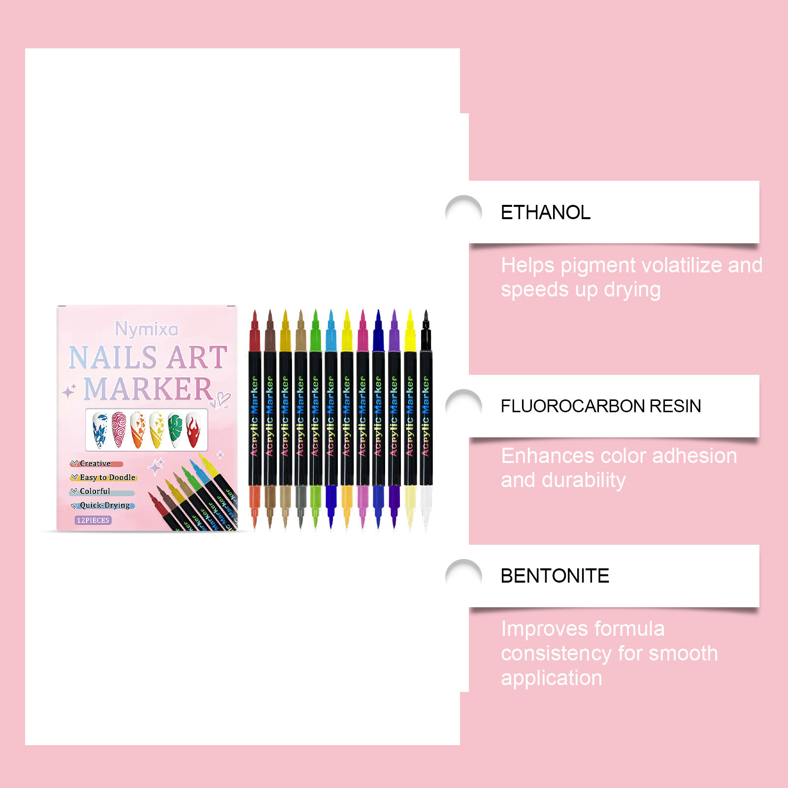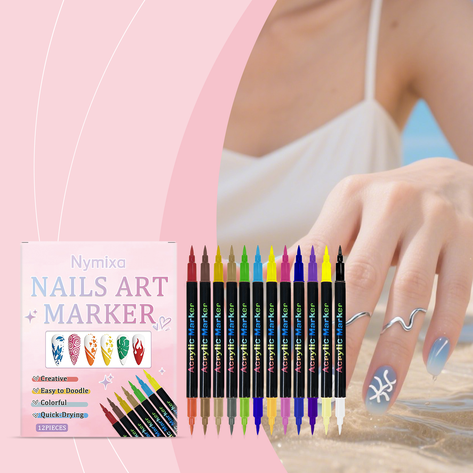 Nymixa Double-Headed Diy Nail Pen Set: Creative Hand-Painted Nail Nail Covers With Colorful Patterns
