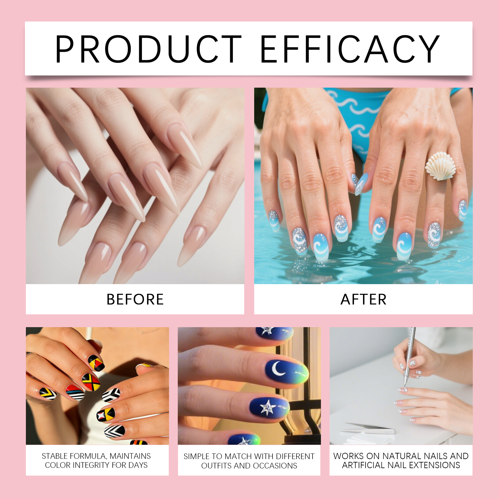 我们的双头DIY美甲笔套装,由氟碳树脂、膨润土精心调配而成。专为兼容多种指甲底油,适合分层造型,清晰的颜色边界,适合精致的美甲图案设计。使用方法极为便捷:打开双头盖,选择你喜欢的颜色,即可在指甲上绘制所需图案。墨水干燥后具有防水性。使用后,请及时拧紧瓶盖,以防墨水干涸影响后续使用。并且它精细笔尖用于绘制精确线条,创造精致细节。