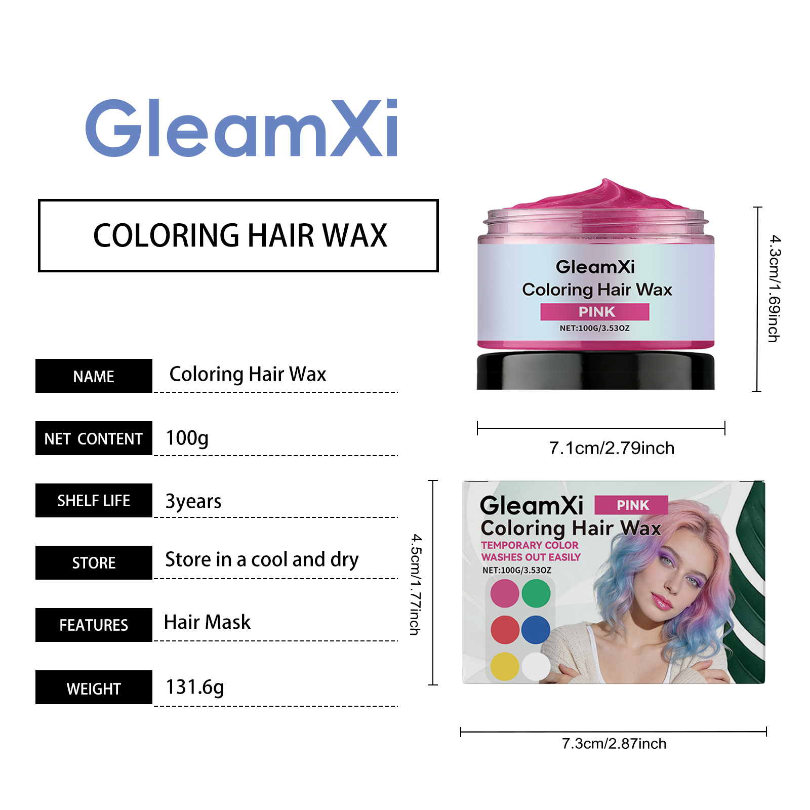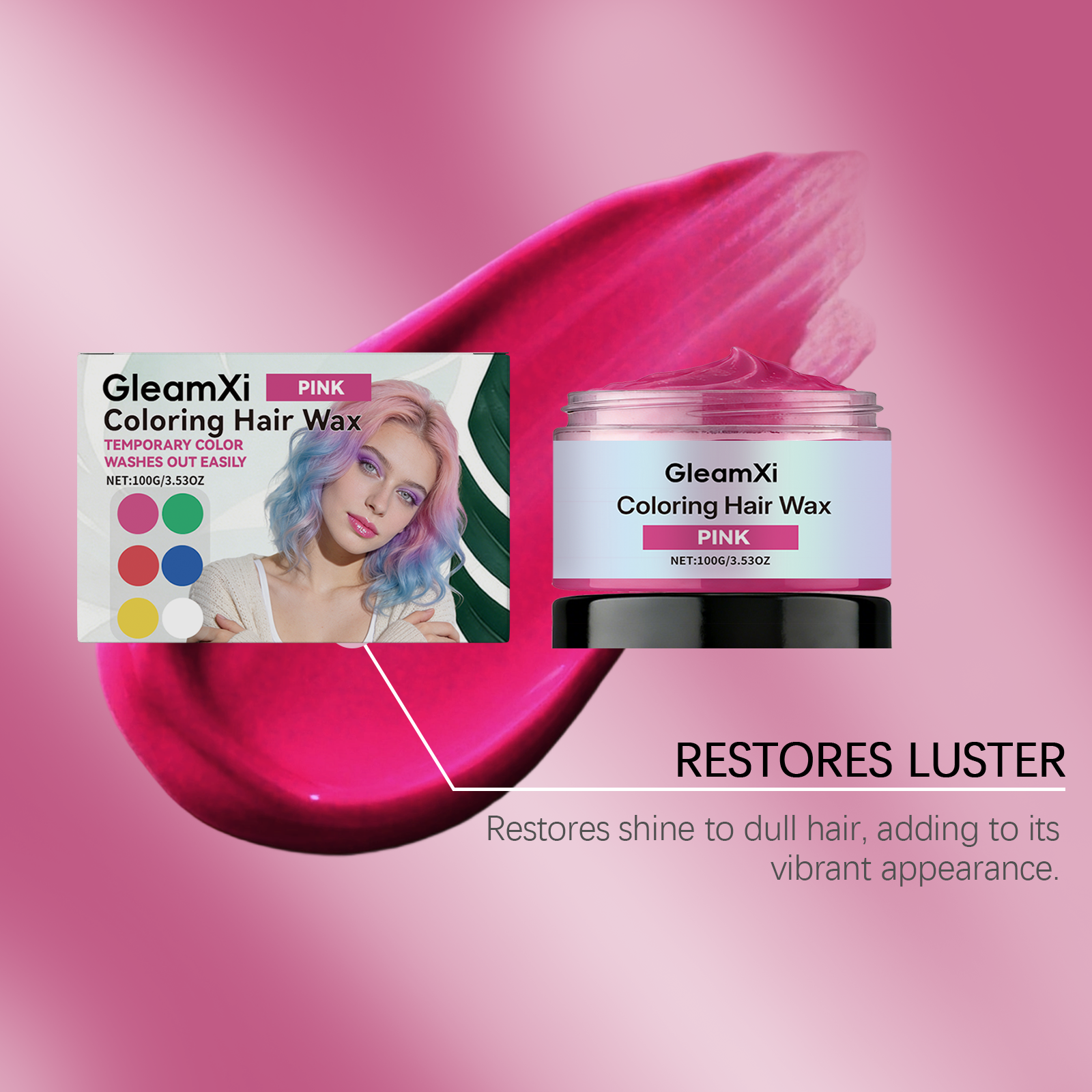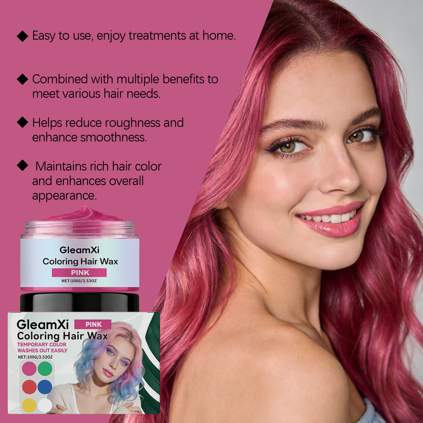 GleamXi Temporary Pink Hair Gel - Glittering Hair Color With Natural Color Appearance, Even Coverage For Fashionable Hair Gel