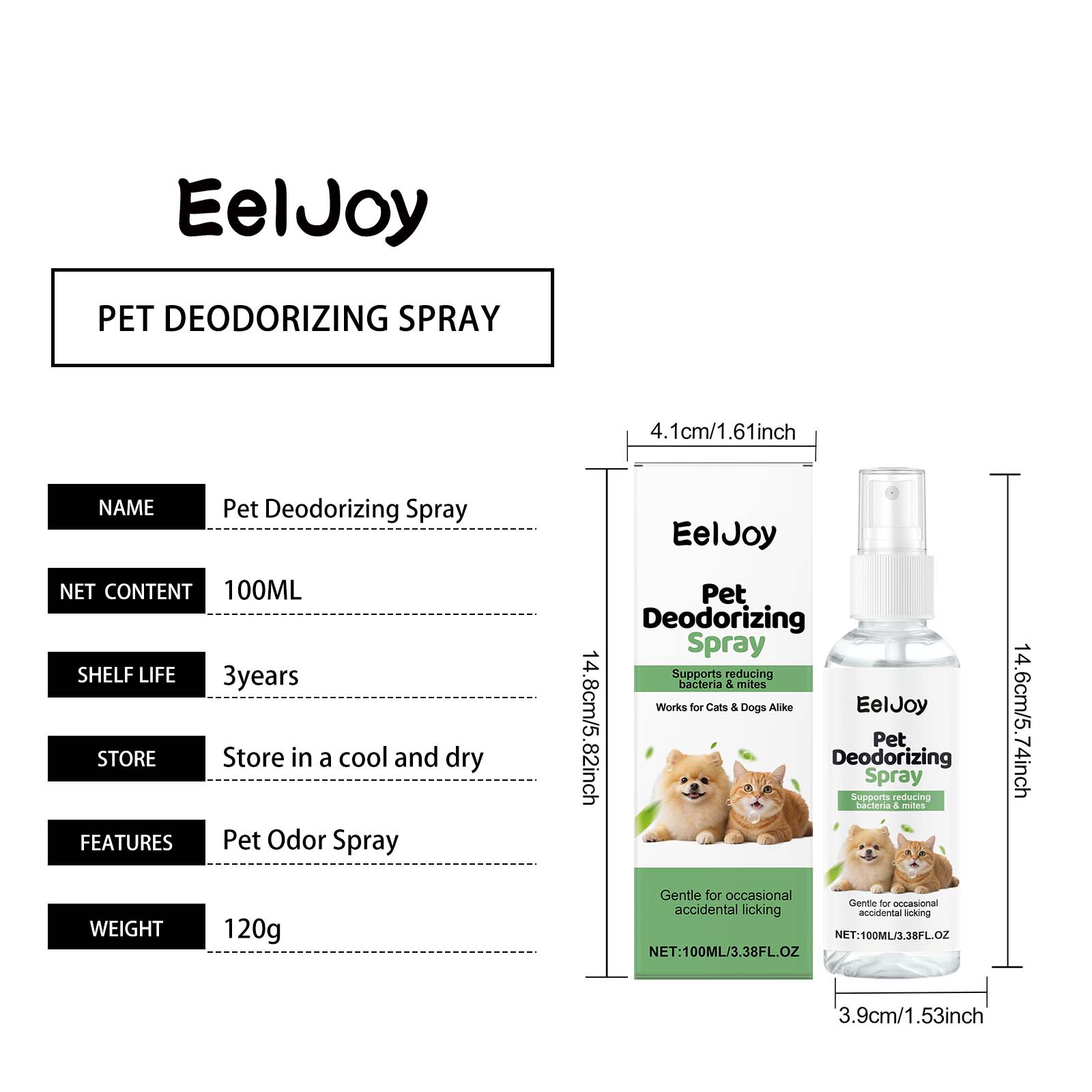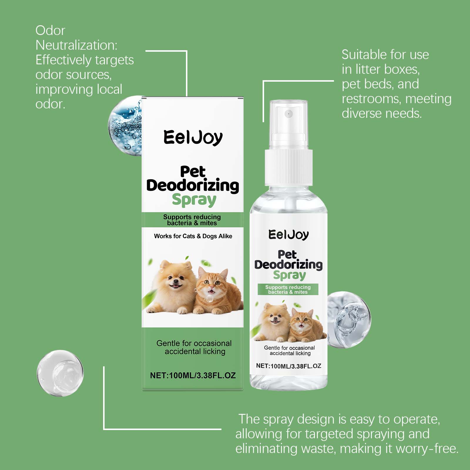EelJoy Pet Deodorizing Spray, With Pet-Friendly Deodorizing Ingredients, Is Suitable For Daily Cleaning In Pet Families