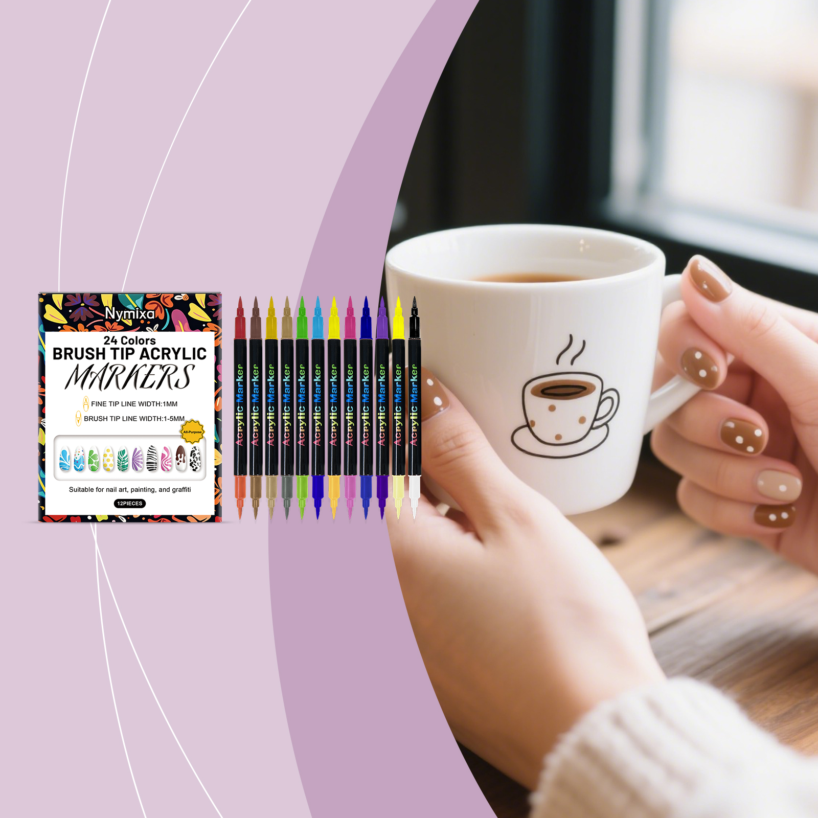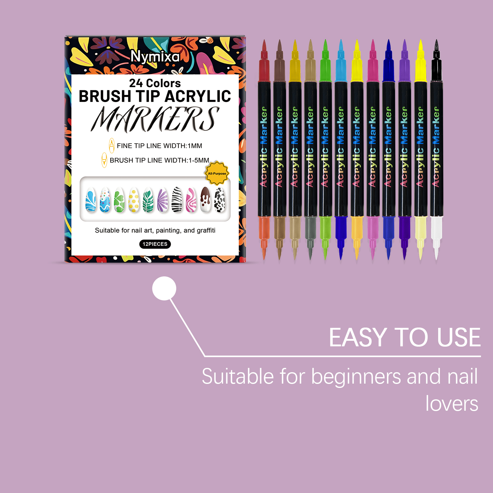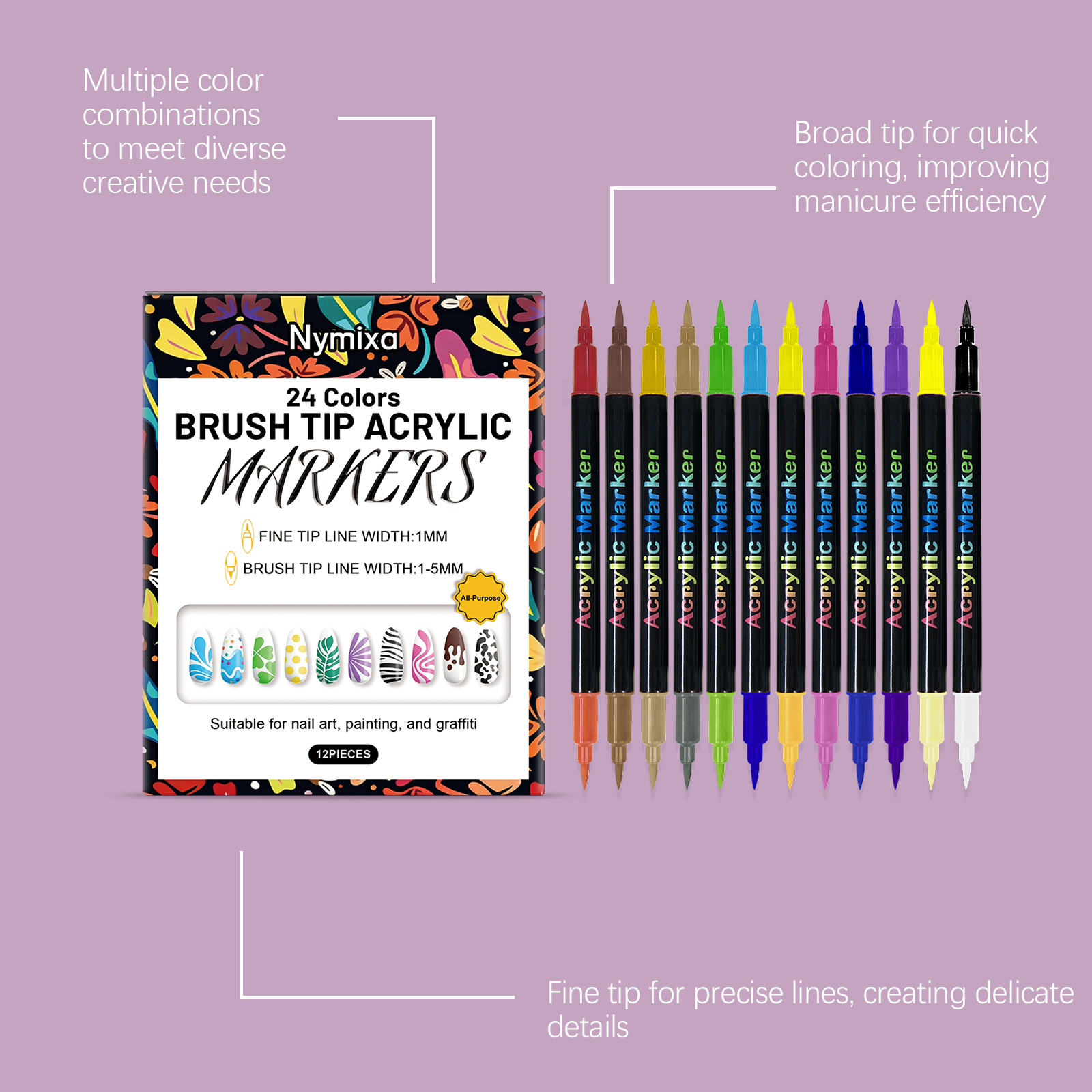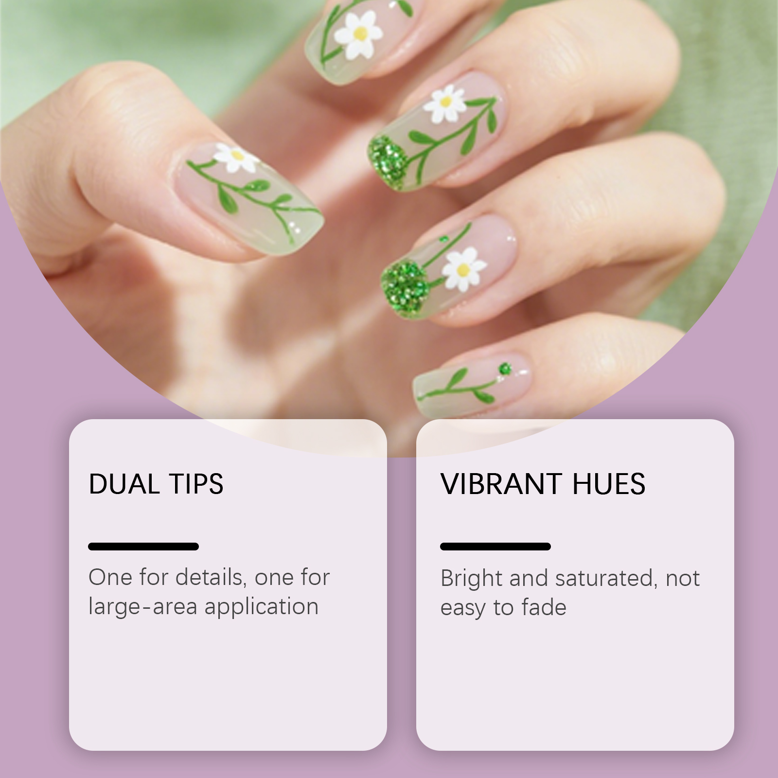 Nymixa Double-Headed Nail Art Doodle Pen Set, Quick-Drying, Bright Colors, Easy For Beginners To Apply And Operate Nail Art Tools