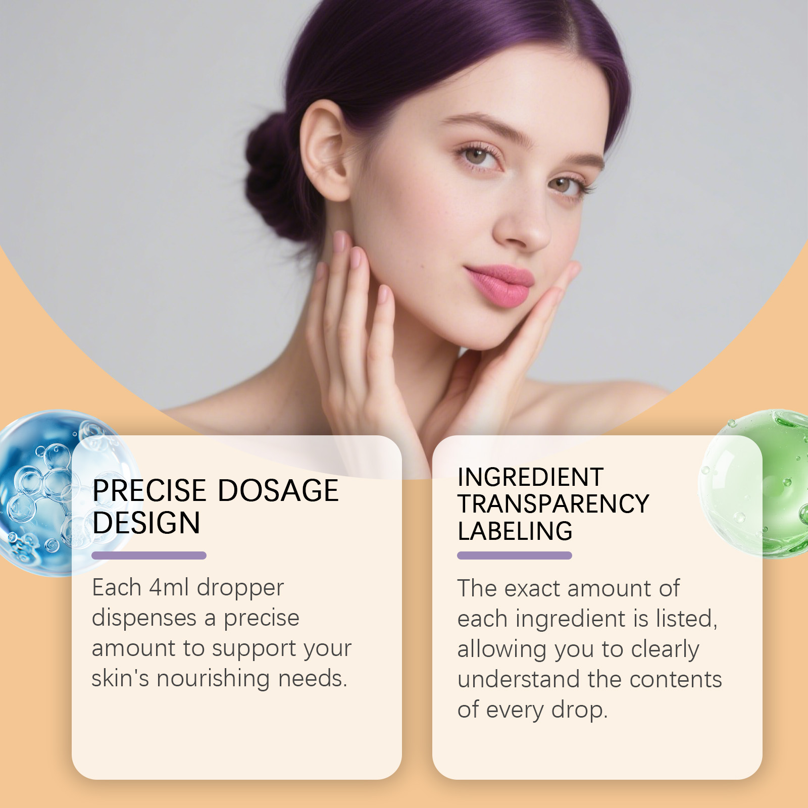 我们的呵护肌肤支持滴剂,由维生素C、维生素A精心调配而成。专为支持皮肤滋养并维持健康状态设计。使用方法极为便捷:每日随餐服用4毫升。并且它可以提供协同滋养并维持皮肤状态。