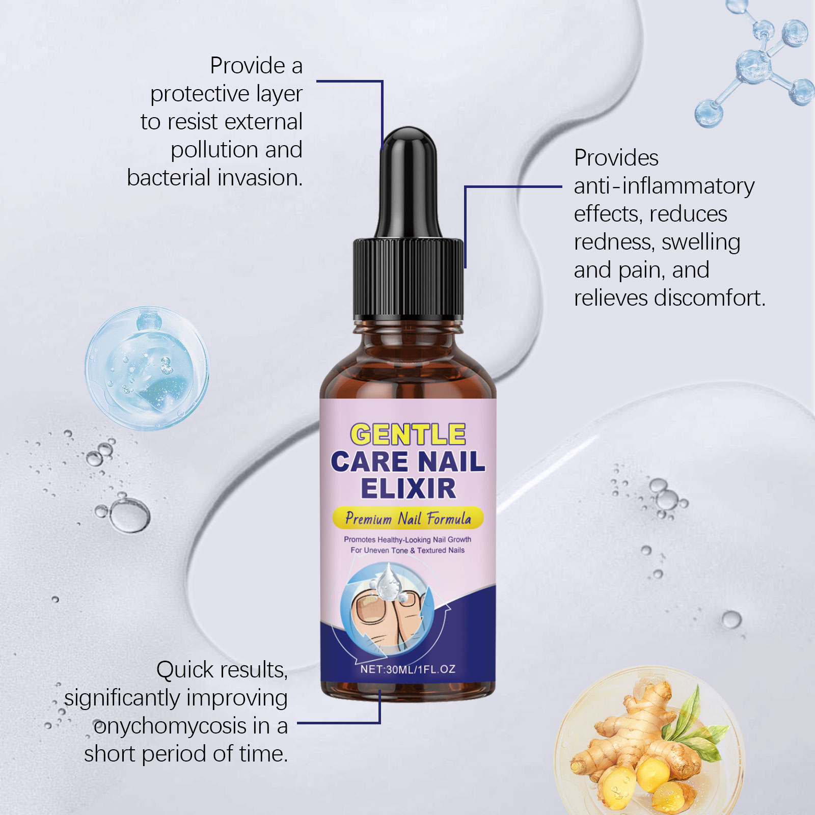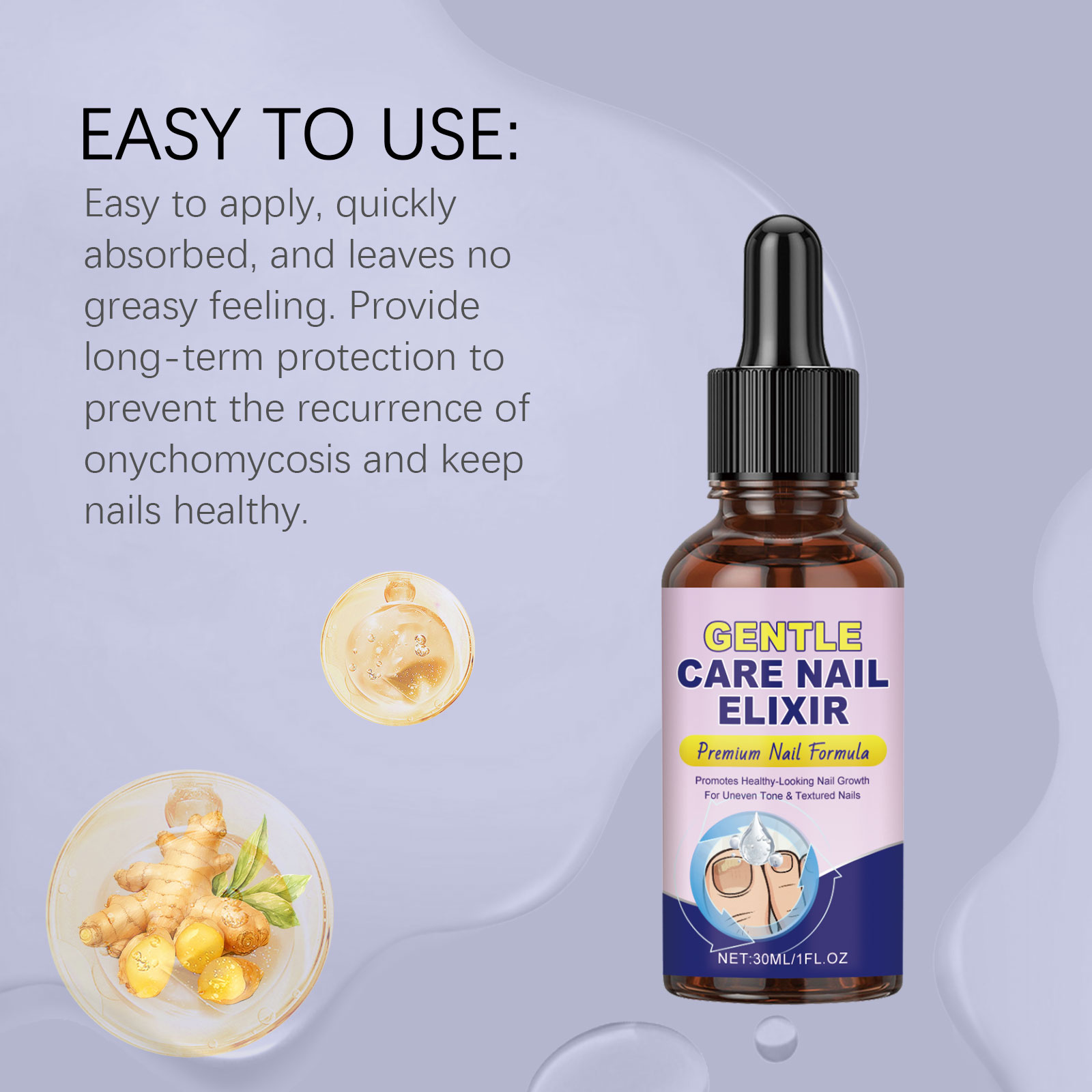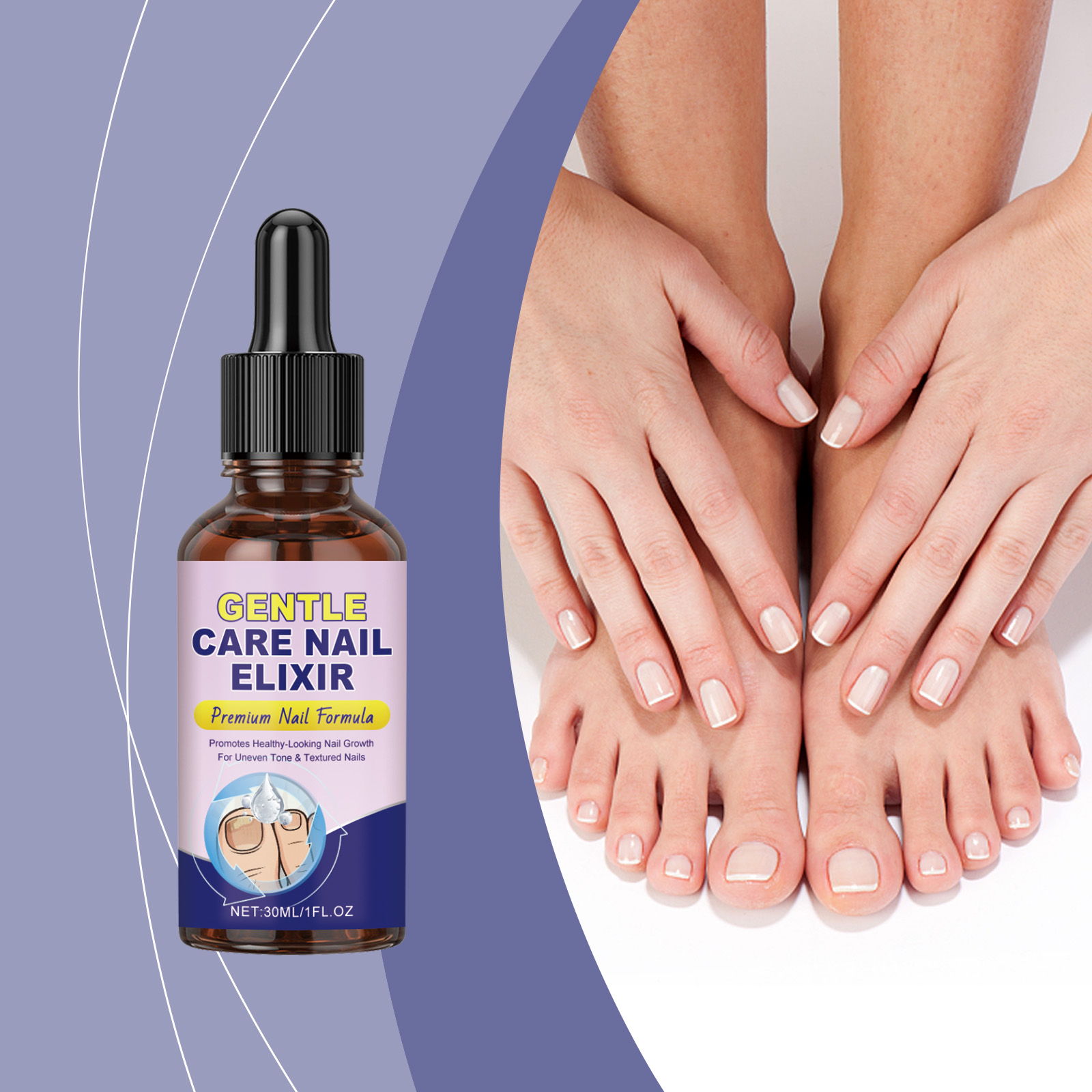 我们的指甲柔润护理液,由尿素、泛醇精心调配而成。专为有效杀菌、抑制真菌生长,并快速缓解甲癣,它使用温和成分不含有害化学物质,安全、温和且无刺激性设计。使用方法极为便捷:1.修剪患甲区域,以促进精华液吸收。2.用干棉签或布清洁甲面。3.将精华液涂抹于整个患甲表面。4.每日早晚各涂抹一次,至少持续4周。并且它可以改善脚趾甲的外观和健康状况,滋养、软化并强化脆弱或受损的脚趾甲,促进光滑健康的脚趾甲。