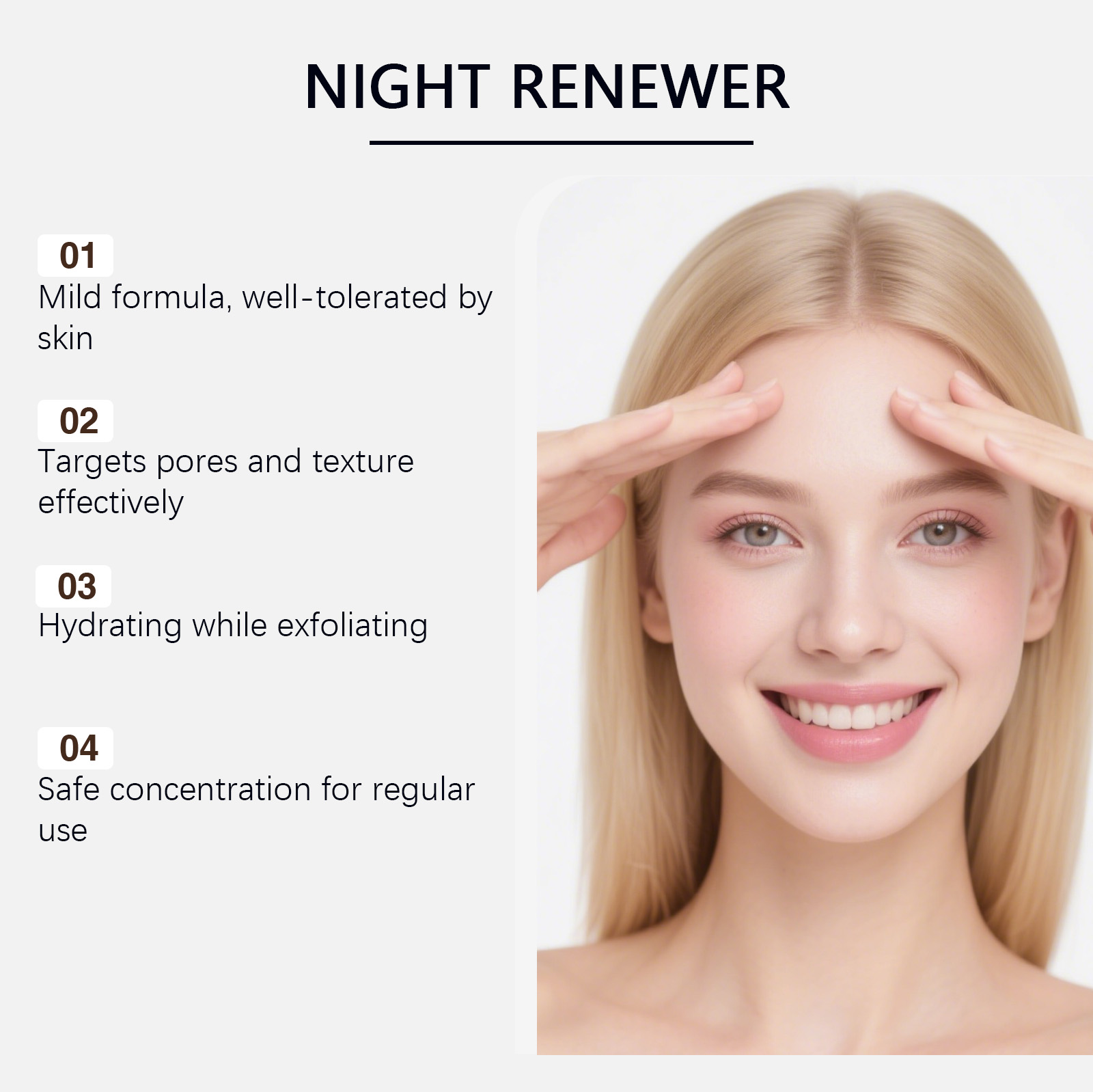 我们的睡眠护理霜,由矿油、甘油精心调配而成。专为有助于改善薄皮肤的外观,改善皮肤的自然弹性设计。使用方法极为便捷:1.清洁肌肤并保持干燥。2.取适量本品均匀涂抹在皮肤上,轻柔按摩直至吸收。并且它可以帮助皮肤恢复能量。