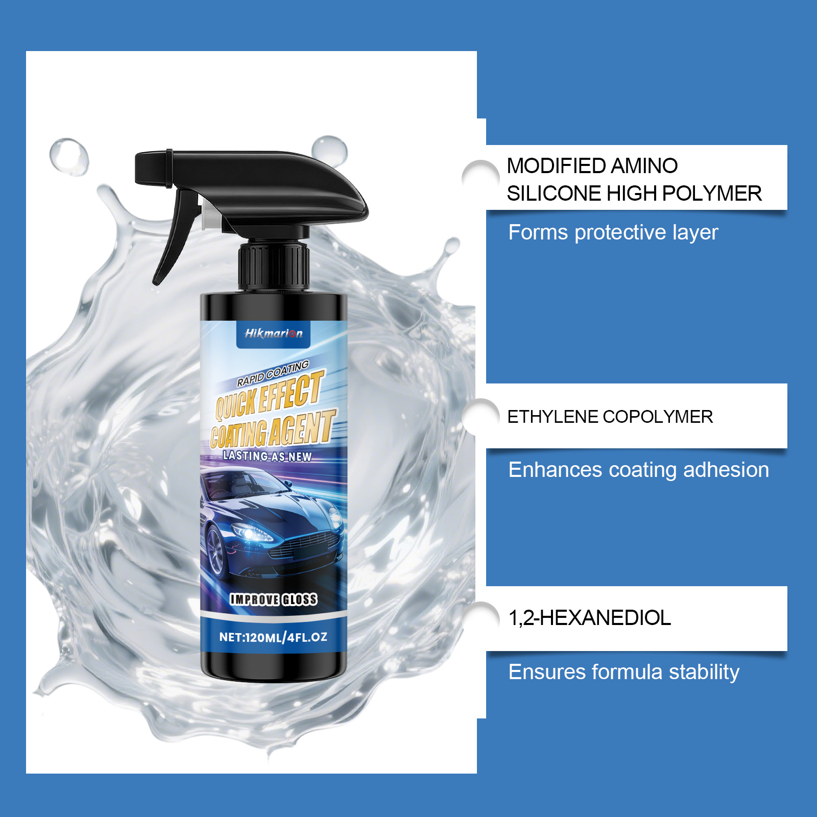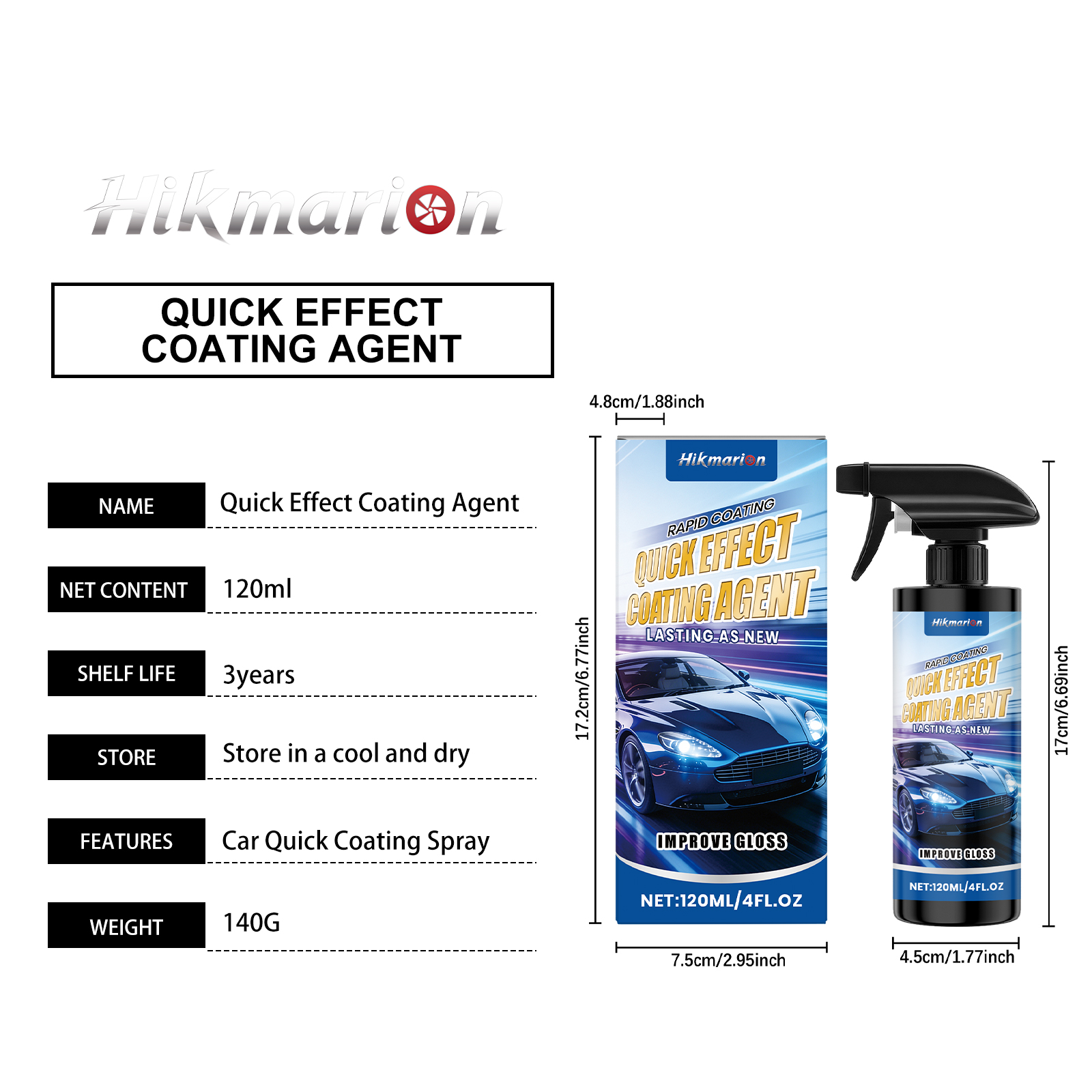 Hikmarion Automobile Coating Spray, A Gentle Spray For Cleaning The Car Paint Surface, Coating Maintenance, Brightening And Gloss Enhancement
