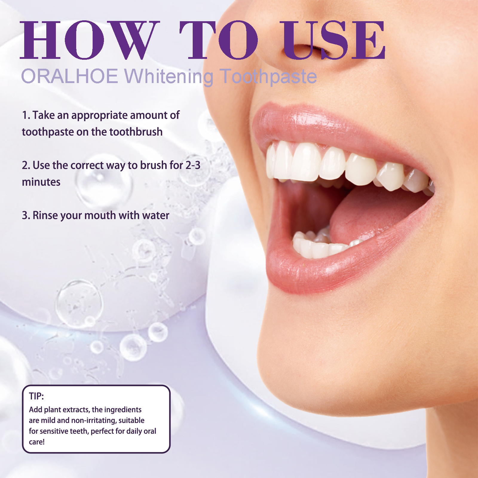 Oralhoe Whitening Toothpaste, Fresh Breath Care Gums Clean Teeth Yellow Stains Tartar White Toothpaste