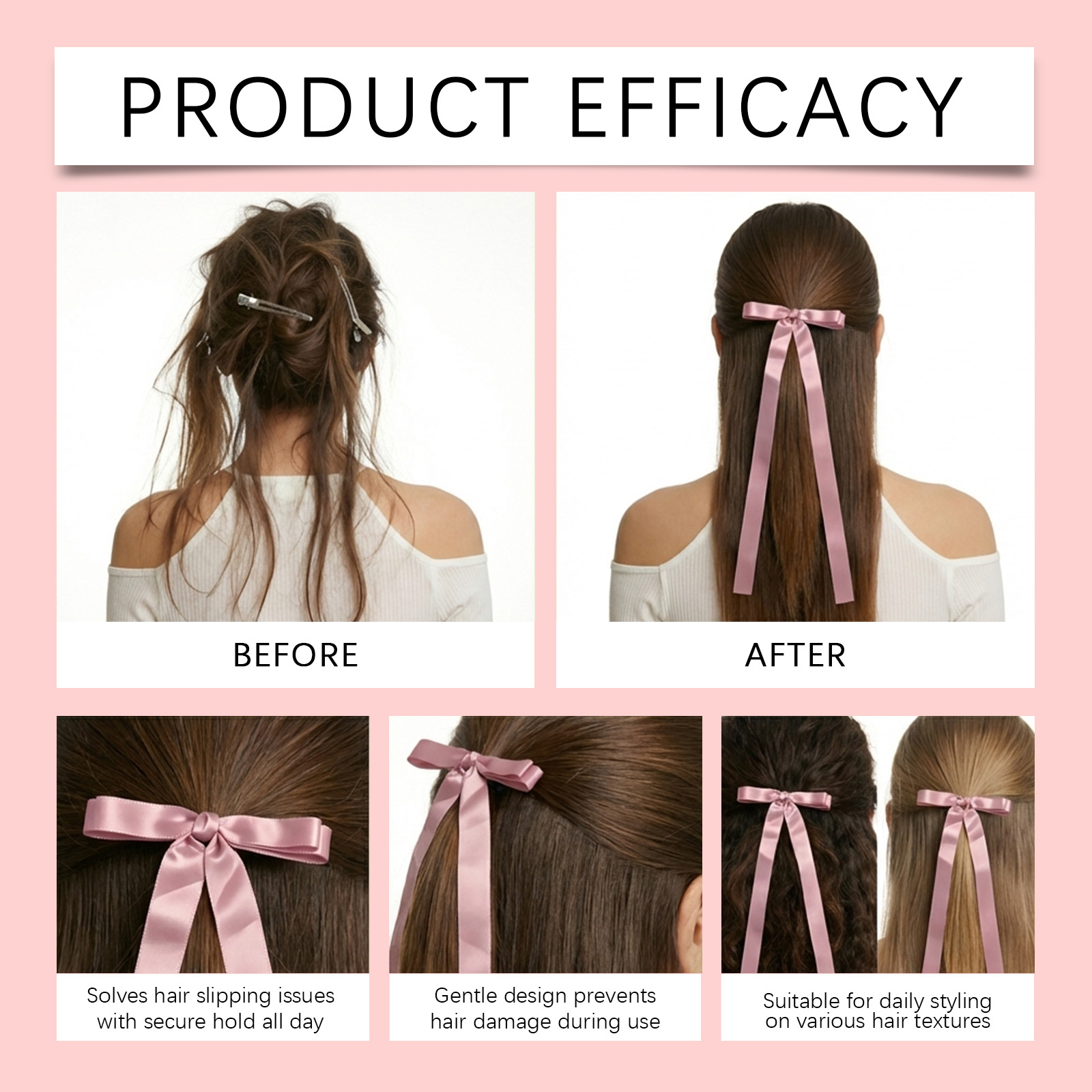 我们的蝴蝶结飘带发夹,由涤纶精心调配而成。专为一键打造完美发型设计,使用方法极为便捷:打开夹子并将其固定在头发上,以保持你想要的发型。并且可牢固固定头发,不滑落。
