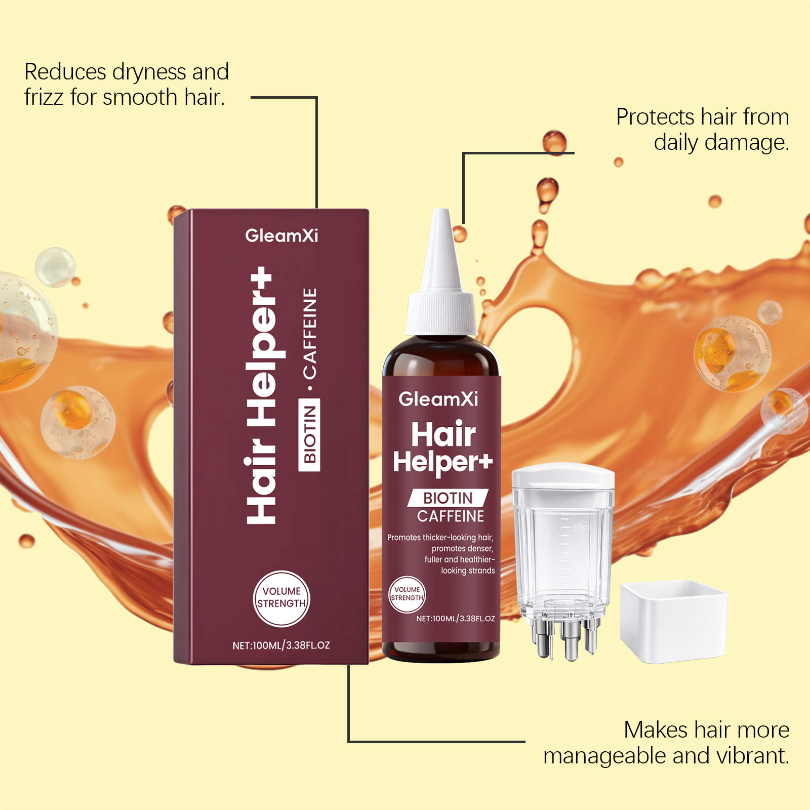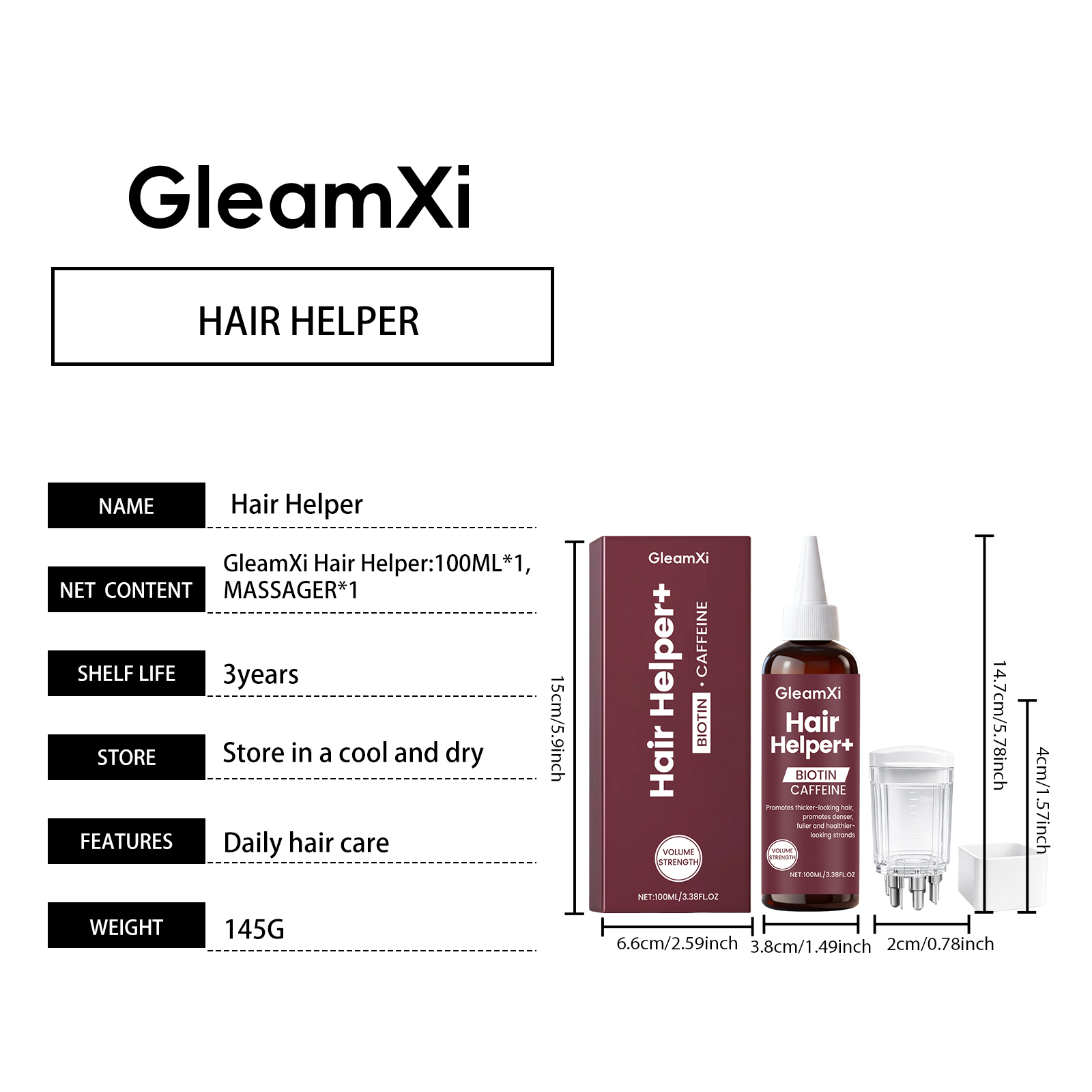 | 产品尺寸 | 护发精华液:3.8*3.8*14.7cm,按摩器:4*2*2cm |