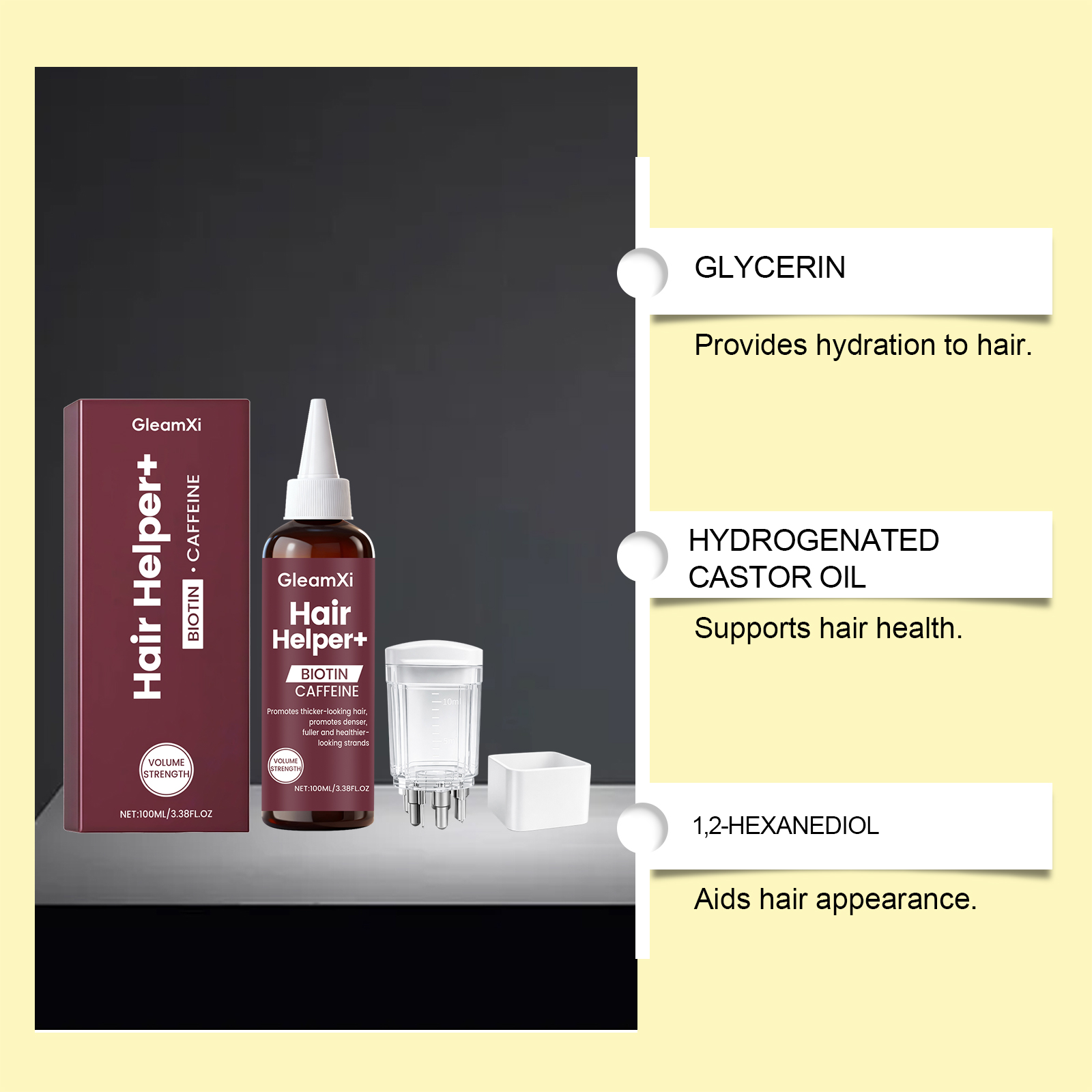 我们的头皮护理精华液,由甘油、氢化蓖麻油精心调配而成。专为头发增添光泽感设计。使用方法极为便捷:1.清洁并吹干头发。2.将适量精油倒入按摩器中,用按摩器轻轻滚动按摩头皮。并且它可以为头发提供持久保湿,增强头发的弹性和质感。