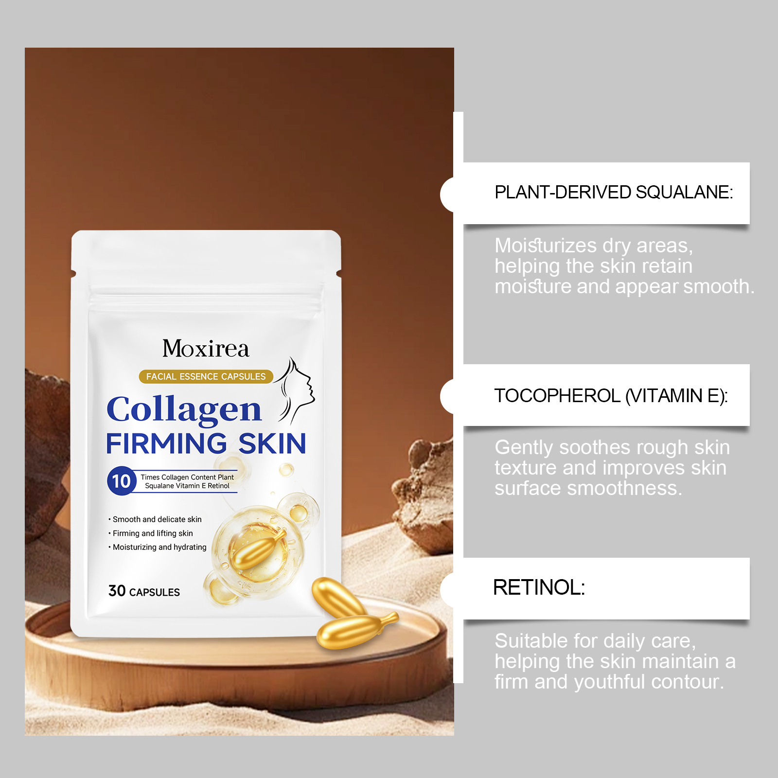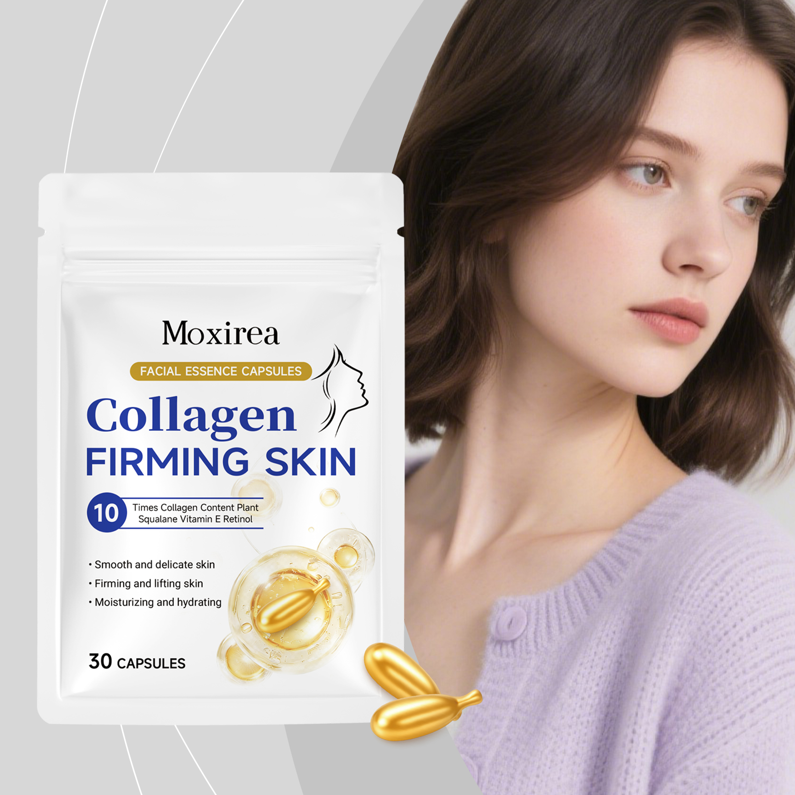 Moxirea Collagen Facial Essence Capsules Smooth And Delicate Facial Skin, Moisturize, Brighten, Hydrate And Lubricate