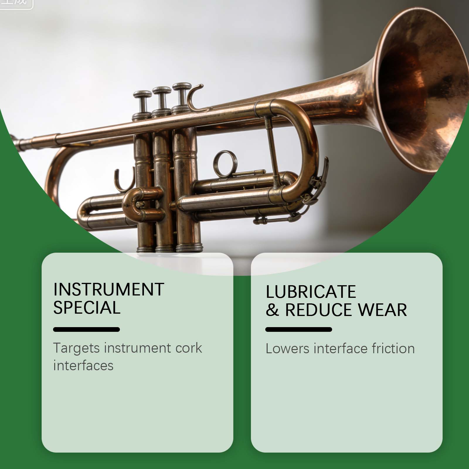我们的乐器接口软木膏,由蜂蜡, 油酸精心调配而成。专为降低接口摩擦设计。使用方法极为便捷:1.使用前,请轻轻擦拭仪器的软木接头,以去除表面灰尘,2.在软木表面均匀涂抹少量软木润滑脂。3.在软木塞润滑脂略微干燥后,牢固连接仪器的所有部件。并且适用于软木和金属部件。