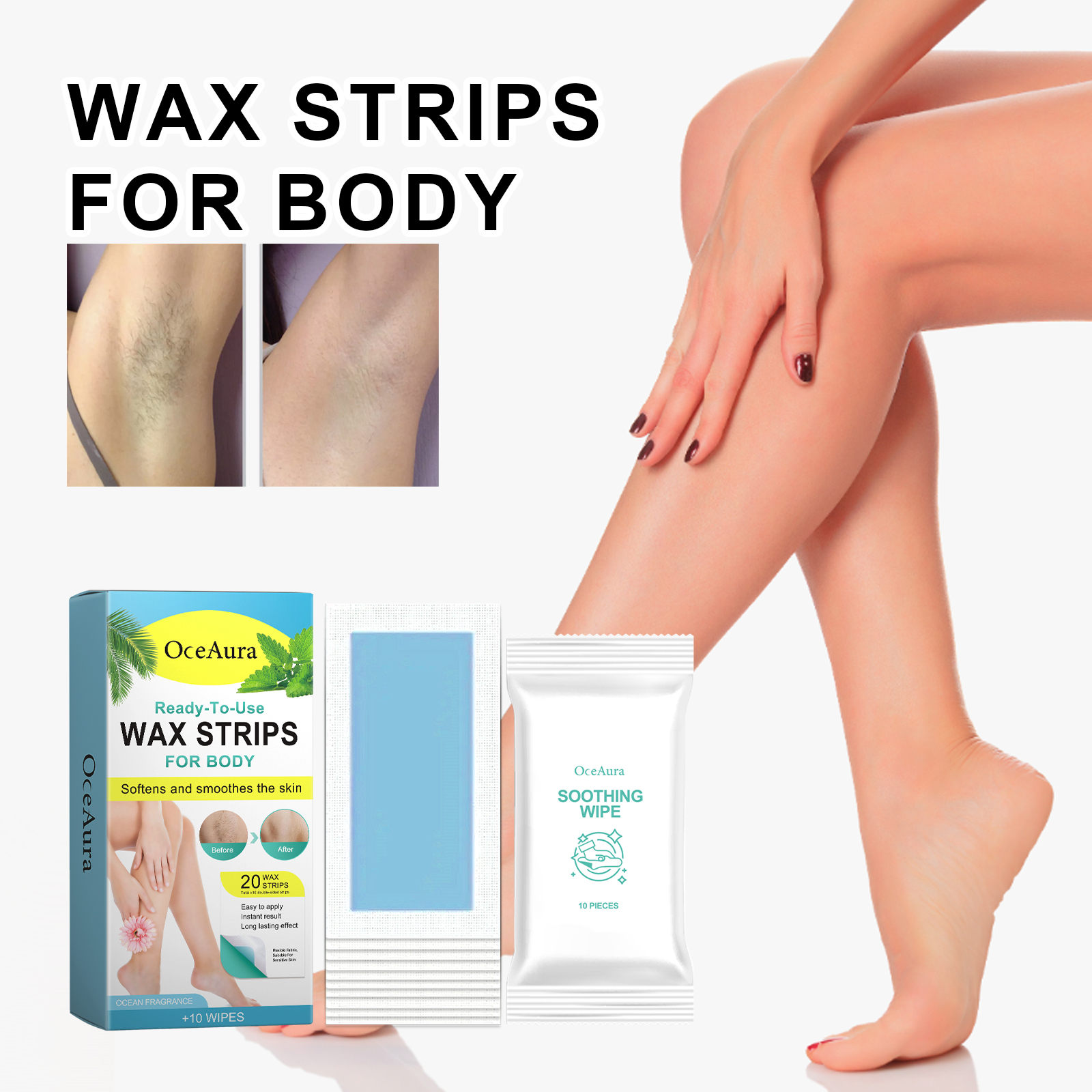 OceAura Wax Strips For Body, Arm Underarm Leg Mild Non-Irritating Fast Mild Smooth Hair