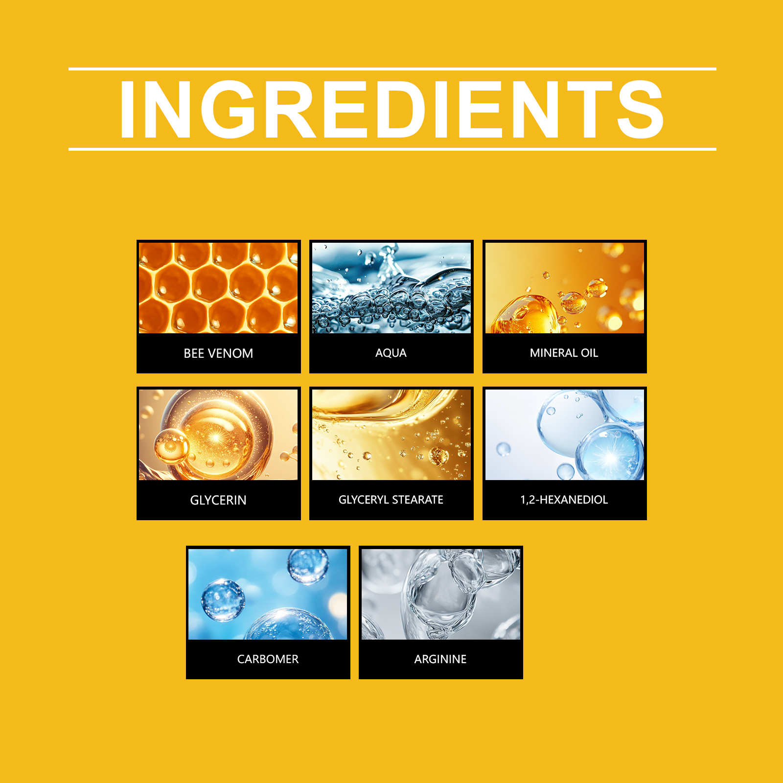 我们的蜂毒关节护理霜,由甘油、甘油硬脂酸酯精心调配而成。专为减少日常关节不适设计。使用方法极为便捷:1.清洁并擦干您将涂抹乳霜的部位。2.将适量产品涂抹于关节处。3.按摩至乳霜被皮肤吸收。并且有助于缓解关节僵硬。