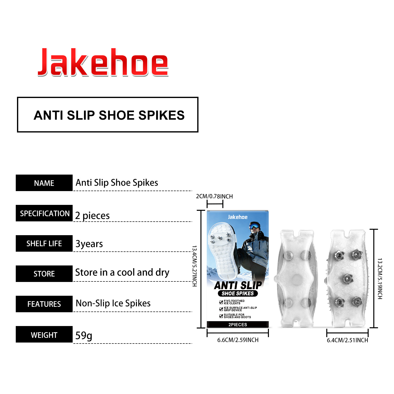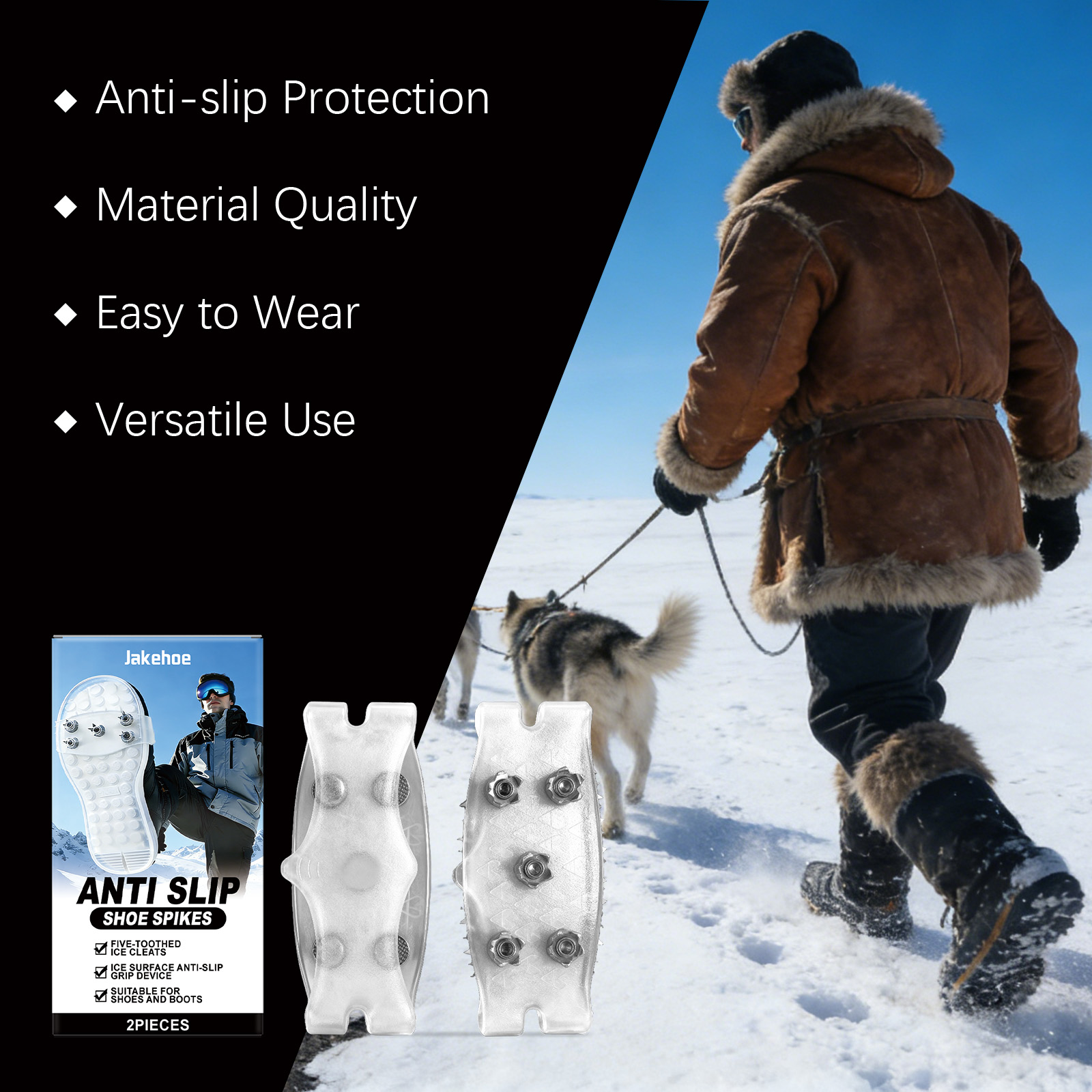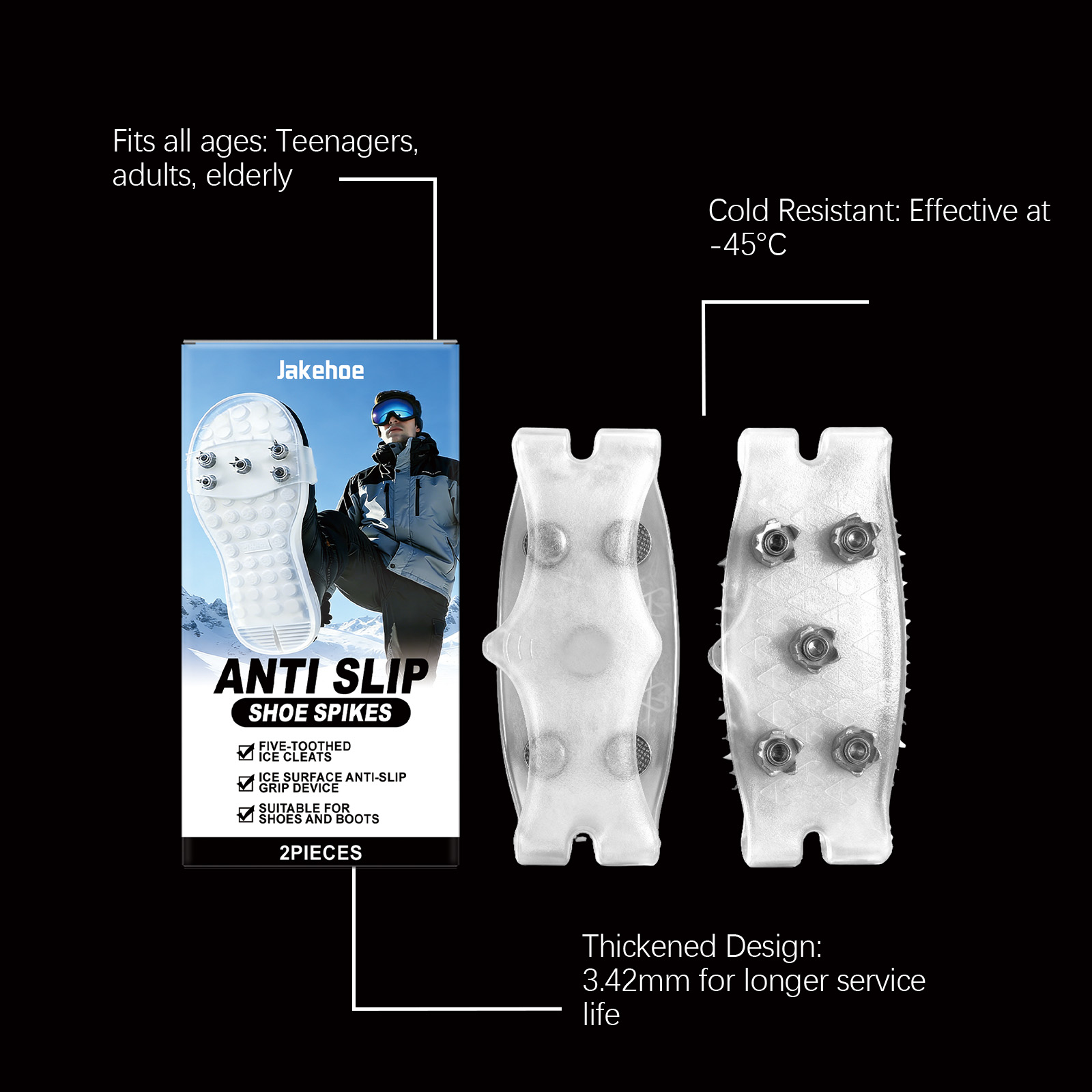 Jakehoe Portable Crampons With Five Teeth For Winter Mountain Climbing And Snow Protection, Providing A Firm Grip On The Ground