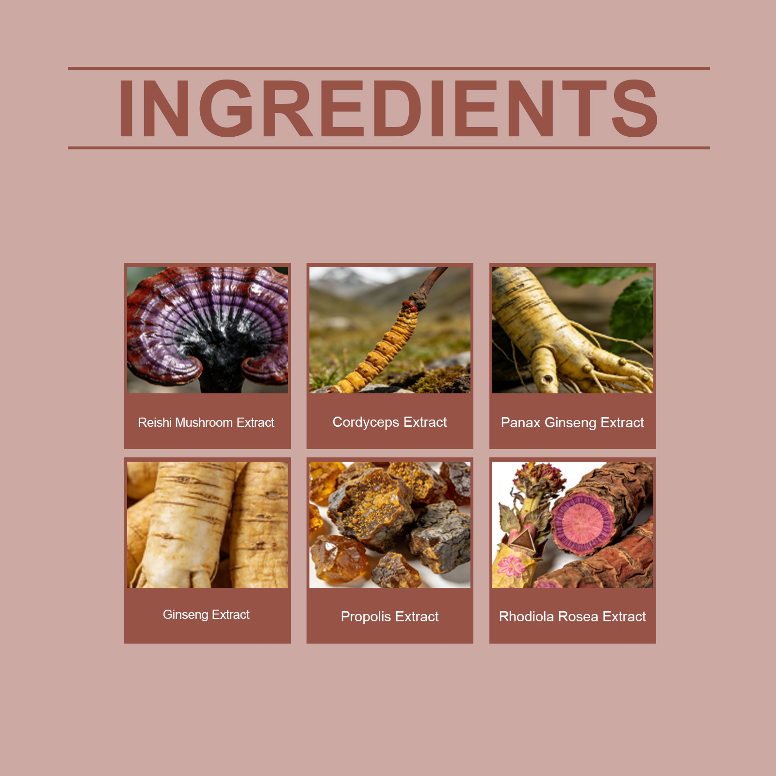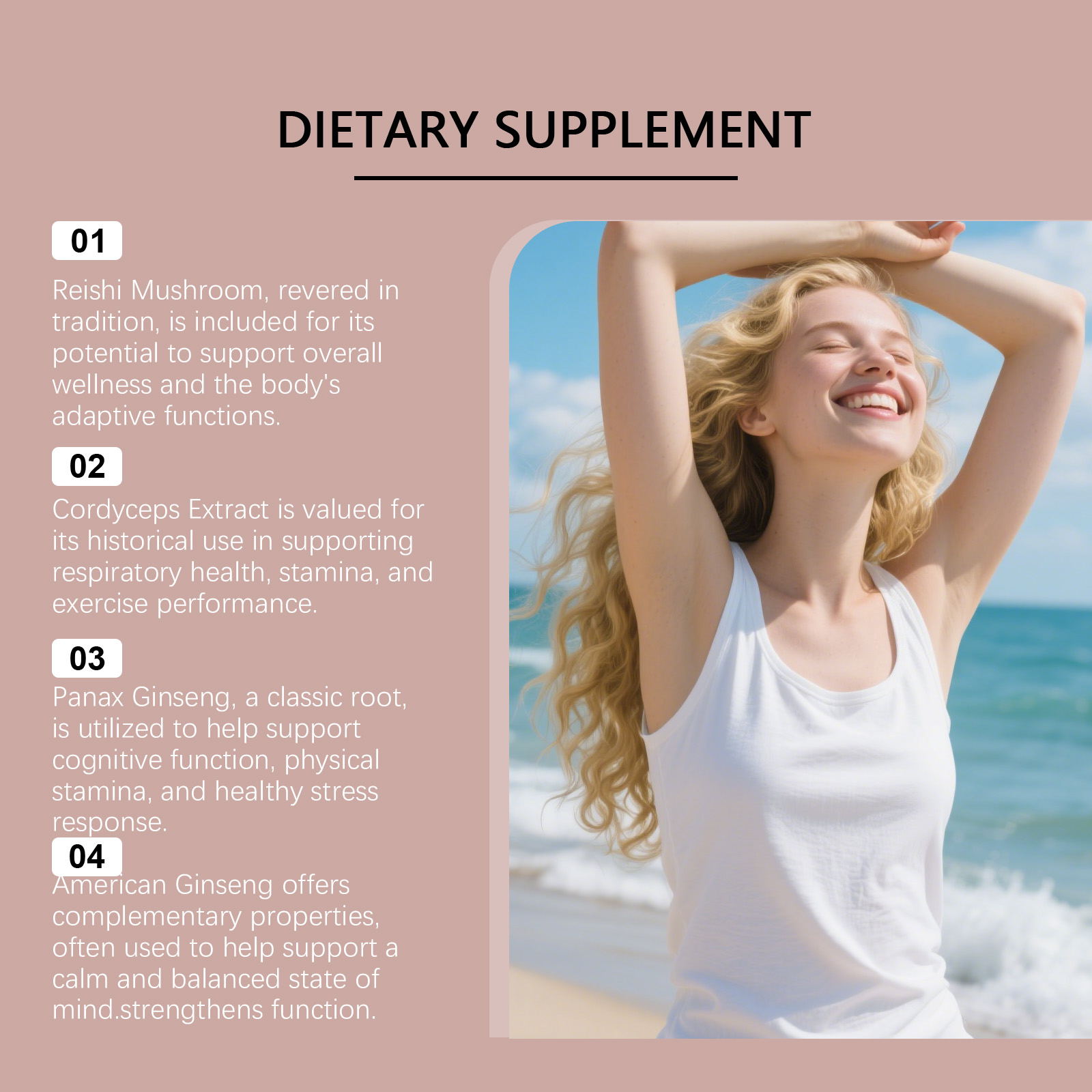 我们的灵芝粉提取物胶囊,由灵芝提取物、冬虫夏草提取物精心调配而成。专为有助于身体在面对日常环境及生活方式挑战时保持平衡与活力设计。使用方法极为便捷:每天服用2粒胶囊。并且它可以旨在支持健康的能量代谢,帮助对抗疲劳感并促进耐力。