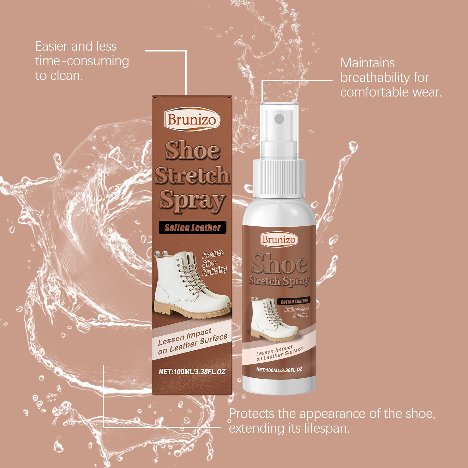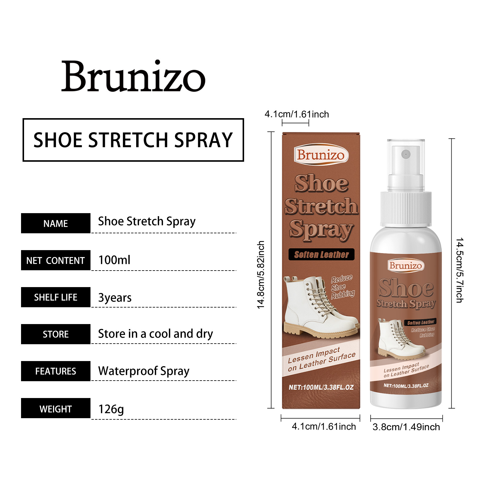Brunizo Shoe Support Spray For Various Shoe Types Is Suitable For Daily Use To Clean Stains, Remove Yellowing And Dirt, And Keep The Shoes Fresh And Clean