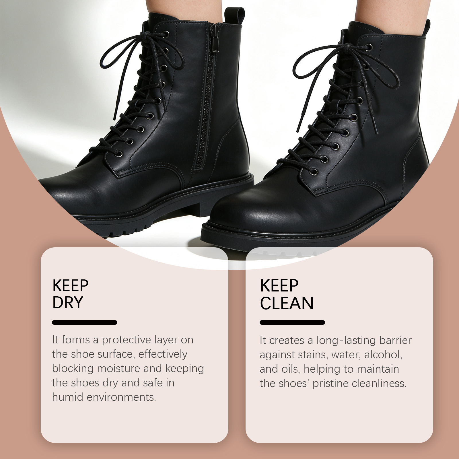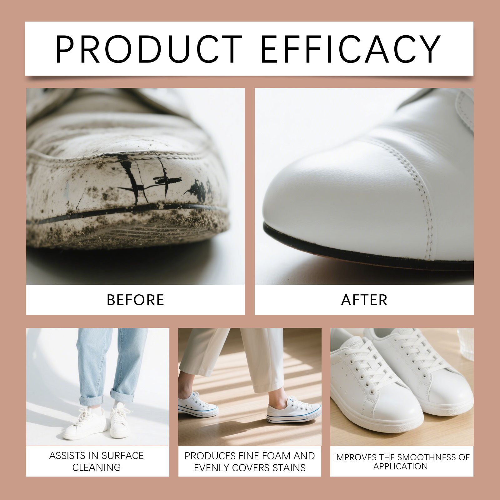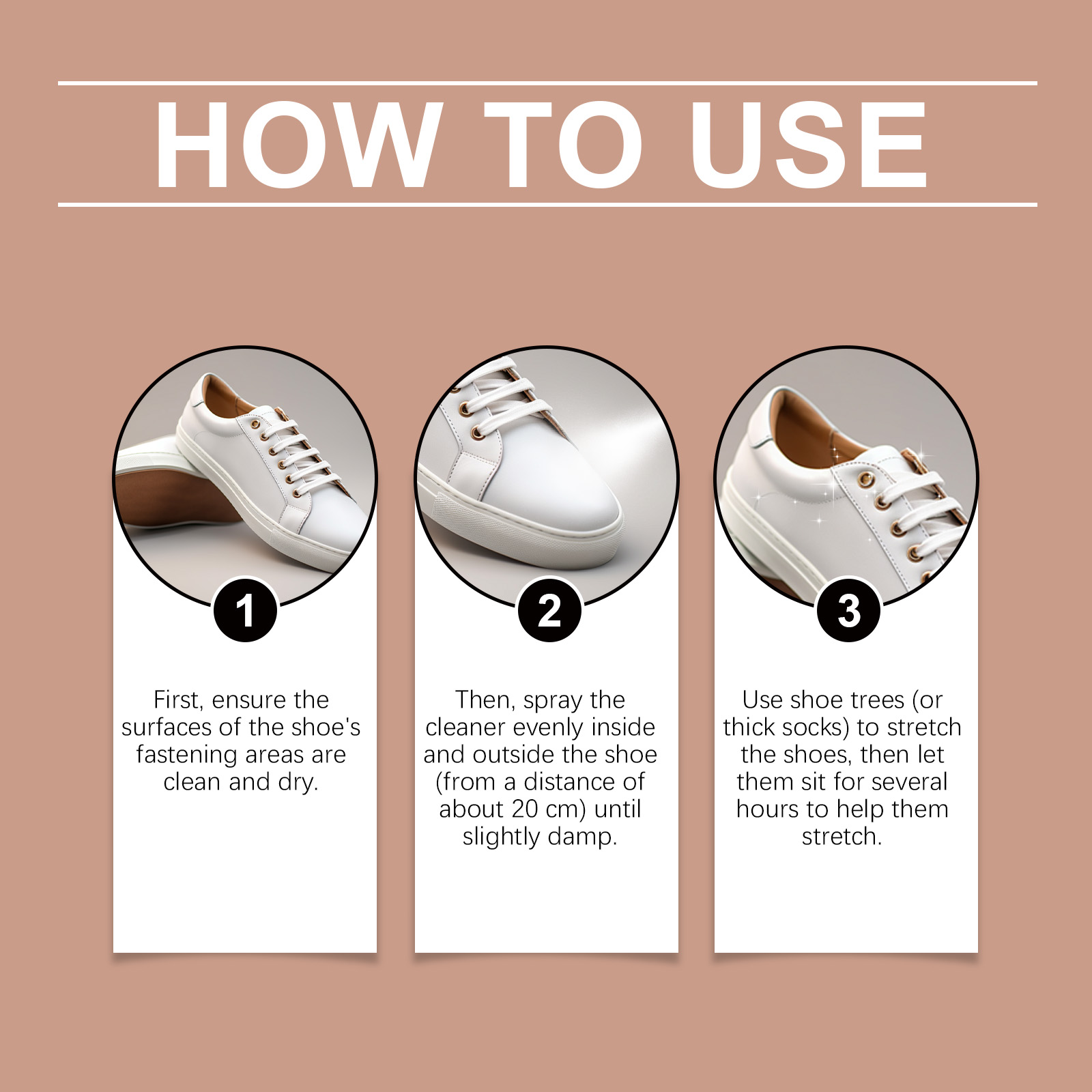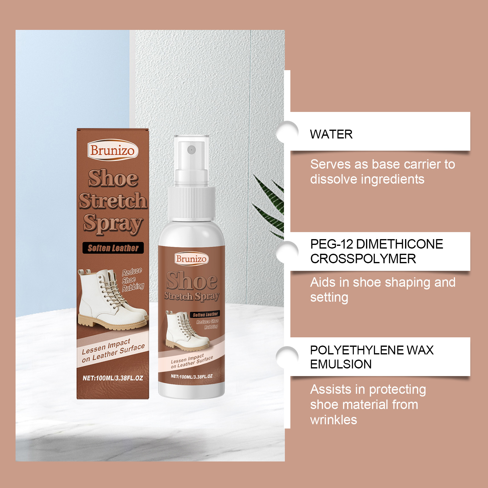 我们的鞋撑喷雾,由聚乙烯蜡乳液, 1,2-己二醇精心调配而成。专为有效阻挡湿气,使鞋子在潮湿环境中保持干燥和安全设计。使用方法极为便捷:首先,要确保鞋子扣合部位的表面干净且干燥。然后,将清洁剂均匀地喷洒在鞋子的内外表面(距离约为 20 厘米处),直至表面略微湿润。使用鞋架(或者厚袜子)来撑开鞋子,然后让鞋子静置几个小时,以帮助其恢复弹性。并且它能形成持久的防污、防水防酒精和防油屏障,有助于保持鞋子的洁净如新。