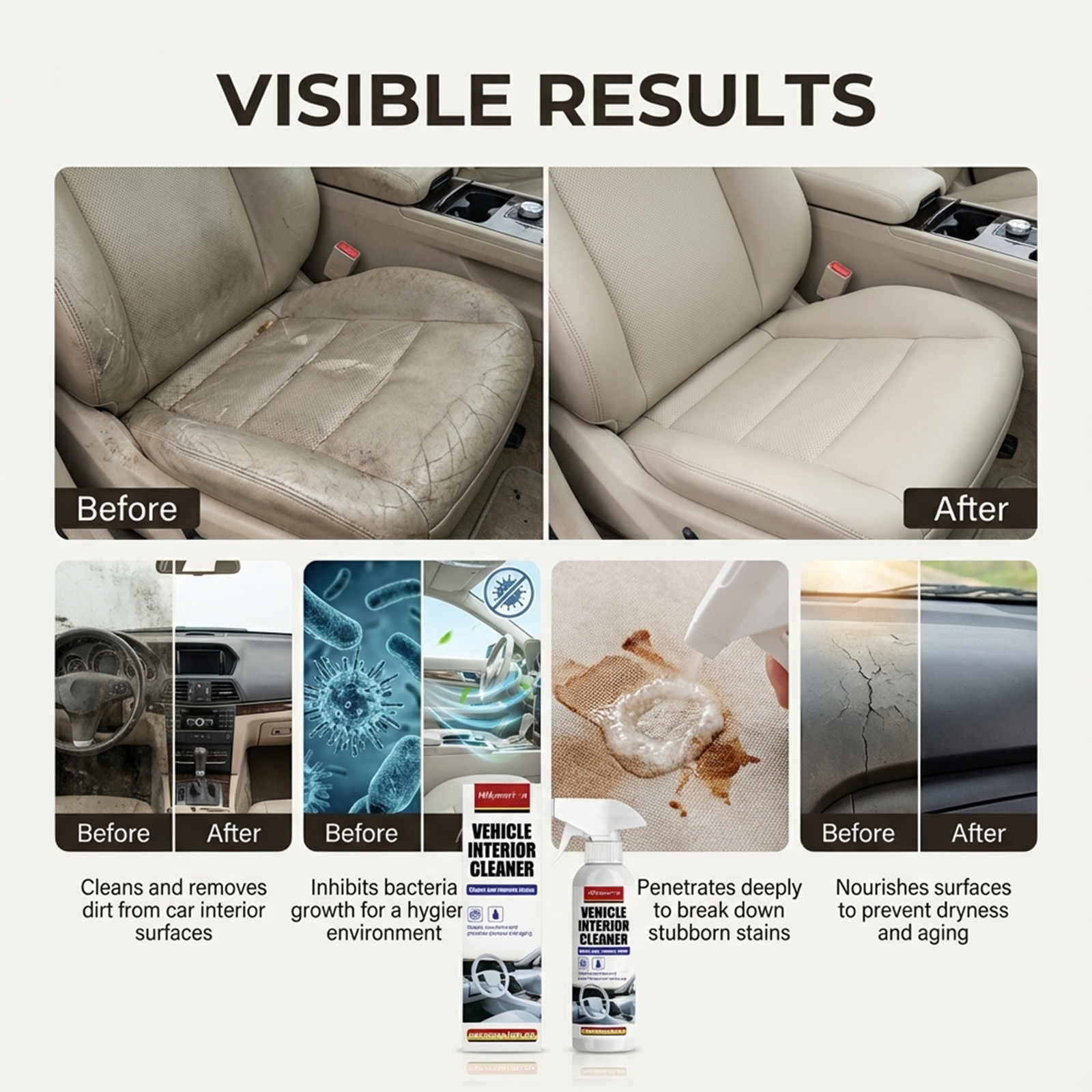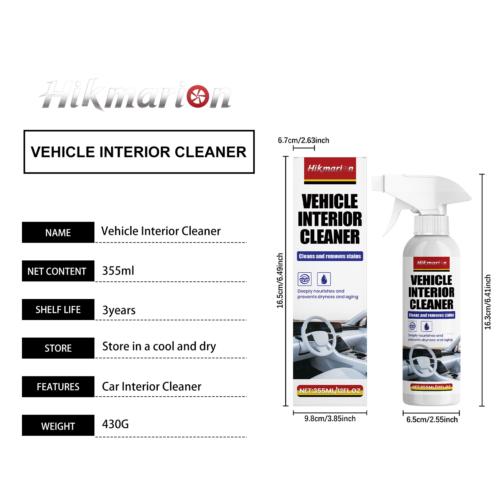 Hikmarion Car Interior Cleaner, Interior Seat Refurbishment And Maintenance, Daily Brightening, Cleaning And Care Agent